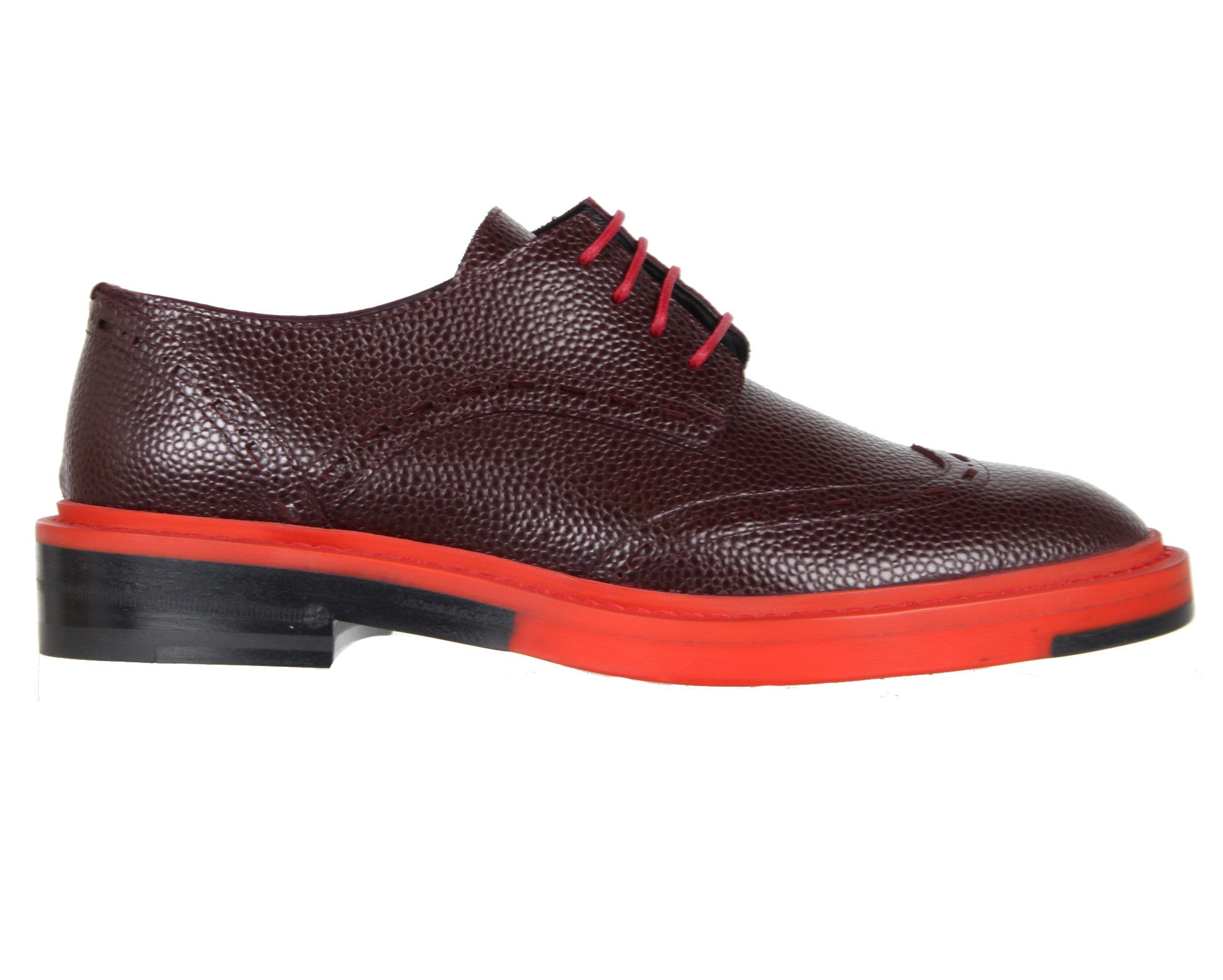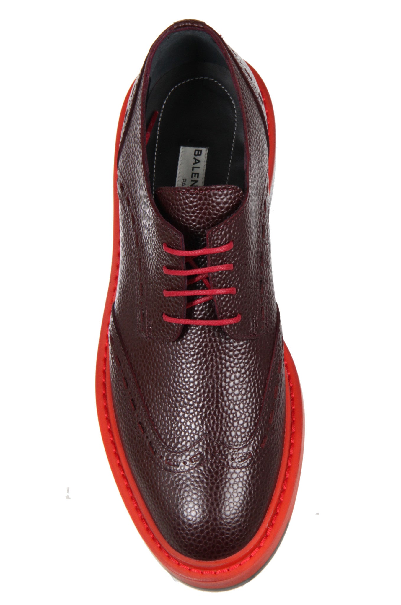 Balenciaga's take on the classic Oxford Brogue with sturdy leather upper detailed with perforations and updated with a contrasting red laces and partial red rubber sole.