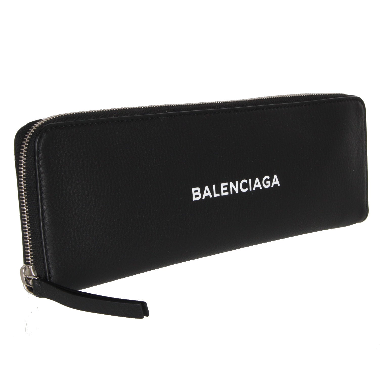 Balenciaga Logo clutch with built in card hard holders and a zip closure.