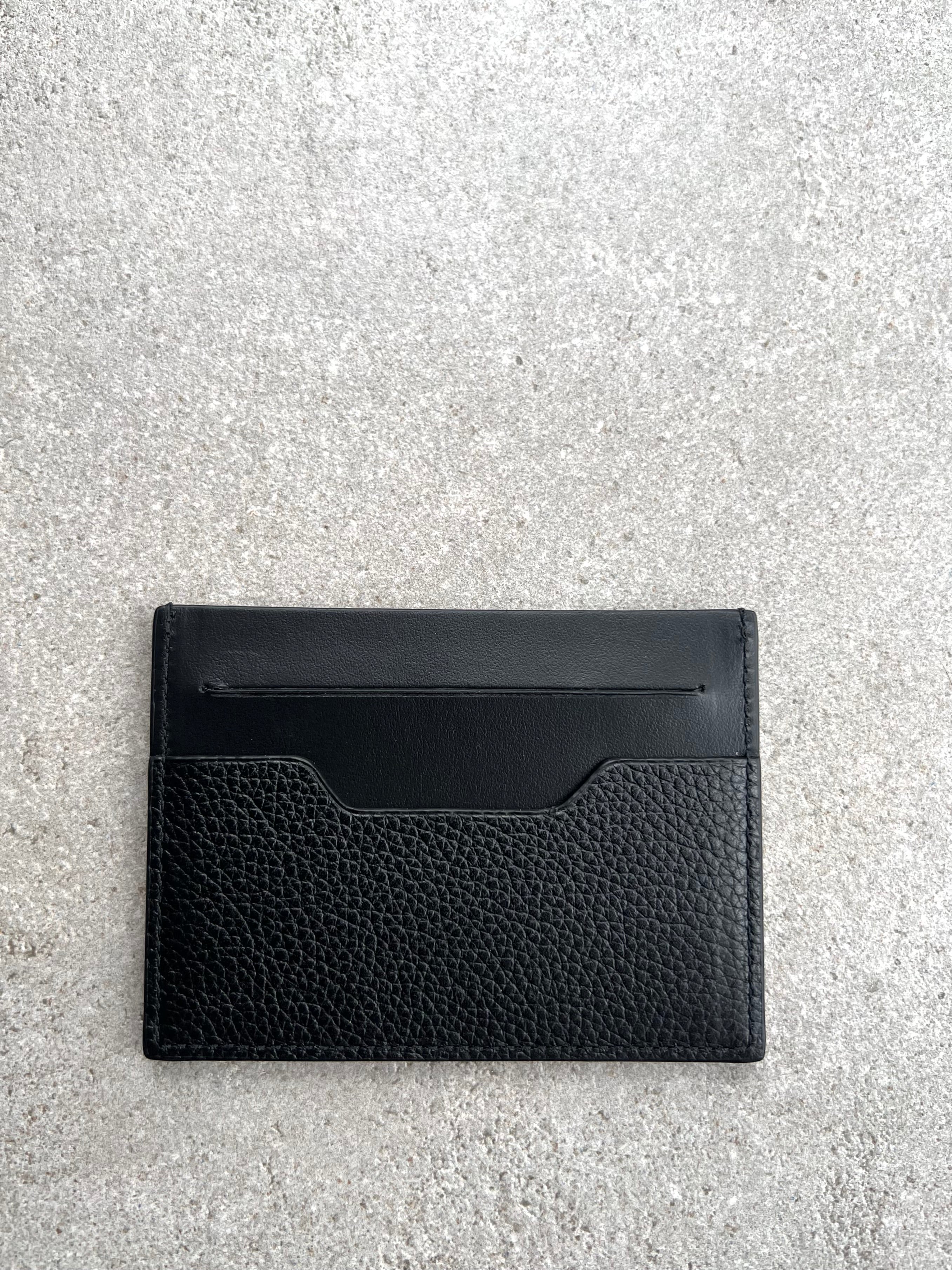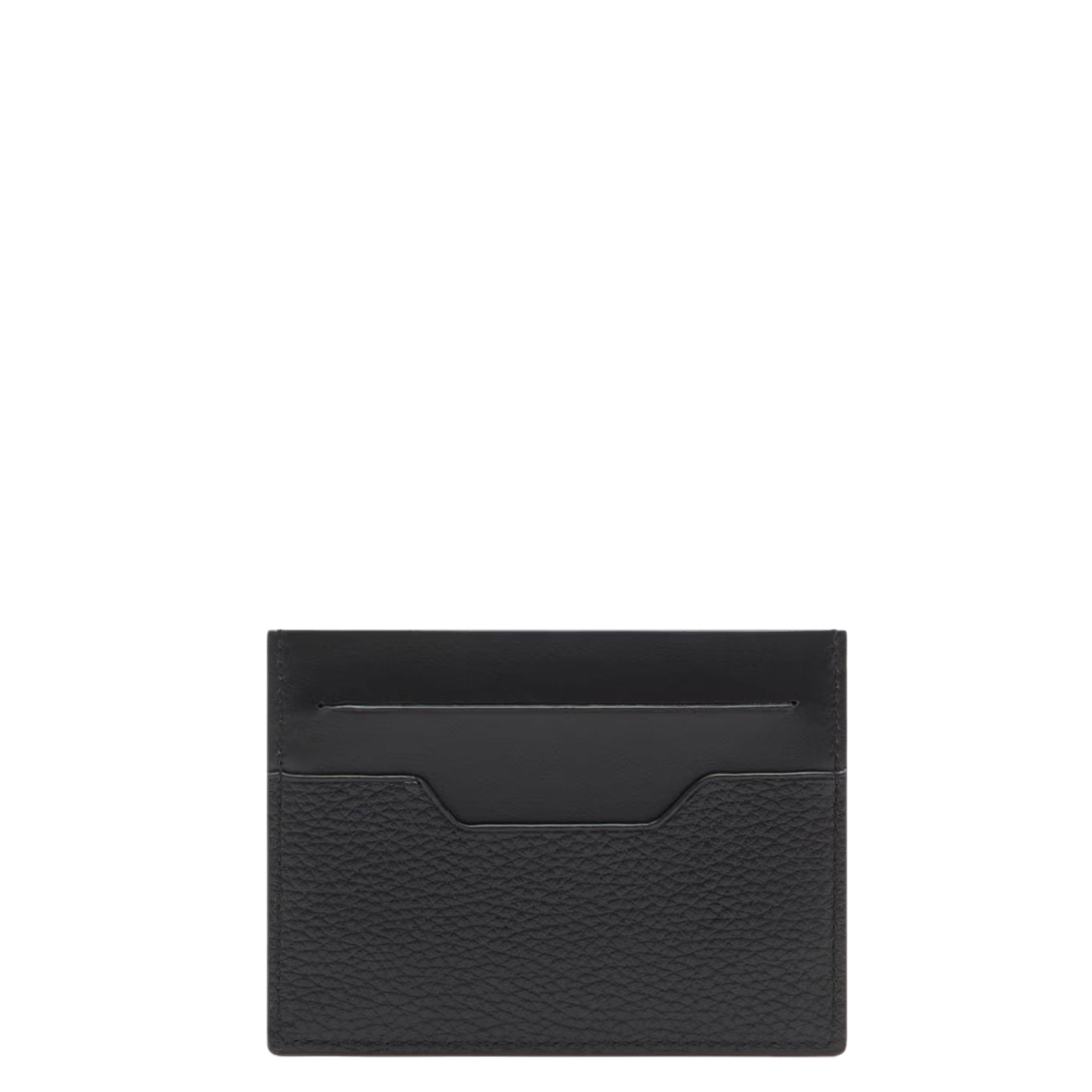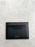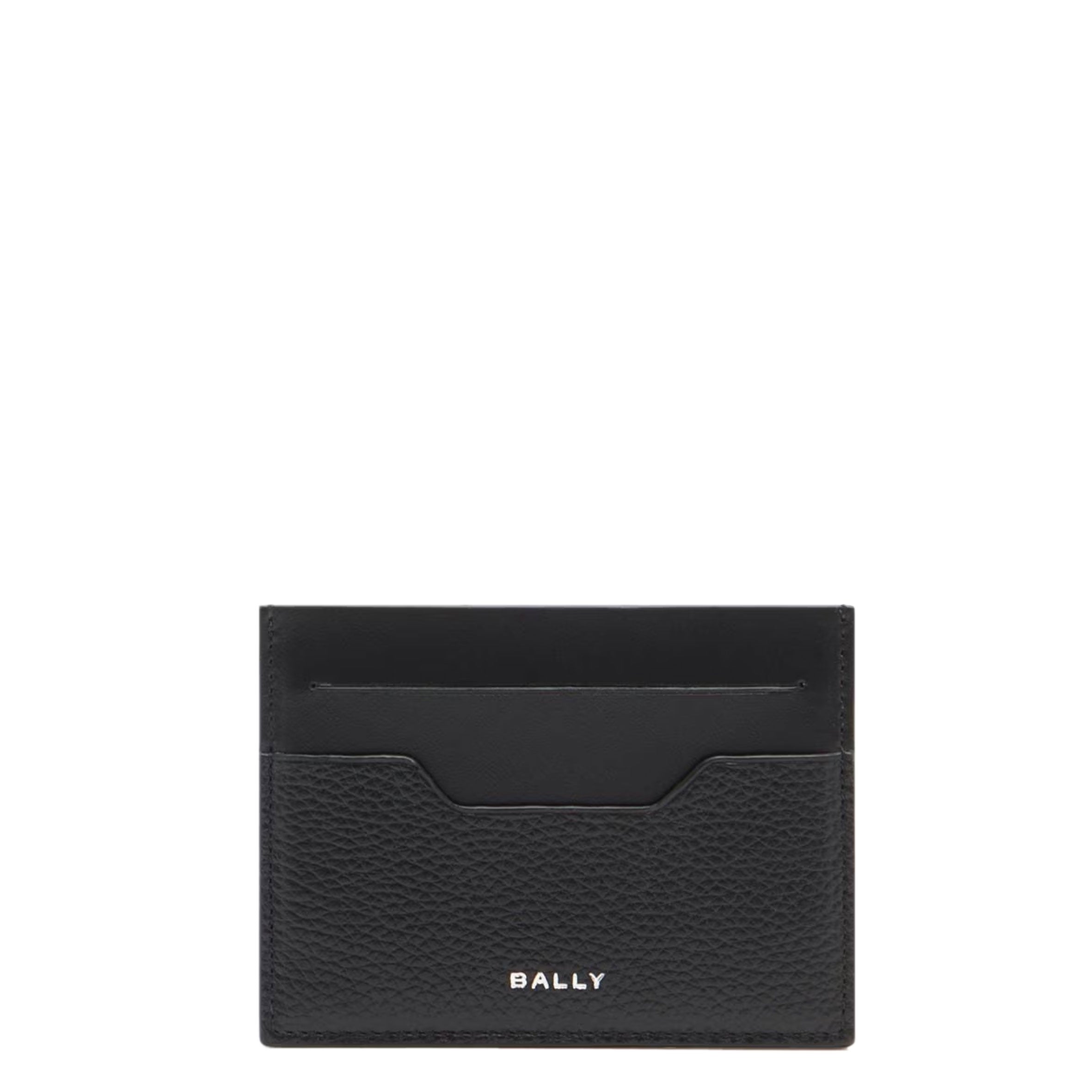 Elegant and versatile, the Capitol card holder in black calfskin is enriched by a grained finish and a Bally logo at the front.
