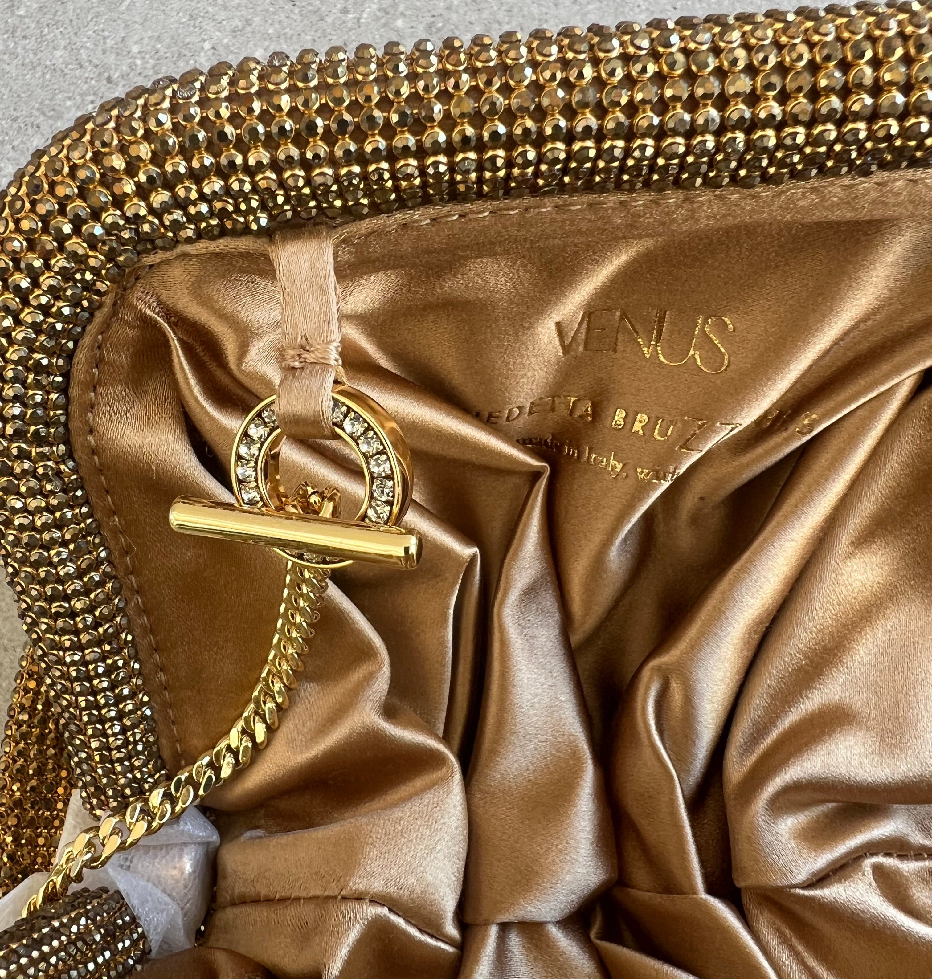 With soft and wavy shape, Venus is made with a network of sparkling crystals sewn by hand in Italy.