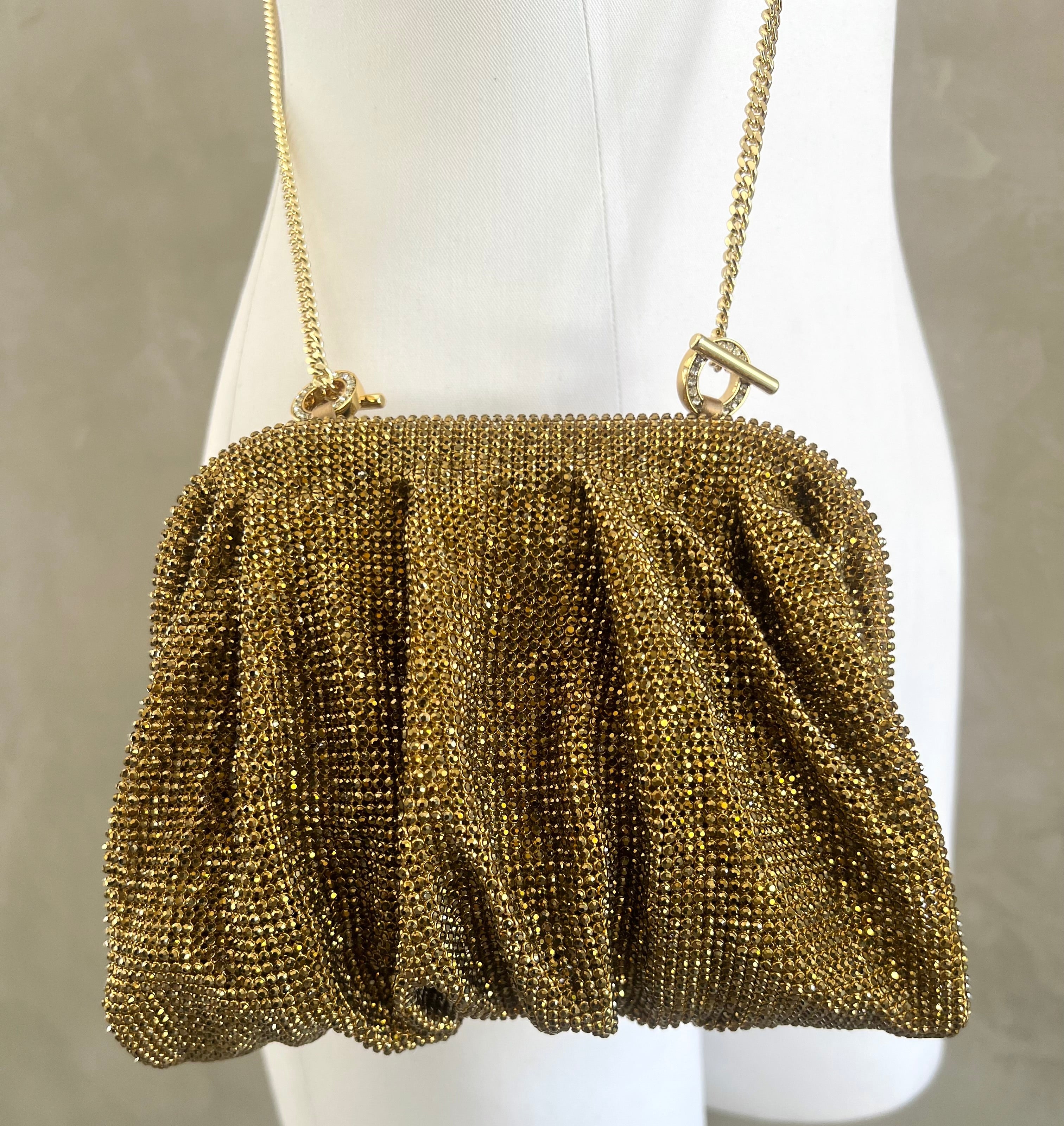 Benedetta Bruzziches' 'Venus' clutch is inspired by the Roman goddess of love and beauty. Made from satin that's hand-sewn with scores of shimmering crystals, it has a slouchy shape and structured frame. There's just enough space for your lipstick, phone and cardholder inside.