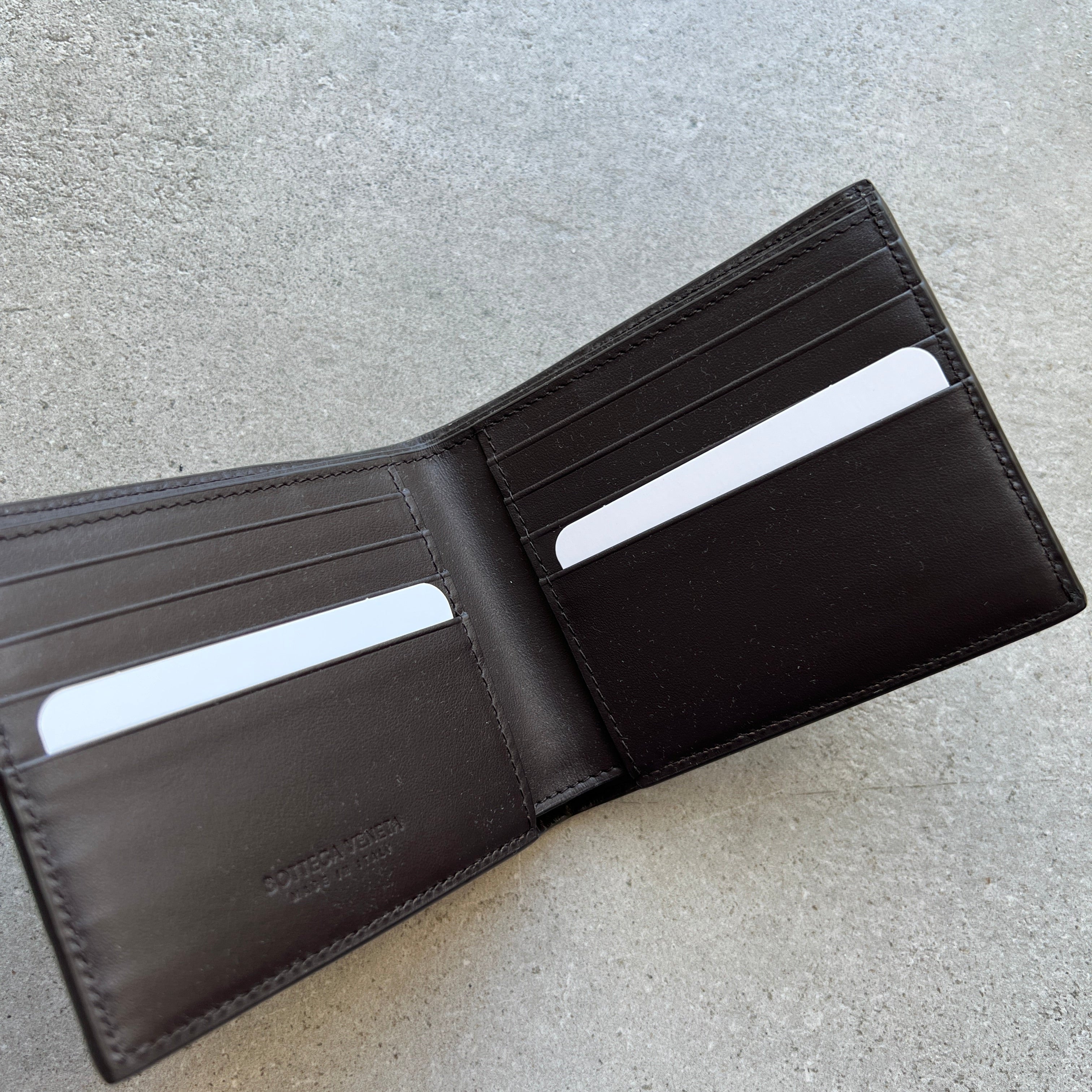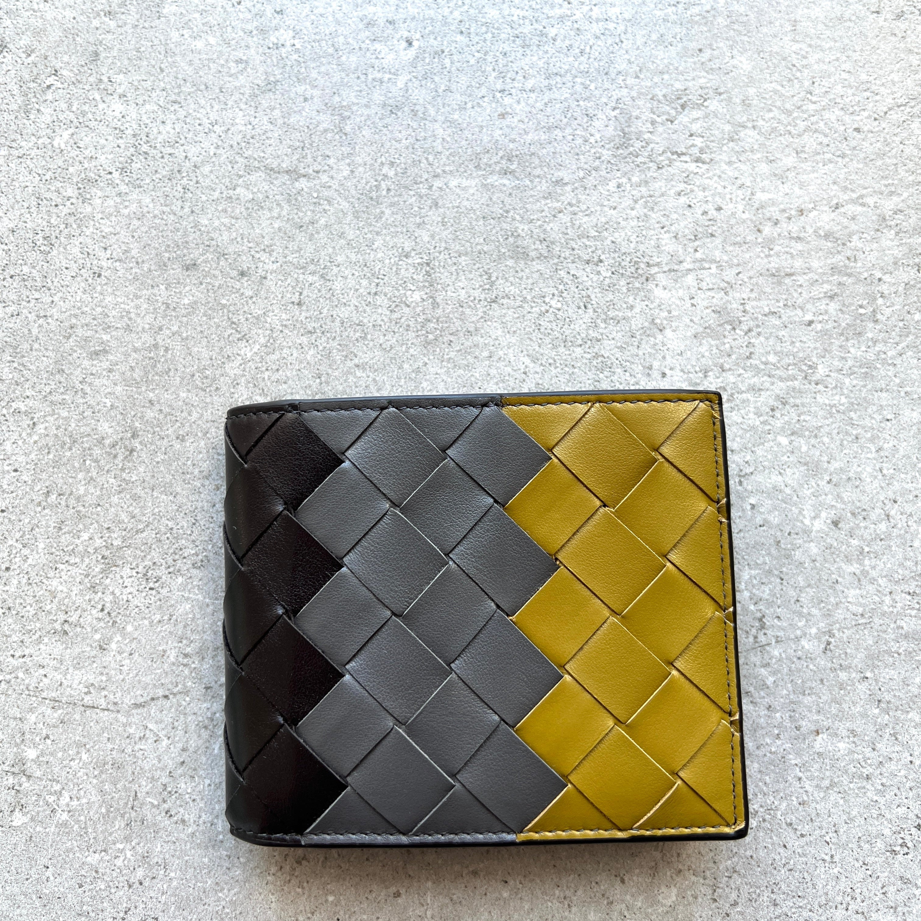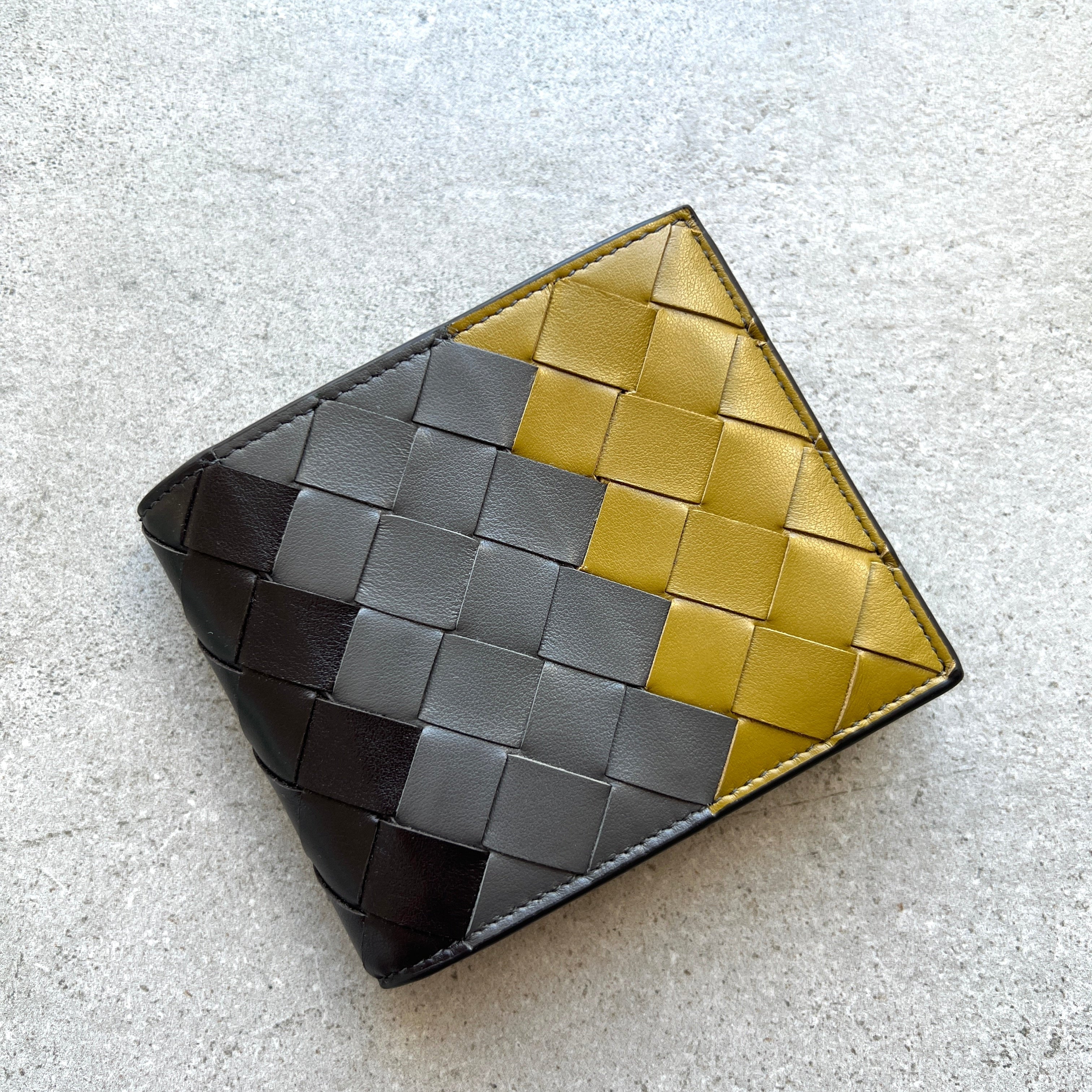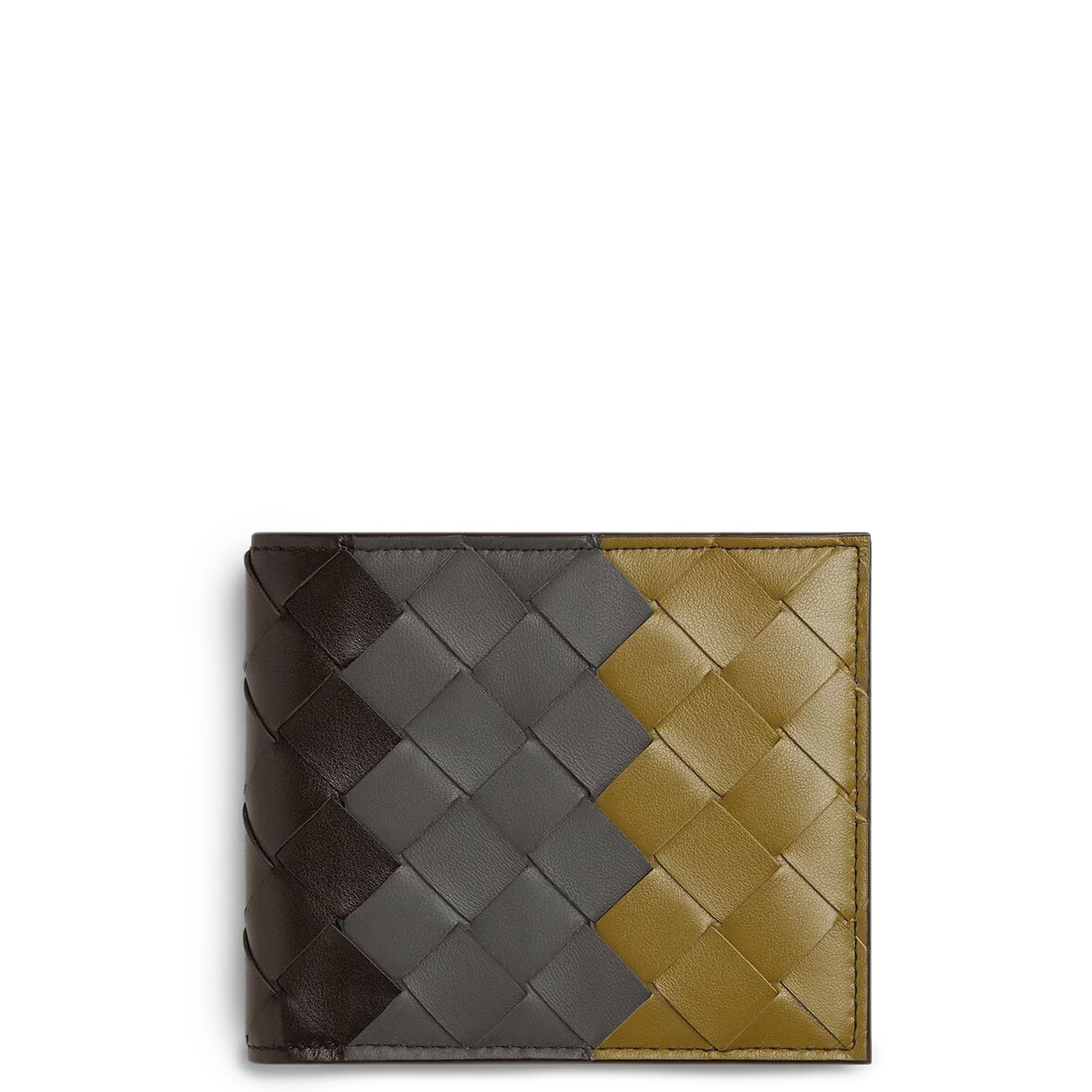 Intrecciato calfskin leather wallet with tri-colour panels.