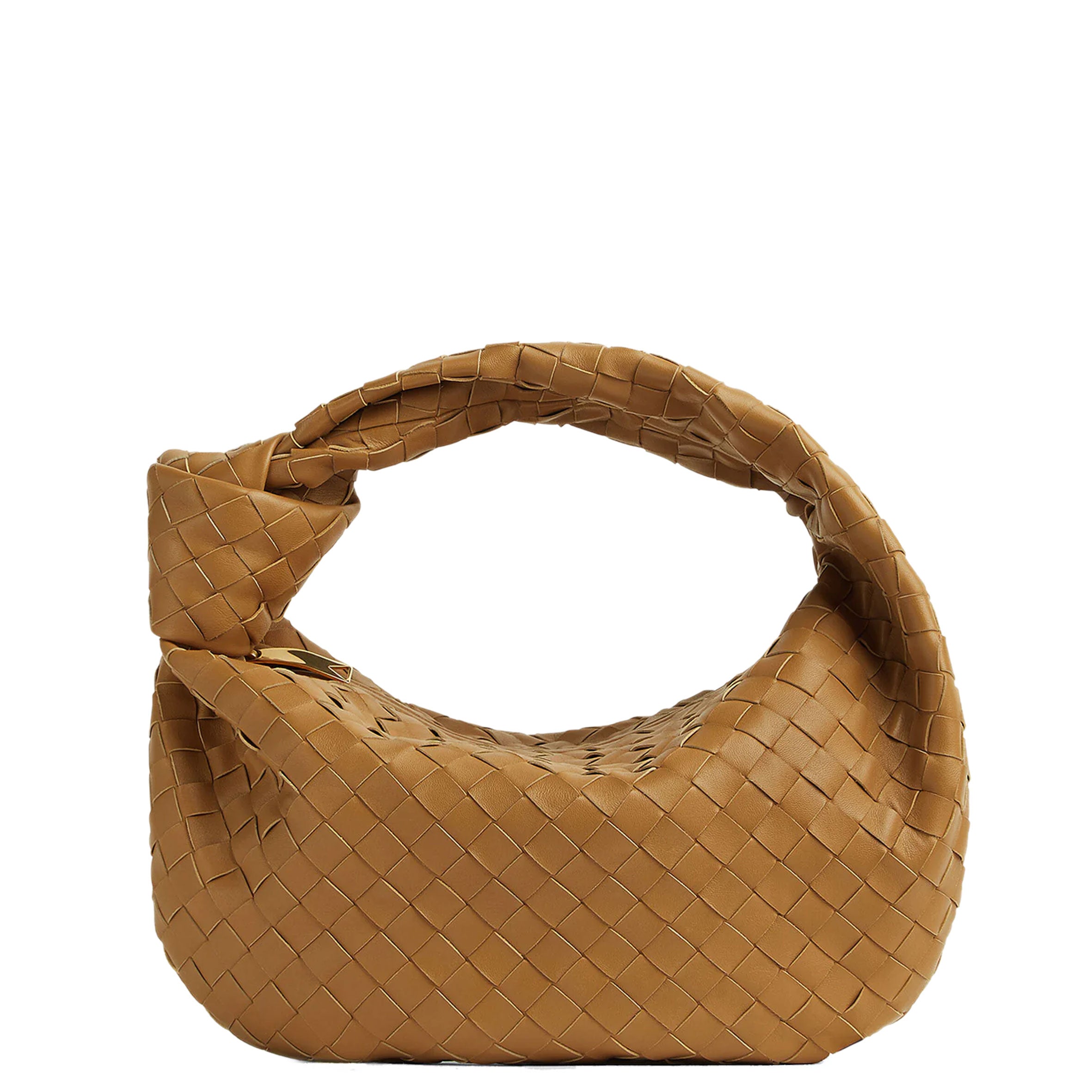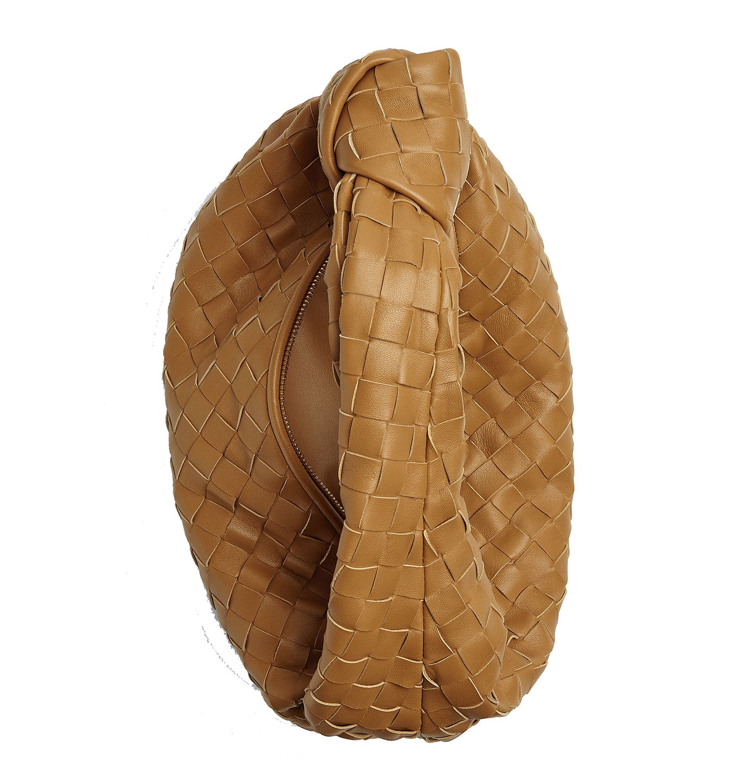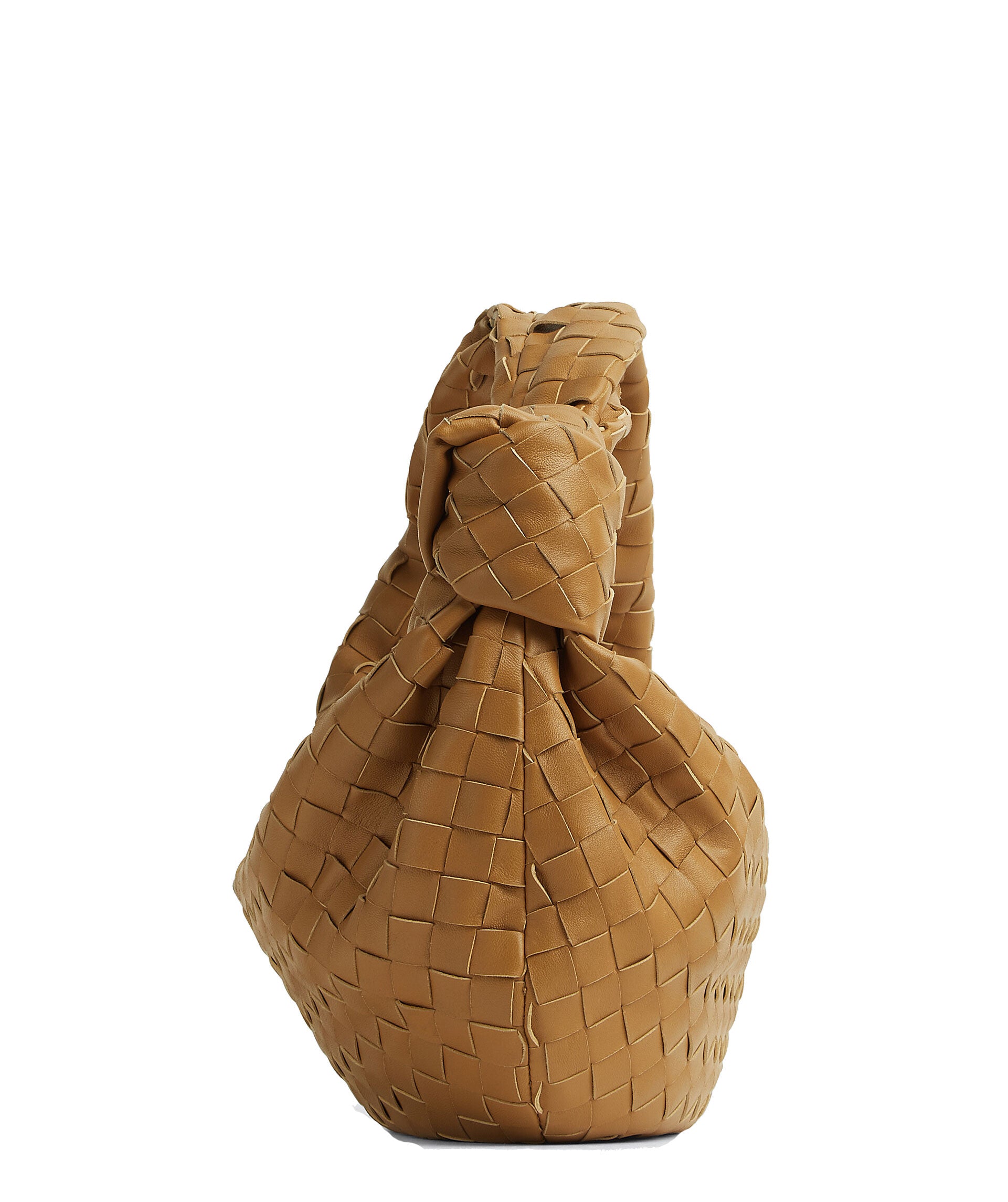 Named after actress Jodie Foster. The round mini hobo bag is woven using the iconic Intrecciato technique in supple leather and finished with a single knotted strap and a curved antiqued gold-tone metal zip. Lined in smooth calfskin.