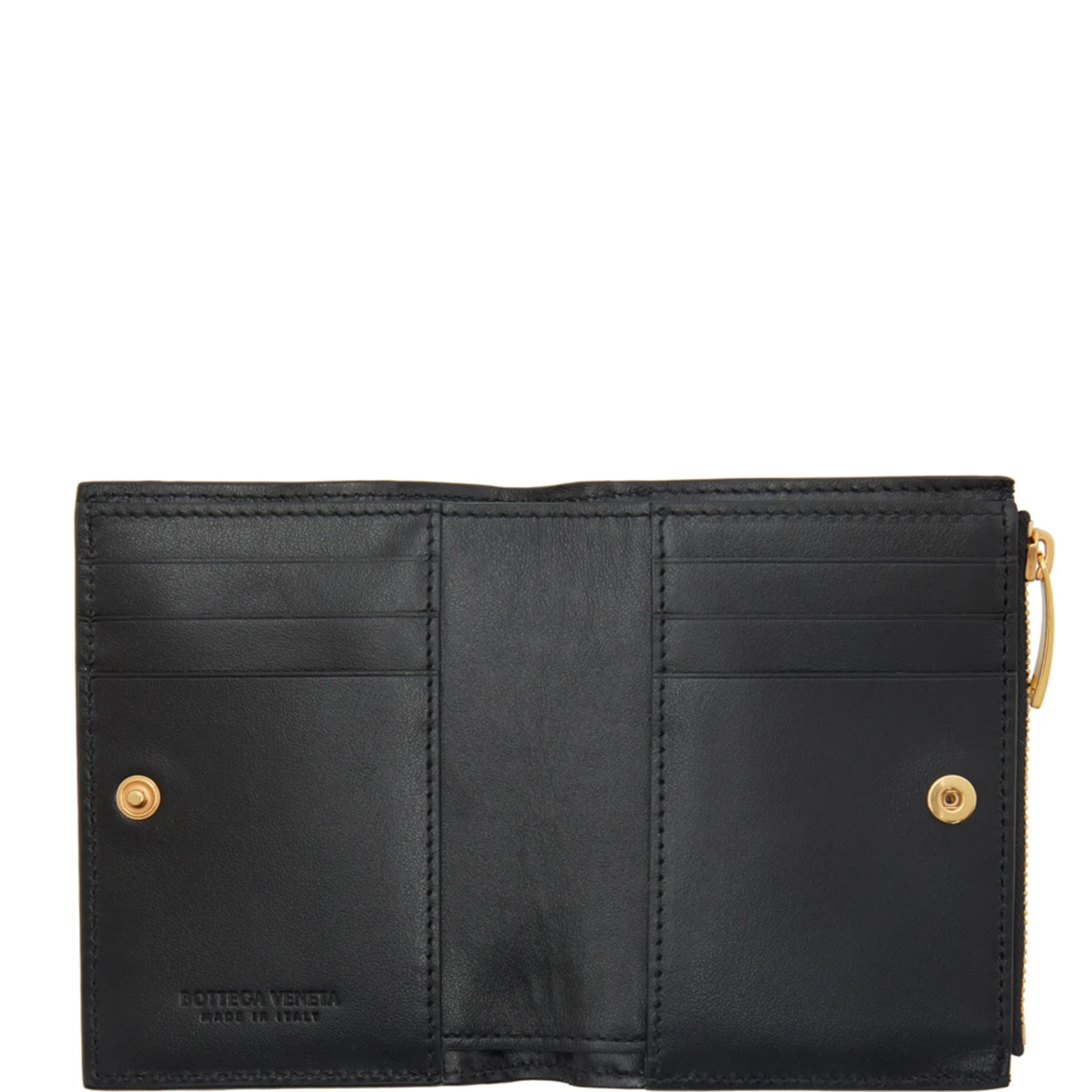 A bi-fold wallet with six card slots, a zippered coin pocket and a cash compartment.