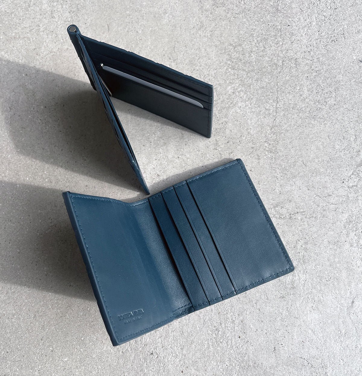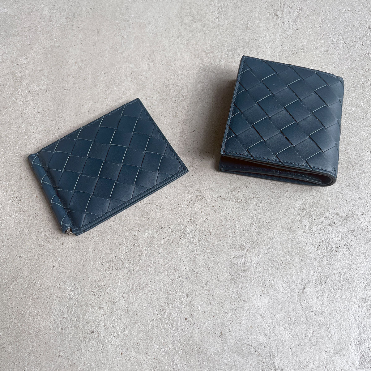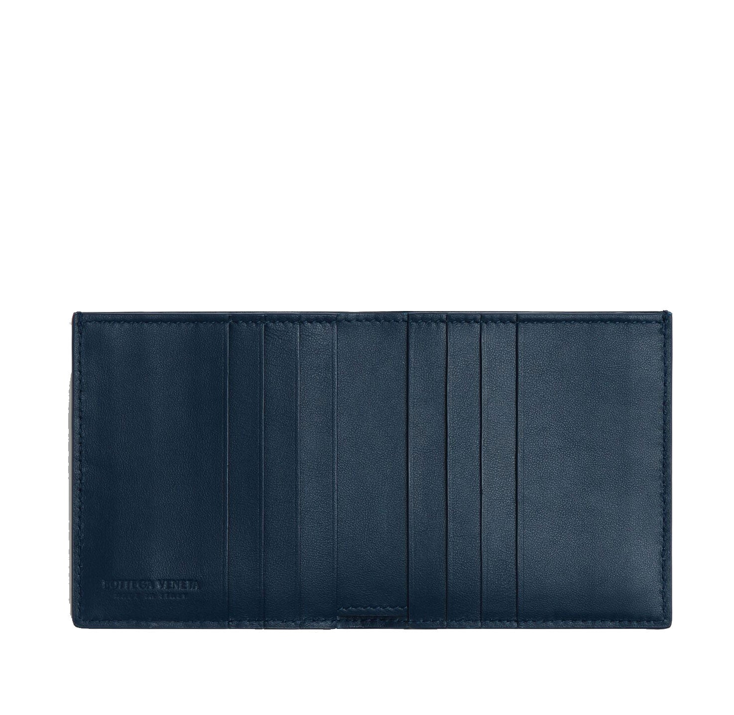 Bi-fold wallet in the classic woven leather featuring six card slots, an additional two pockets and one note compartment.
