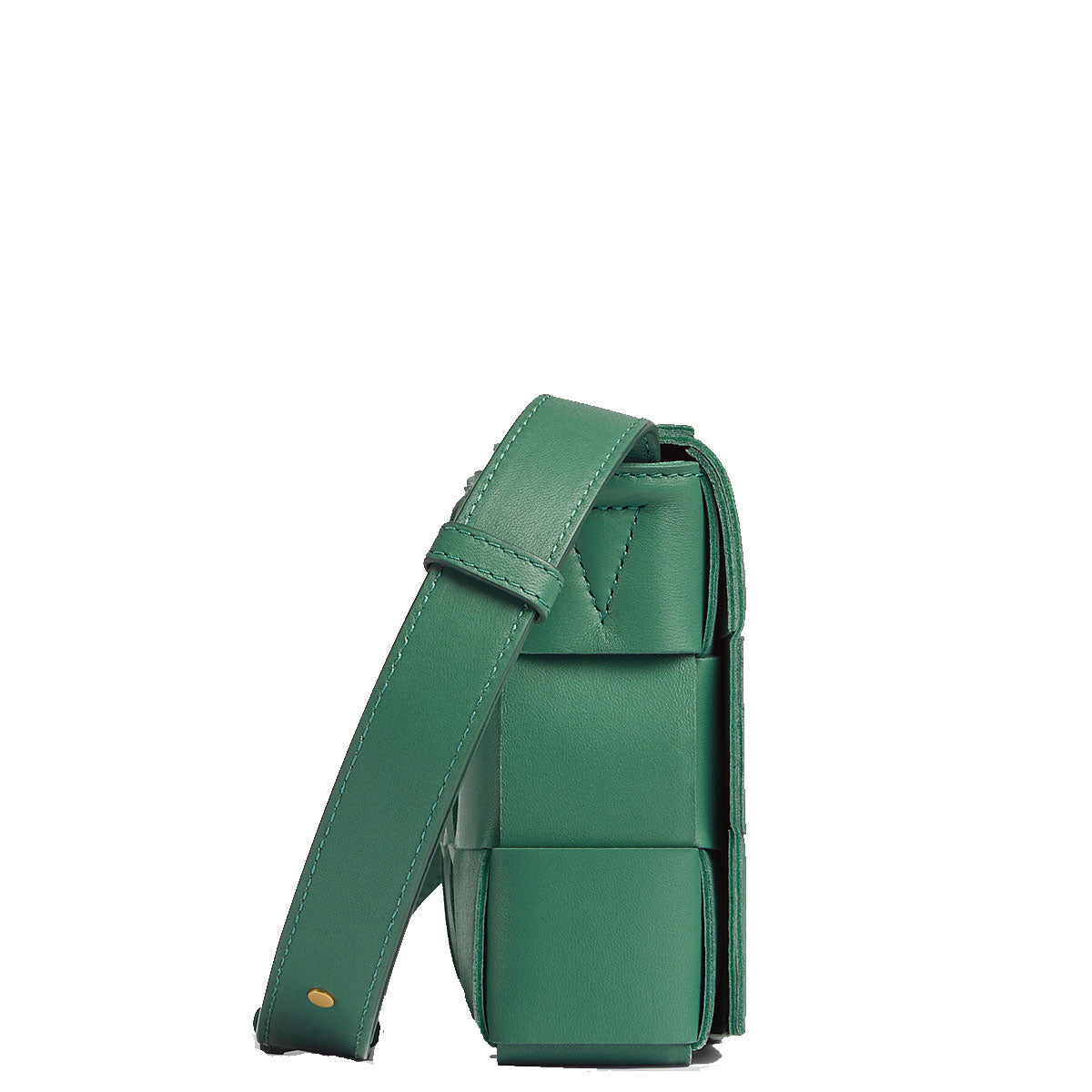 Crossbody bag in a double-face maxi weave. Made with wide double-face nappa strips in an orthogonal weave. Interior is identical to exterior; fitted with a zipped pocket and magnetic closure. Strap folds inside bag to carry as a clutch. Slim, adjustable shoulder strap.