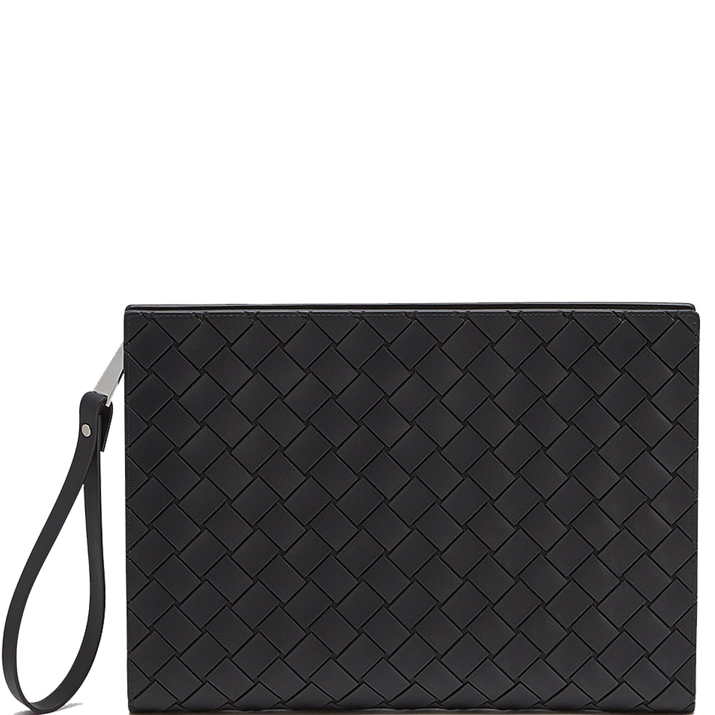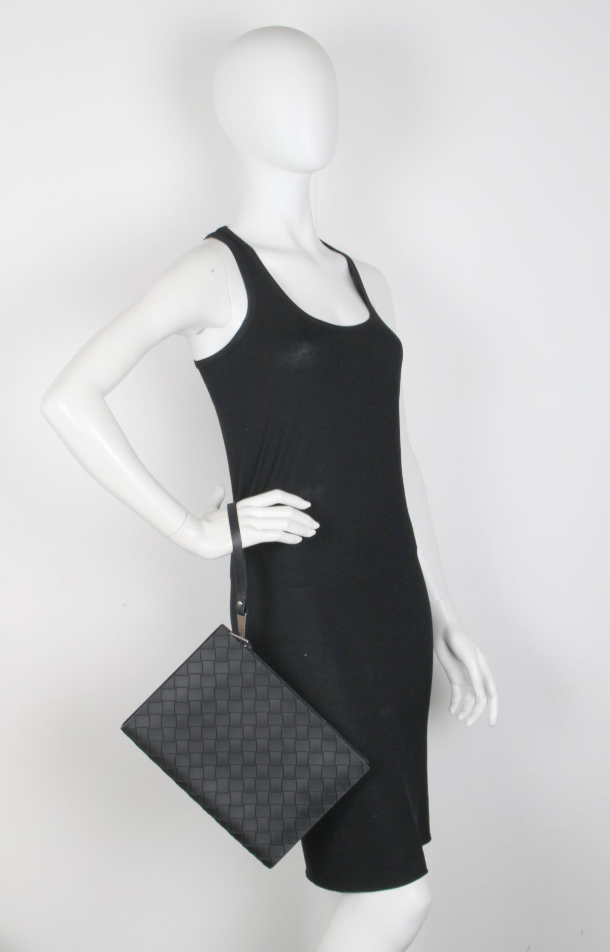 A document case in rubberized shell and 2 interior flat partition with six credit card slots. Comes with a detachable leather wristlet.