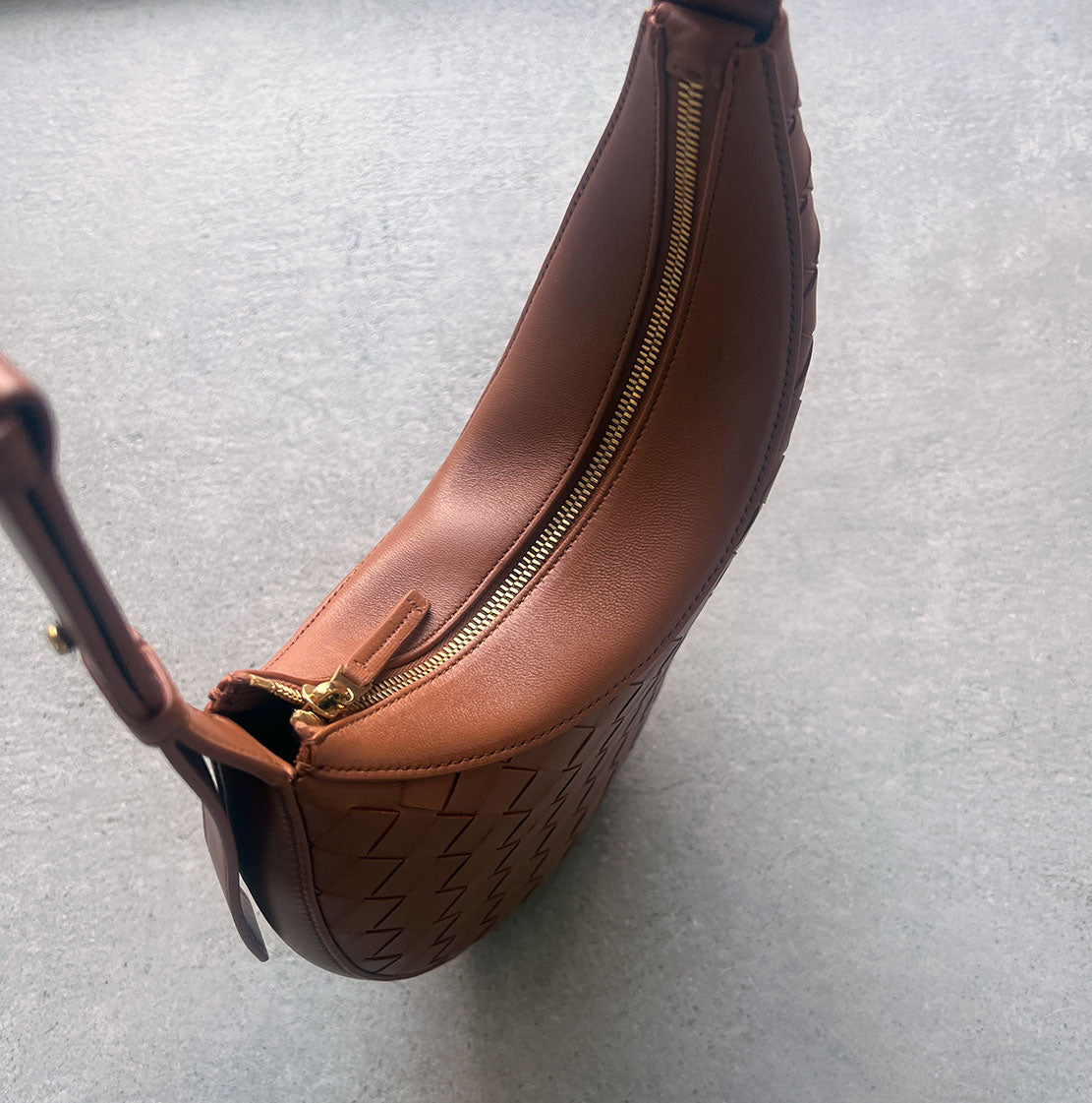 Shoulder bag with sculptural silhouette crafted from Intrecciato leather featuring