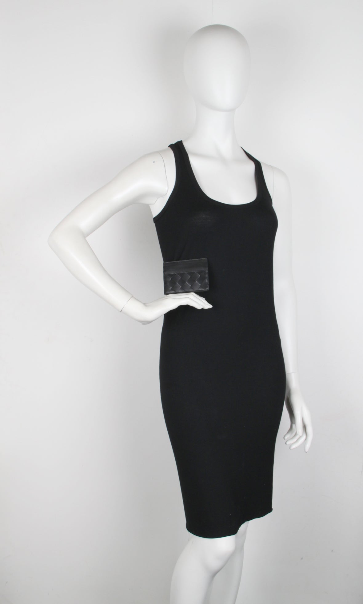Bottega Veneta flat card holder with three card slots on each side with a central compartment.