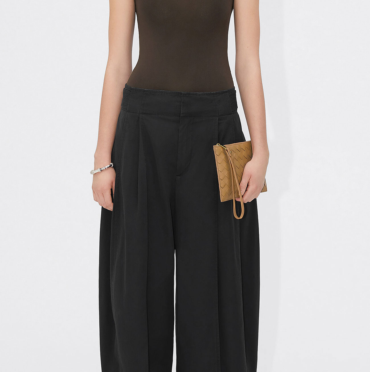 Flat Wristlet Pouch Intrecciato, Black