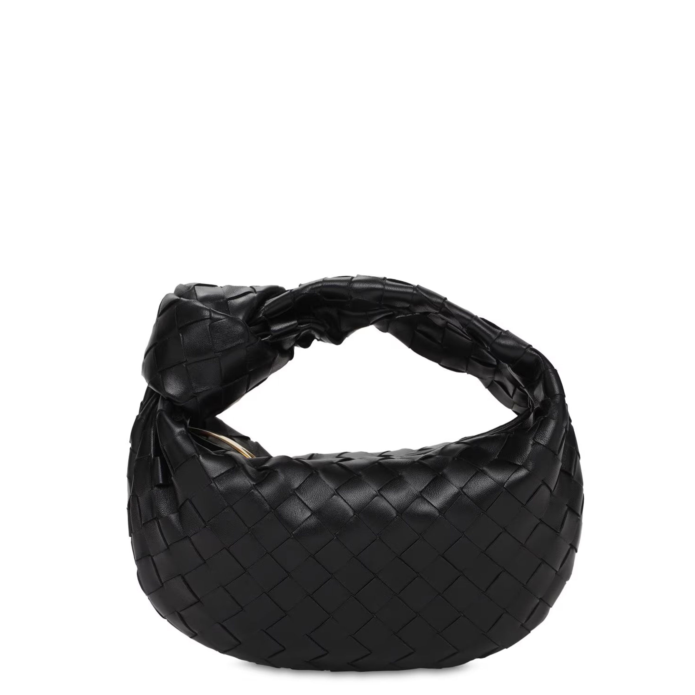 This mini BV Jodie bag is named after actress Jodie Foster. The round mini hobo bag is woven using the iconic Intrecciato technique in supple leather and finished with a single knotted strap and a curved antiqued gold-tone metal zip. Lined in smooth calfskin.