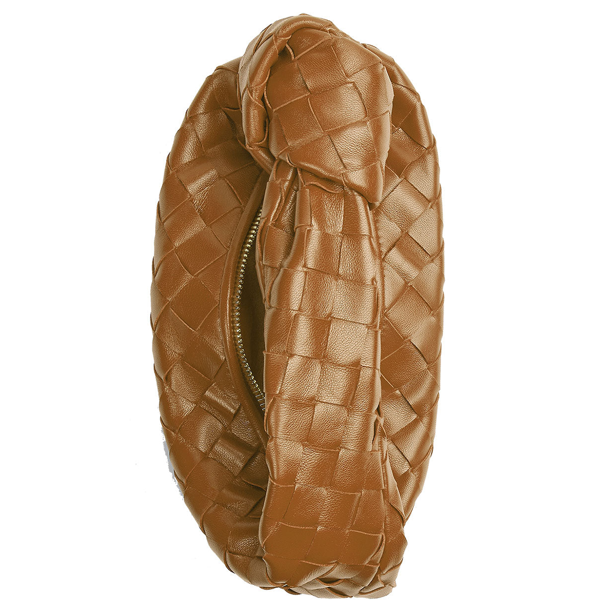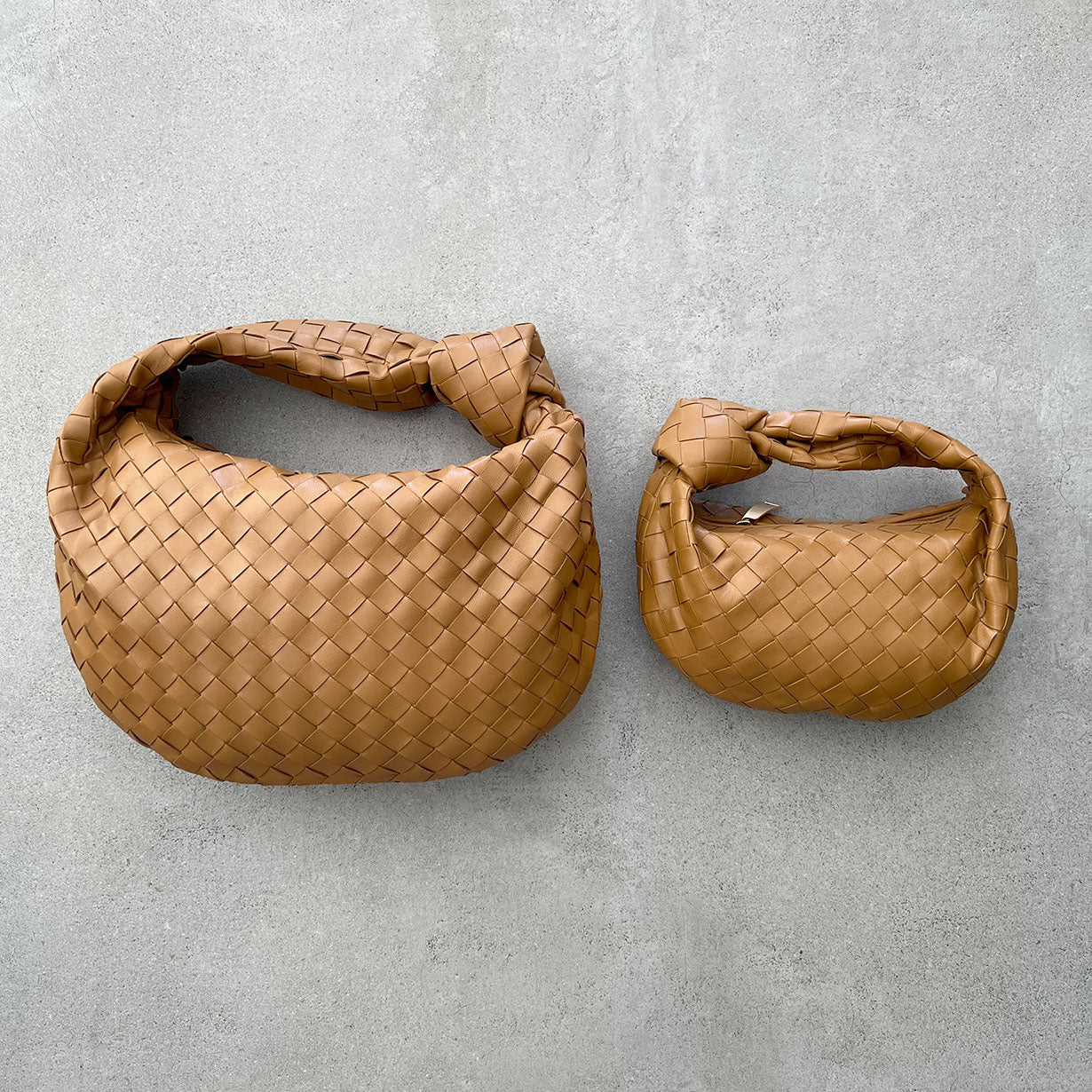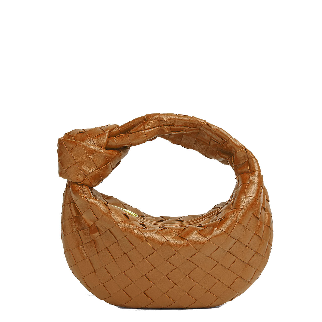 This mini BV Jodie bag is a new style for Resort 2020 and is named after actress Jodie Foster. The round mini hobo bag is woven using the iconic Intrecciato technique in supple leather and finished with a single knotted strap and a curved antiqued gold-tone metal zip. Lined in smooth calfskin.