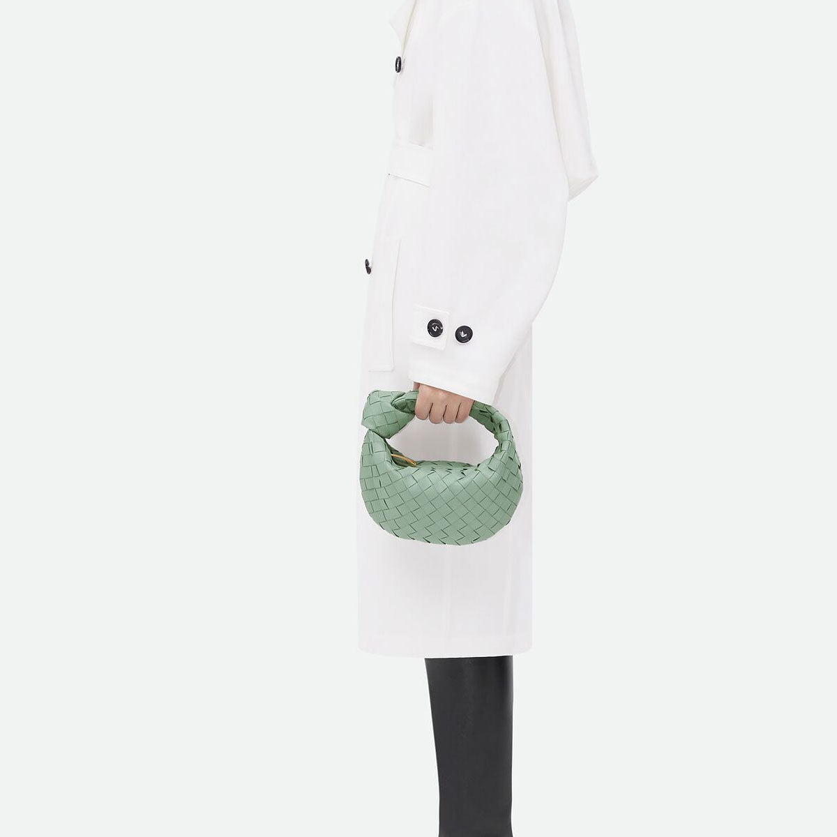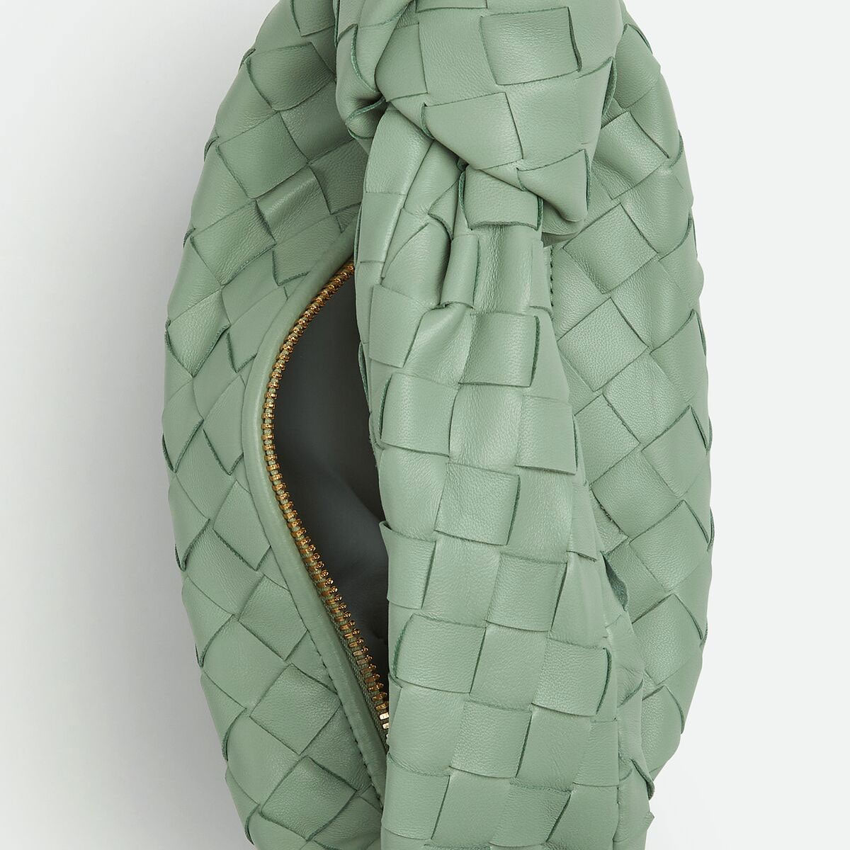 This mini BV Jodie bag is named after actress Jodie Foster. The round mini hobo bag is woven using the iconic Intrecciato technique in supple leather and finished with a single knotted strap and a curved antiqued gold-tone metal zip. Lined in smooth calfskin.