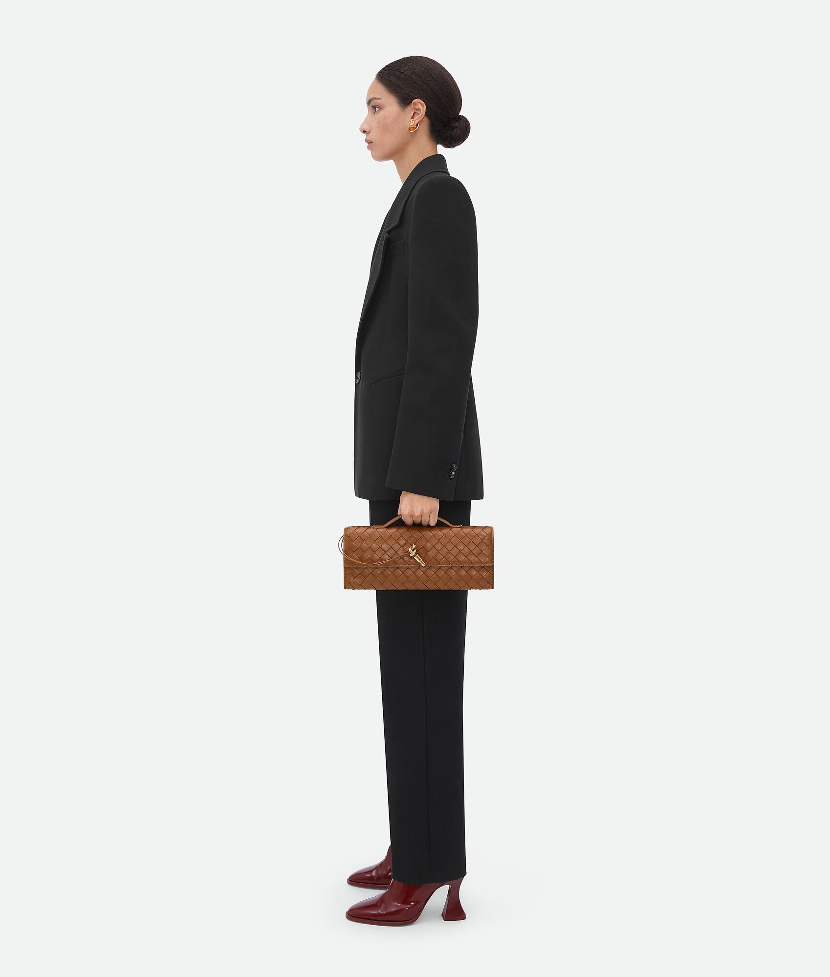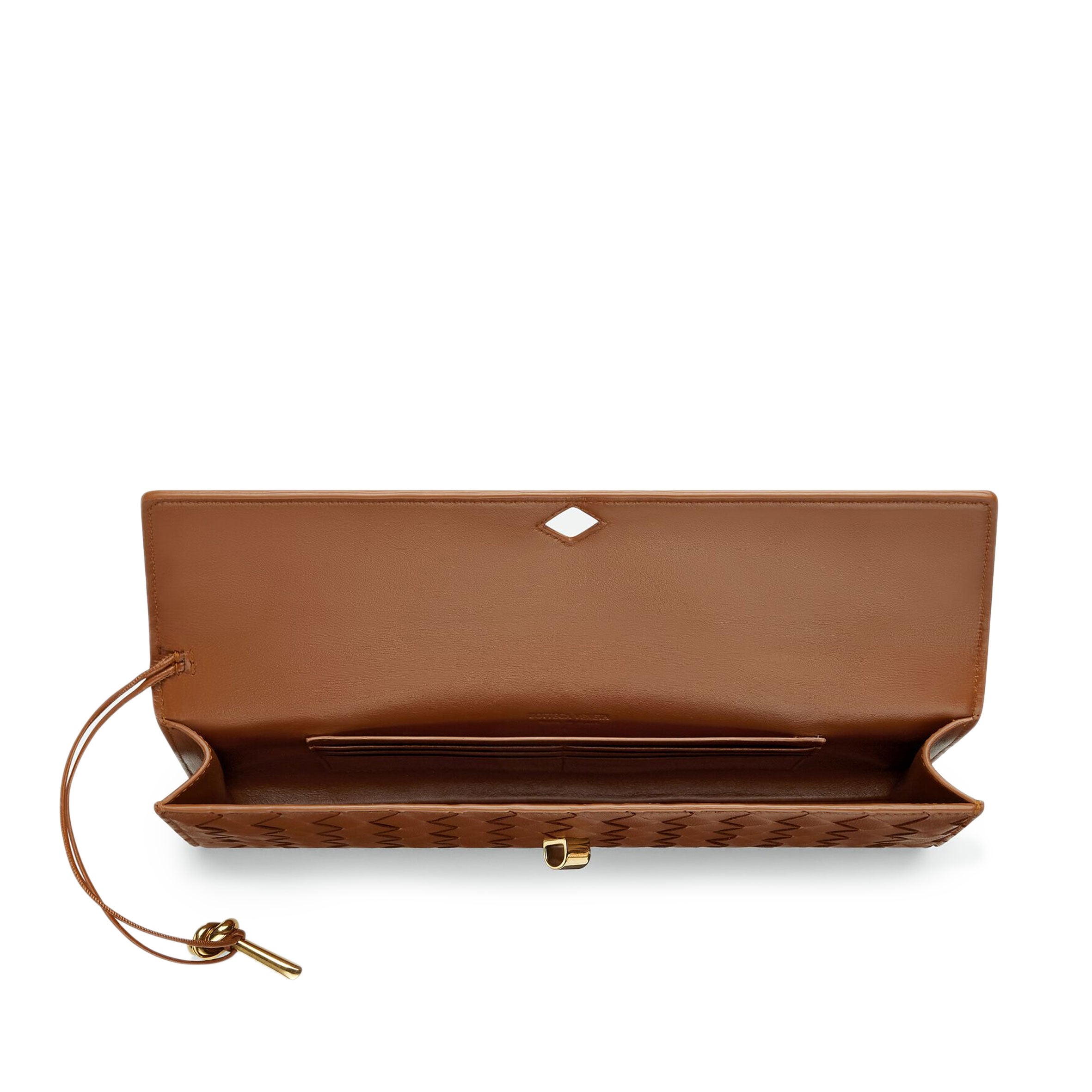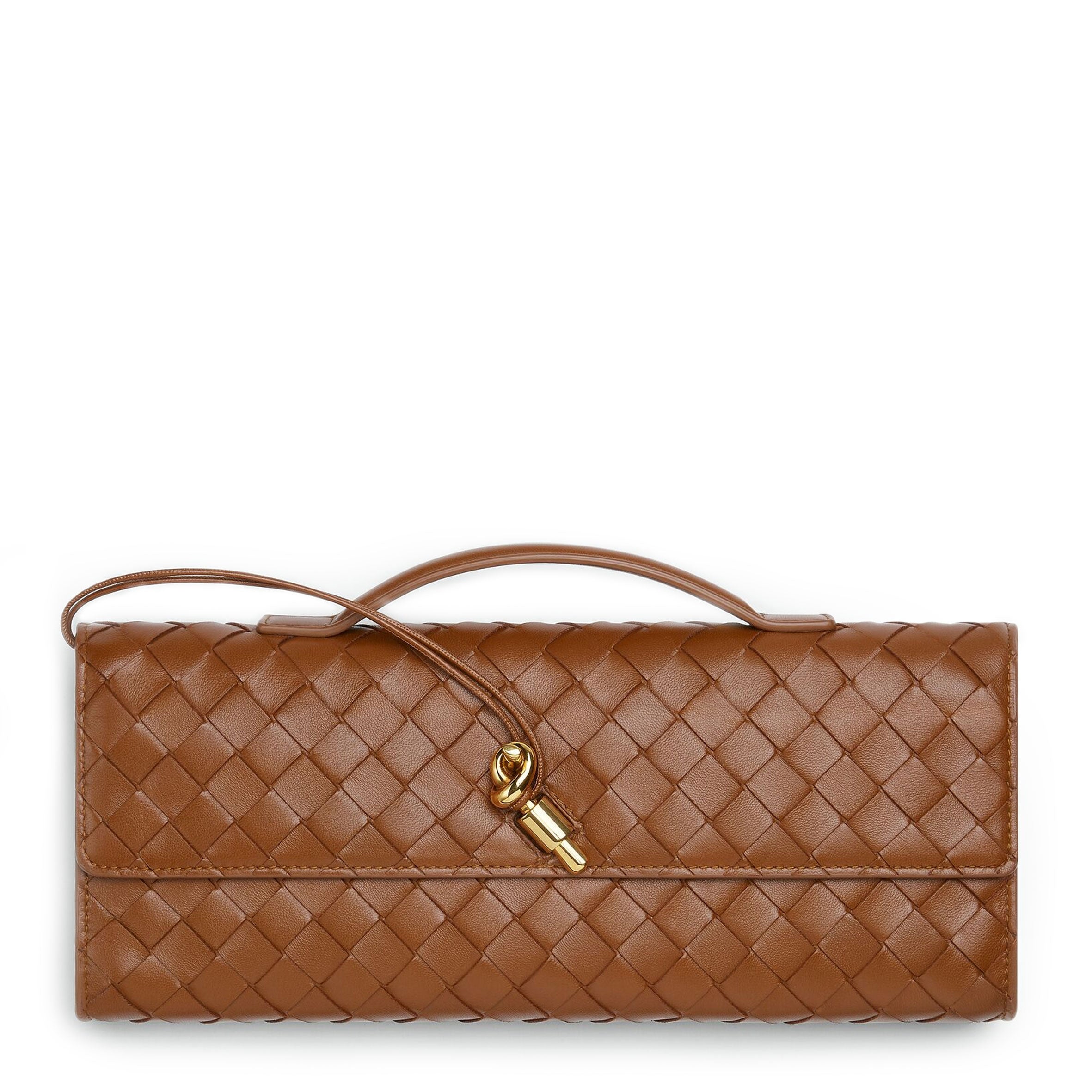 • Intrecciato leather handle clutch with metallic knot closure