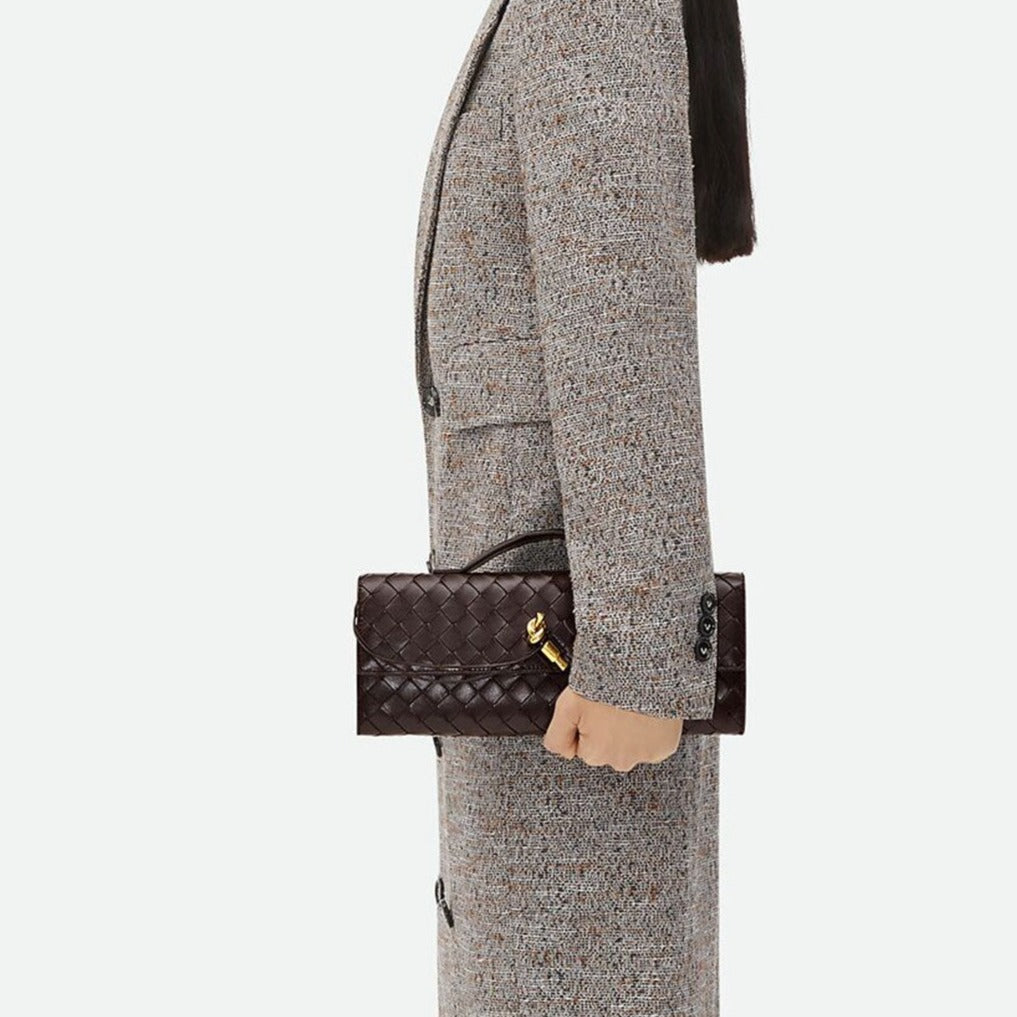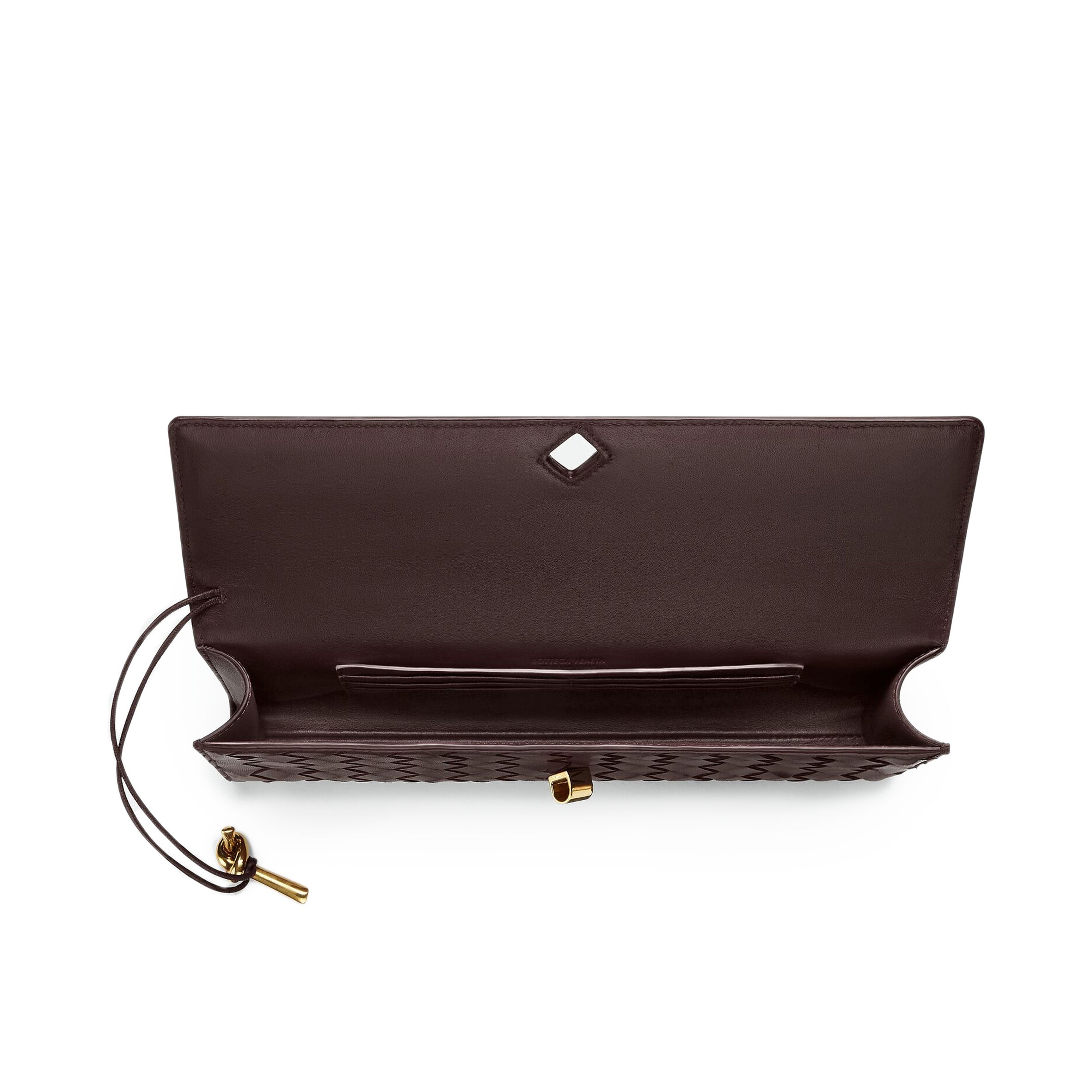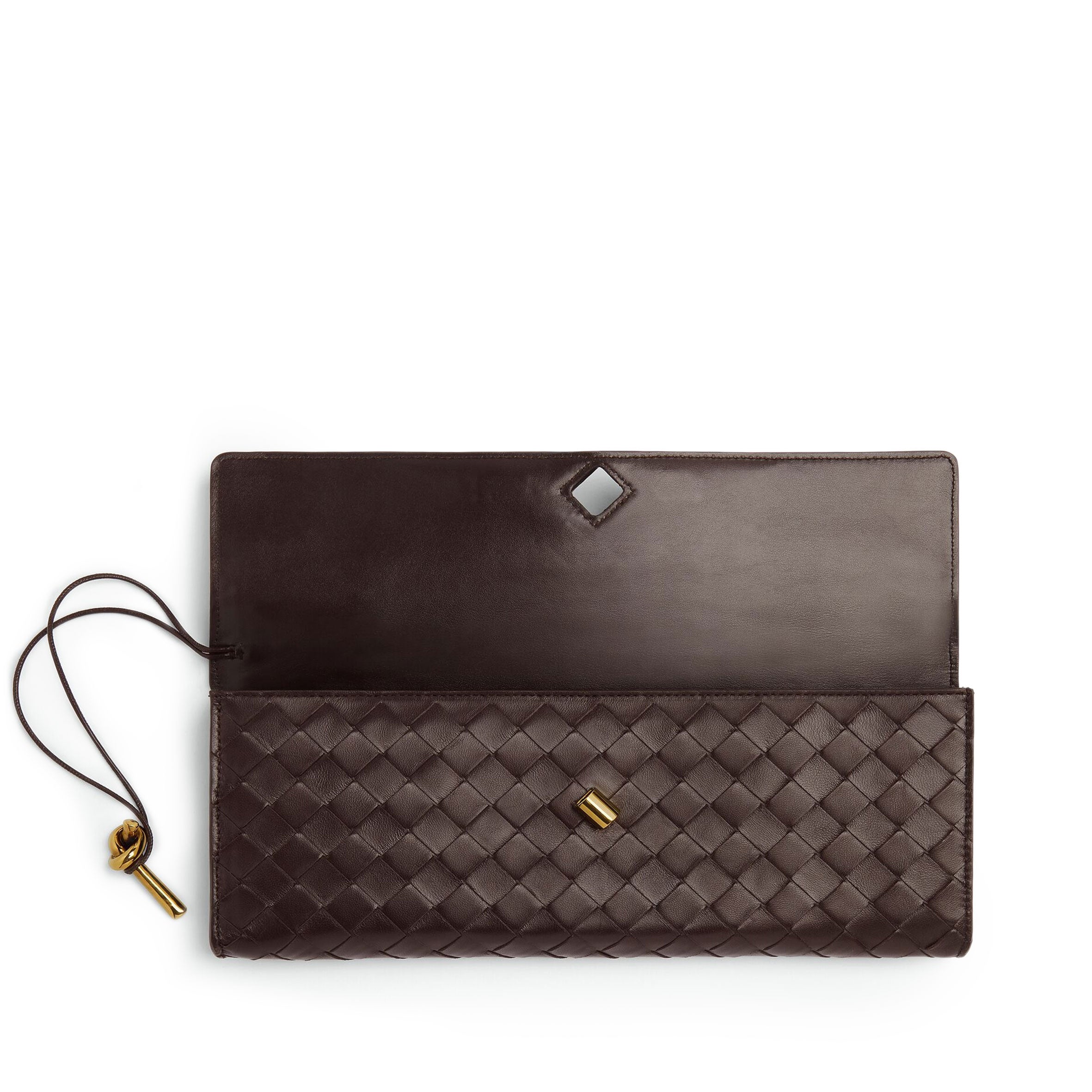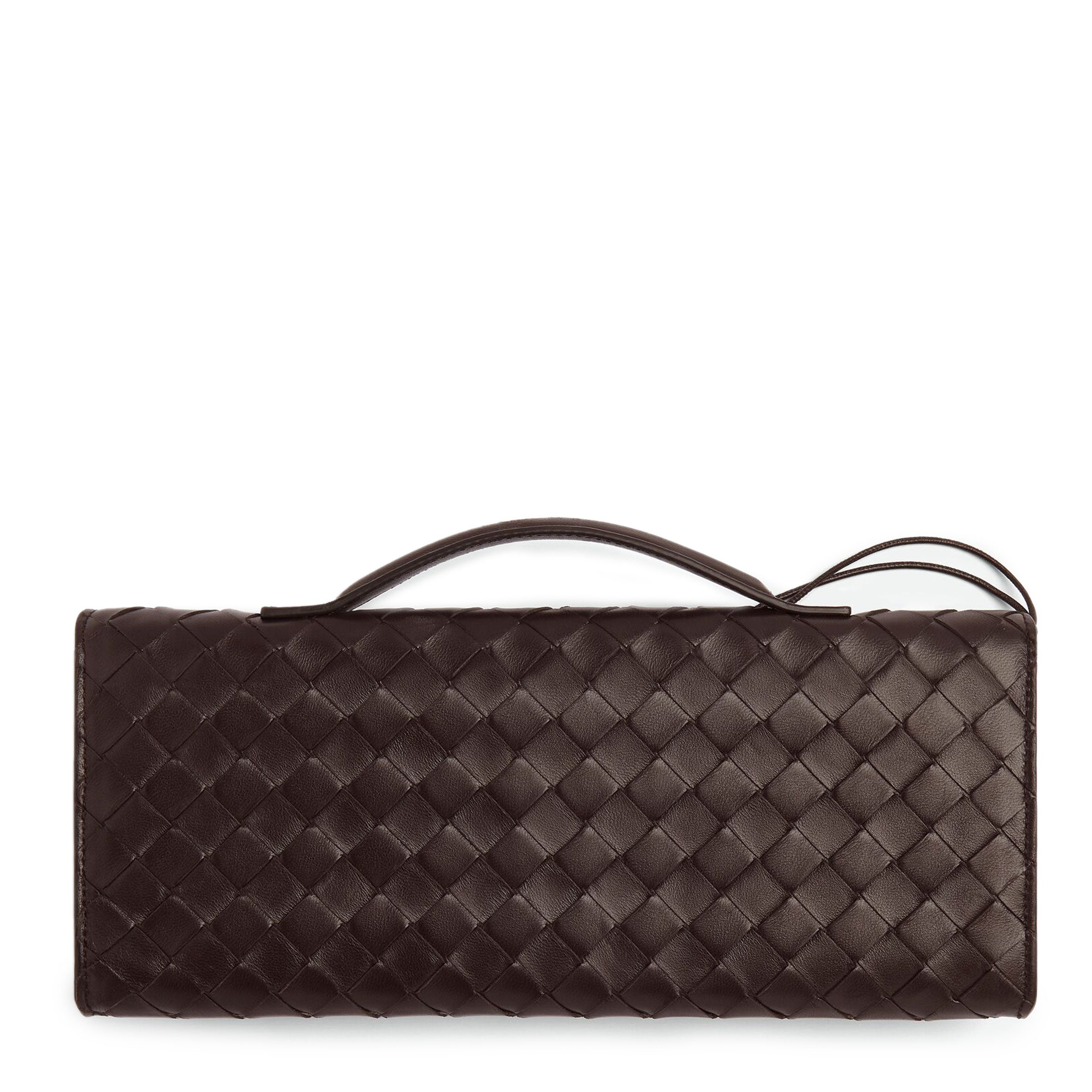 Clutch with handle realised with Intrecciato craftsmanship in soft lambskin leather