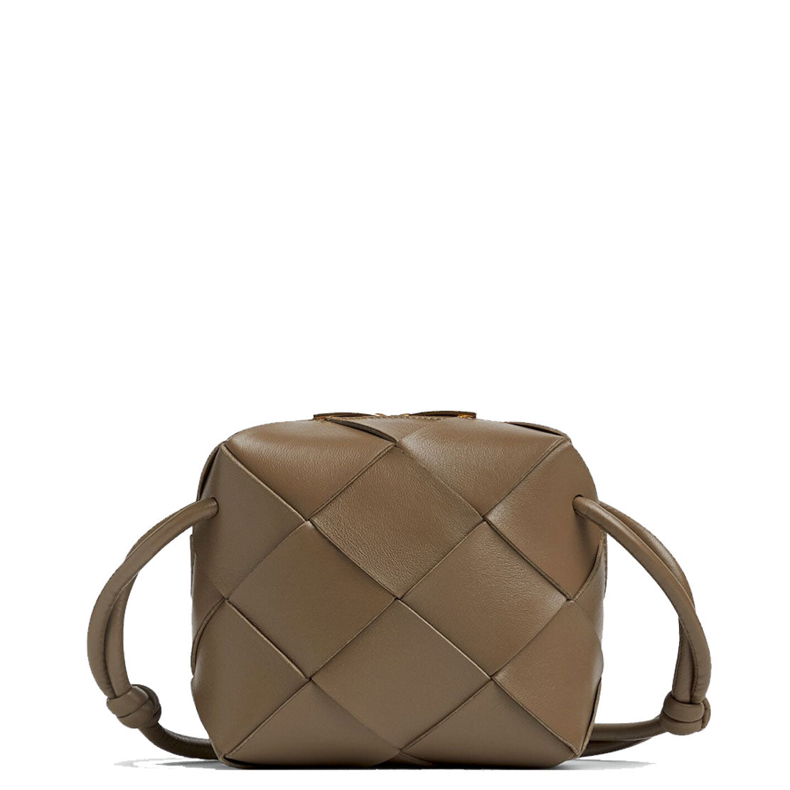 Bottega Veneta's signature Loop Mini bag is now available in their cassette weave. This crossbody bag has a soft edge boxy shape crafted from lamb leather and features double knotted side details on the strap, zip top closure and bonded lambskin lining.
