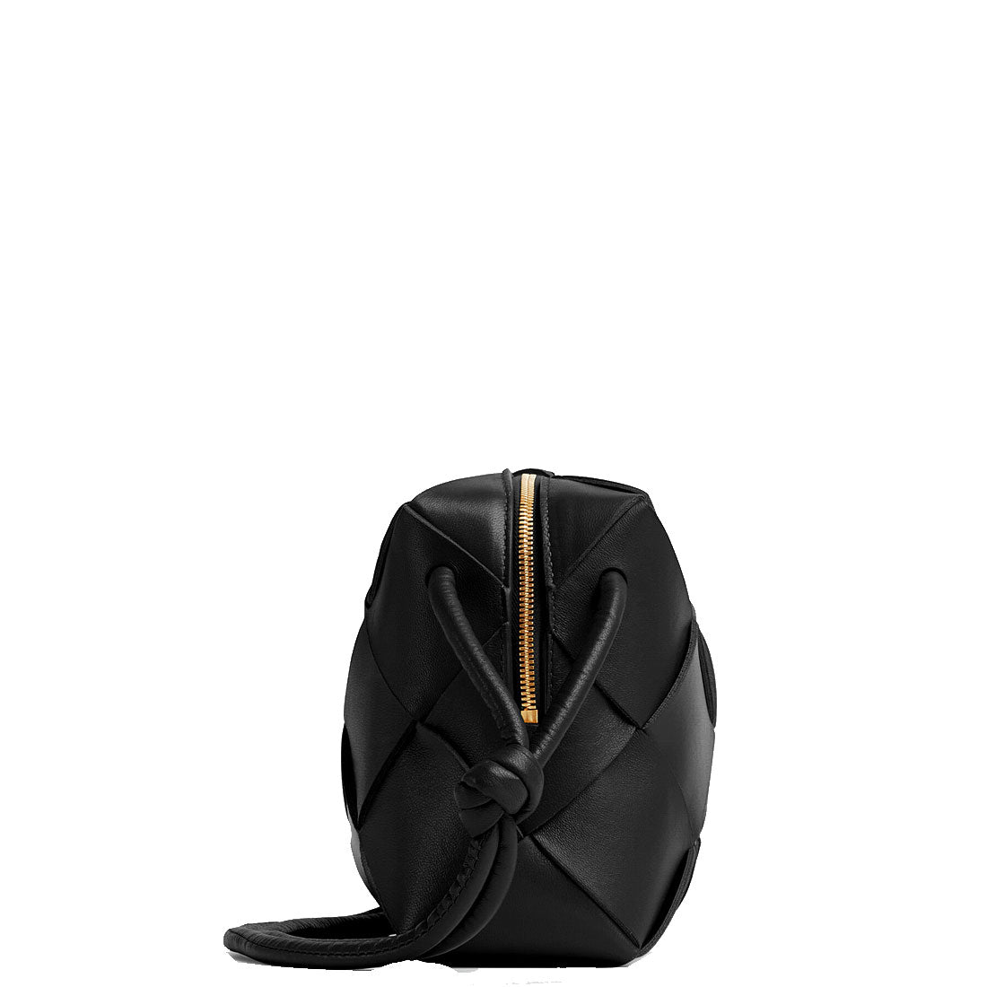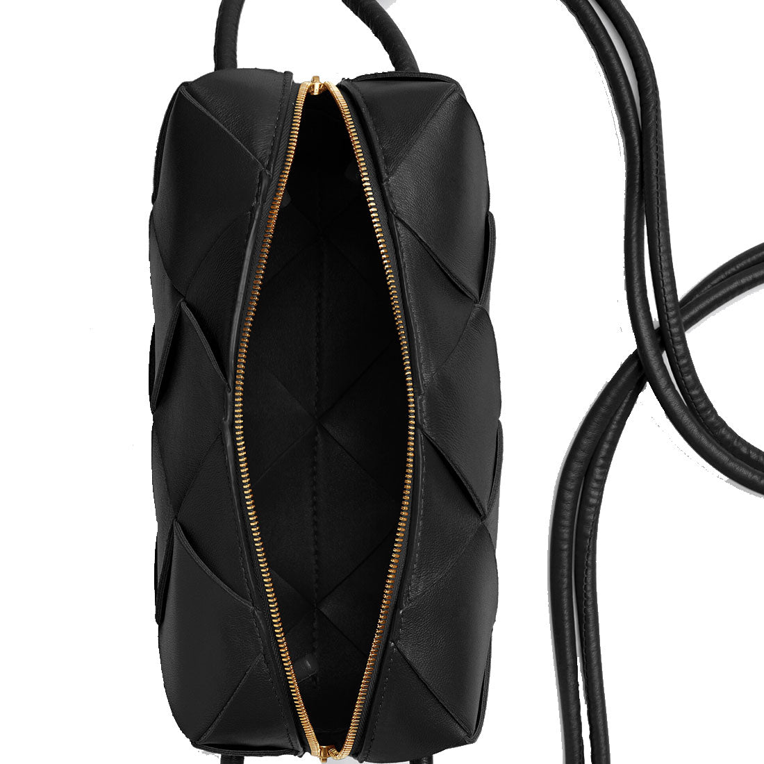Bottega Veneta's signature Loop Small bag is now available in their cassette weave. This crossbody bag has a soft edge boxy shape crafted from lamb leather and features double knotted side details on the strap, zip top closure and bonded lambskin lining.
