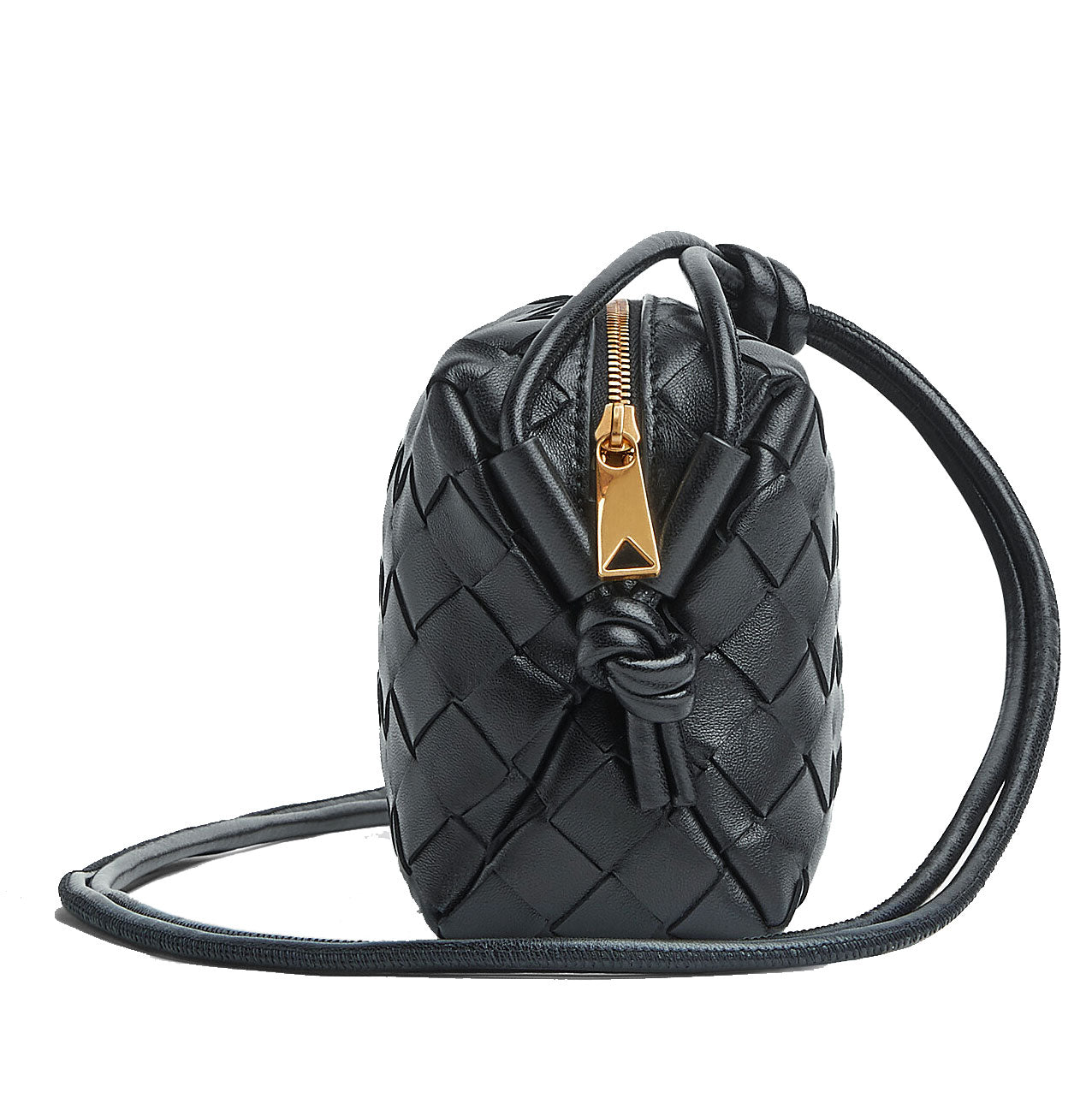 Bottega Veneta's Loop Mini bag is woven in the designers distinguishable intrecciato weave. This crossbody bag has a soft edge boxy shape crafted from lamb leather and features double knotted side details on the strap, zip top closure and internal leather lining with one slot pocket.