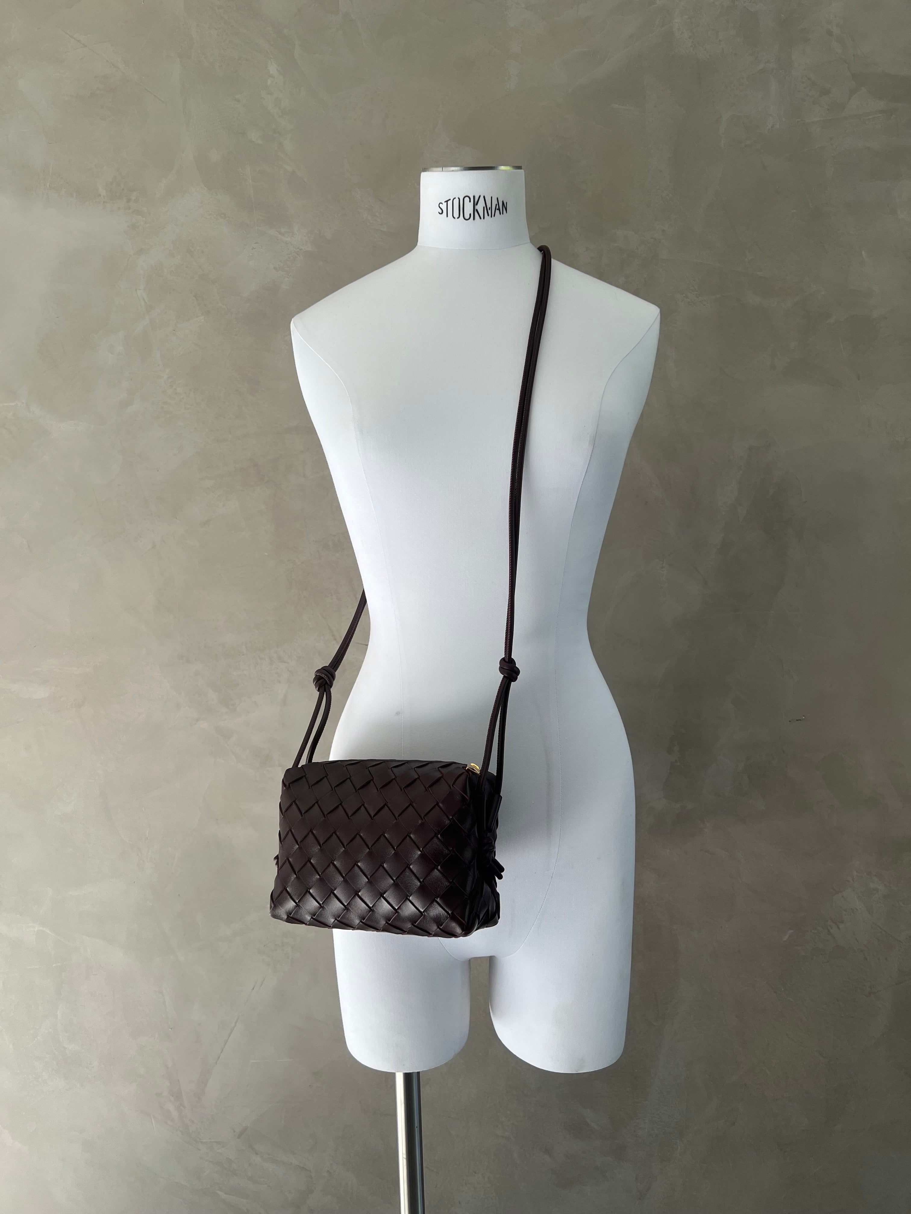 Bottega Veneta's Loop Mini bag is woven in the designers distinguishable intrecciato weave. This crossbody bag has a soft edge boxy shape crafted from lamb leather and features double knotted side details on the strap, zip top closure and internal leather lining with one slot pocket.