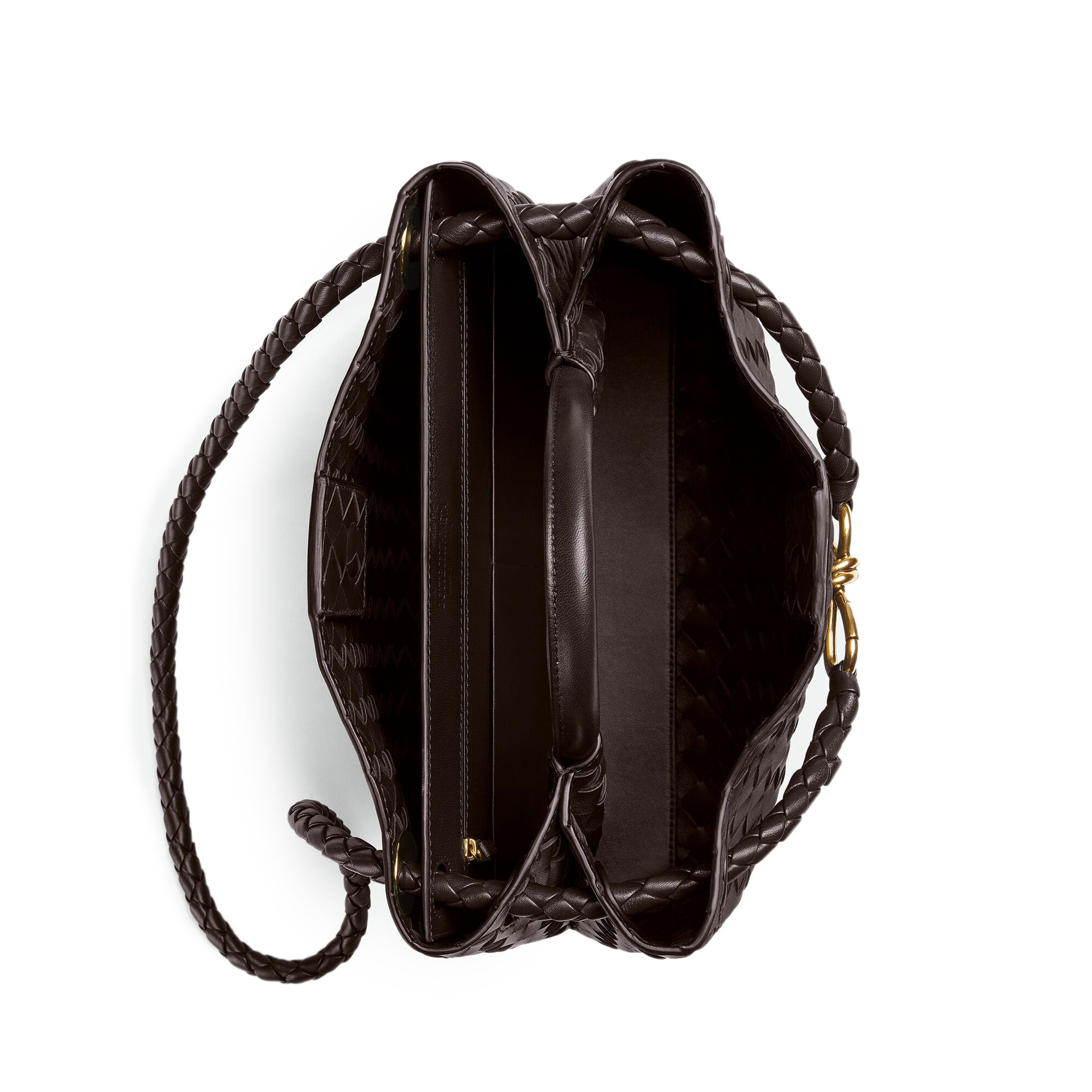 Andiamo is a new expression of the signature Intrecciato weave realised by the expert craftsmanship of artisans in the house’s atelier. Its name, Andiamo, “Let’s go” in Italian, embodies the spirit of the bag, a tribute to going places and the concept of craft in motion. The bag features a timeless Intrecciato silhouette woven by hand. A metal knot adorns and fastens its sliding braided straps, allowing it to be adjusted over the shoulder or across the body, giving the bag a soft tapered volume.