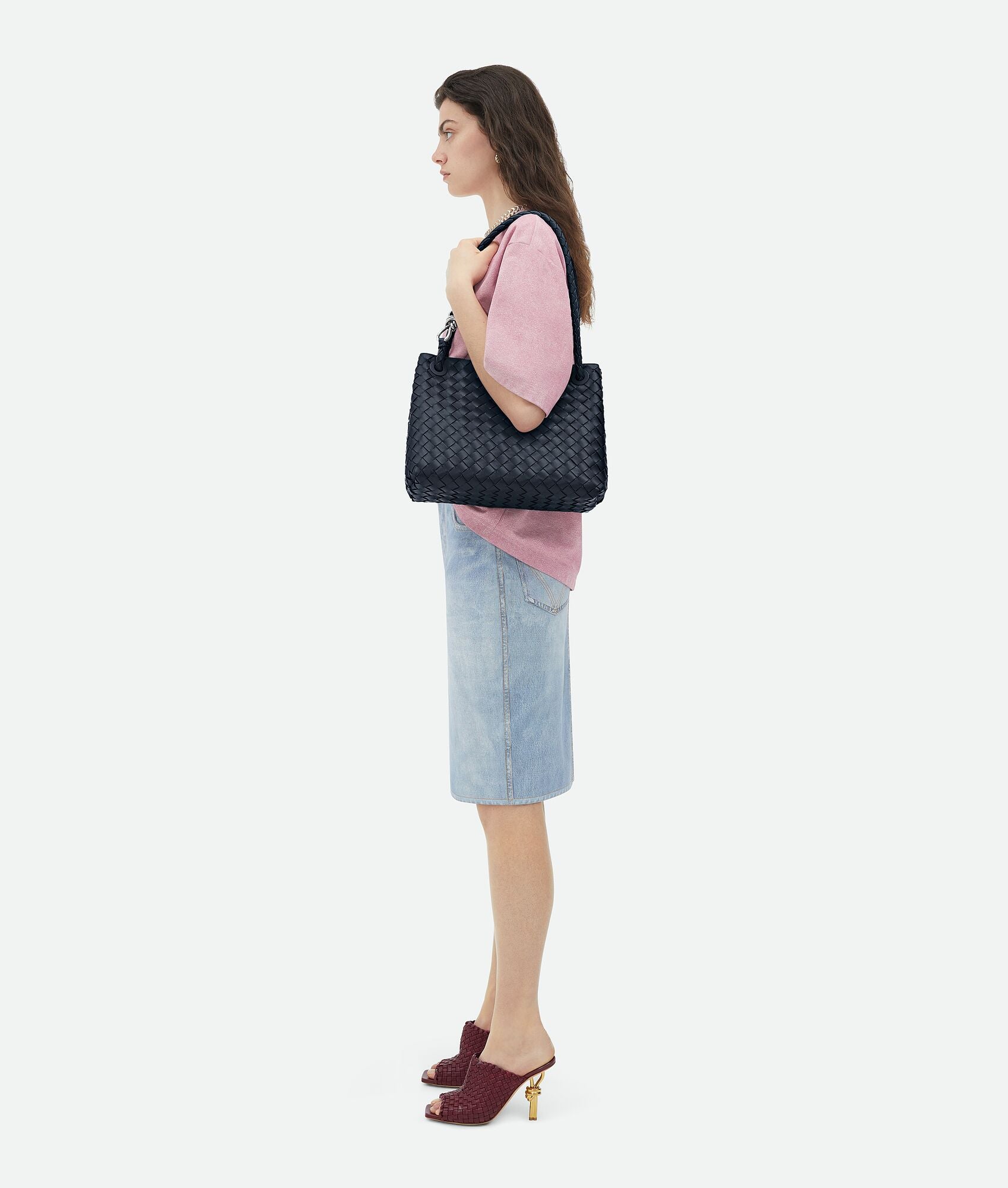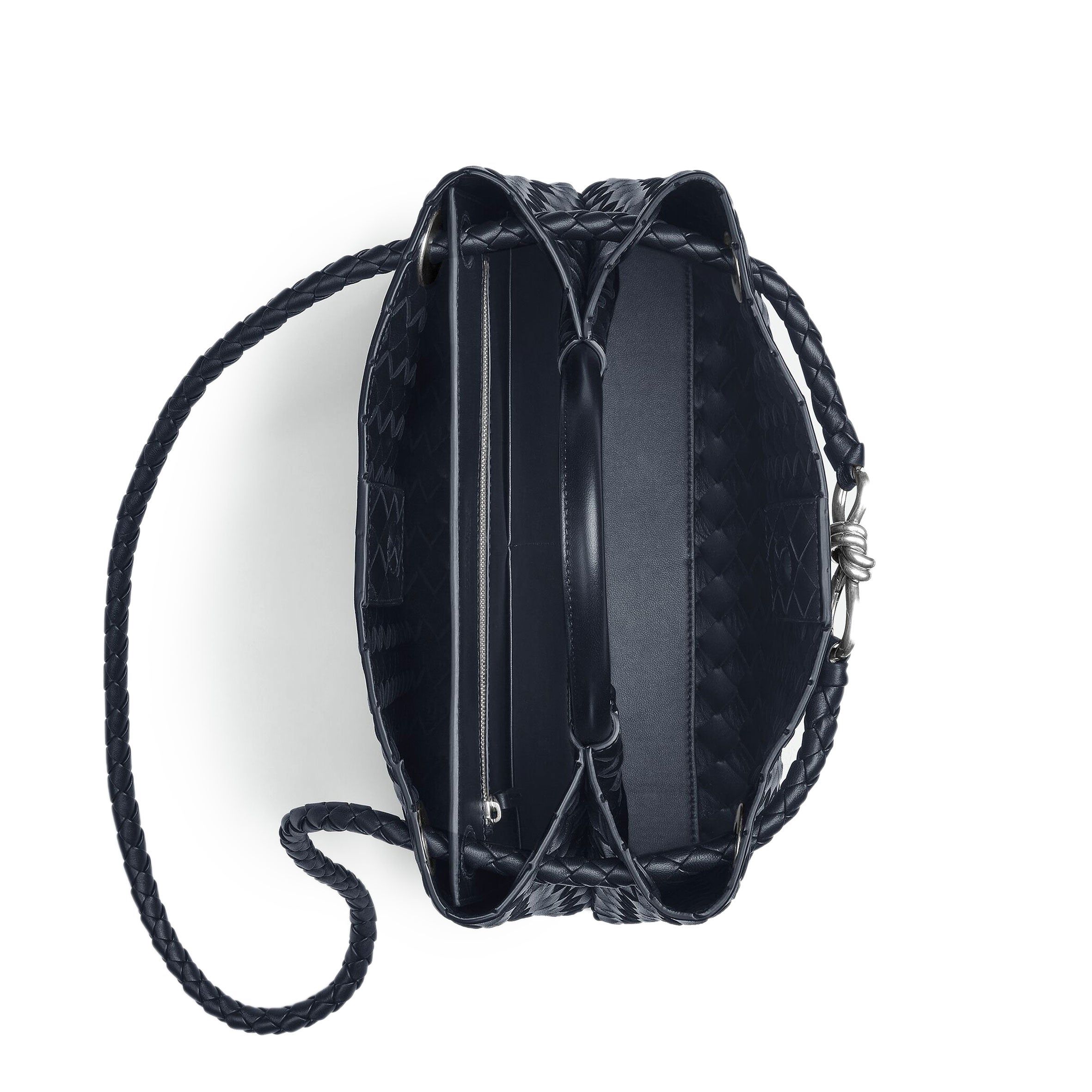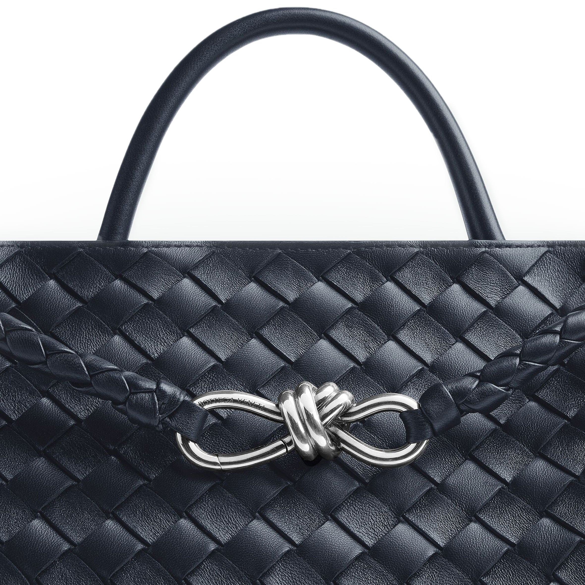 Andiamo is a new expression of the signature Intrecciato weave realised by the expert craftsmanship of artisans in the house’s atelier. Its name, Andiamo, “Let’s go” in Italian, embodies the spirit of the bag, a tribute to going places and the concept of craft in motion. The bag features a timeless Intrecciato silhouette woven by hand. A metal knot adorns and fastens its sliding braided straps, allowing it to be adjusted over the shoulder or across the body, giving the bag a soft tapered volume.