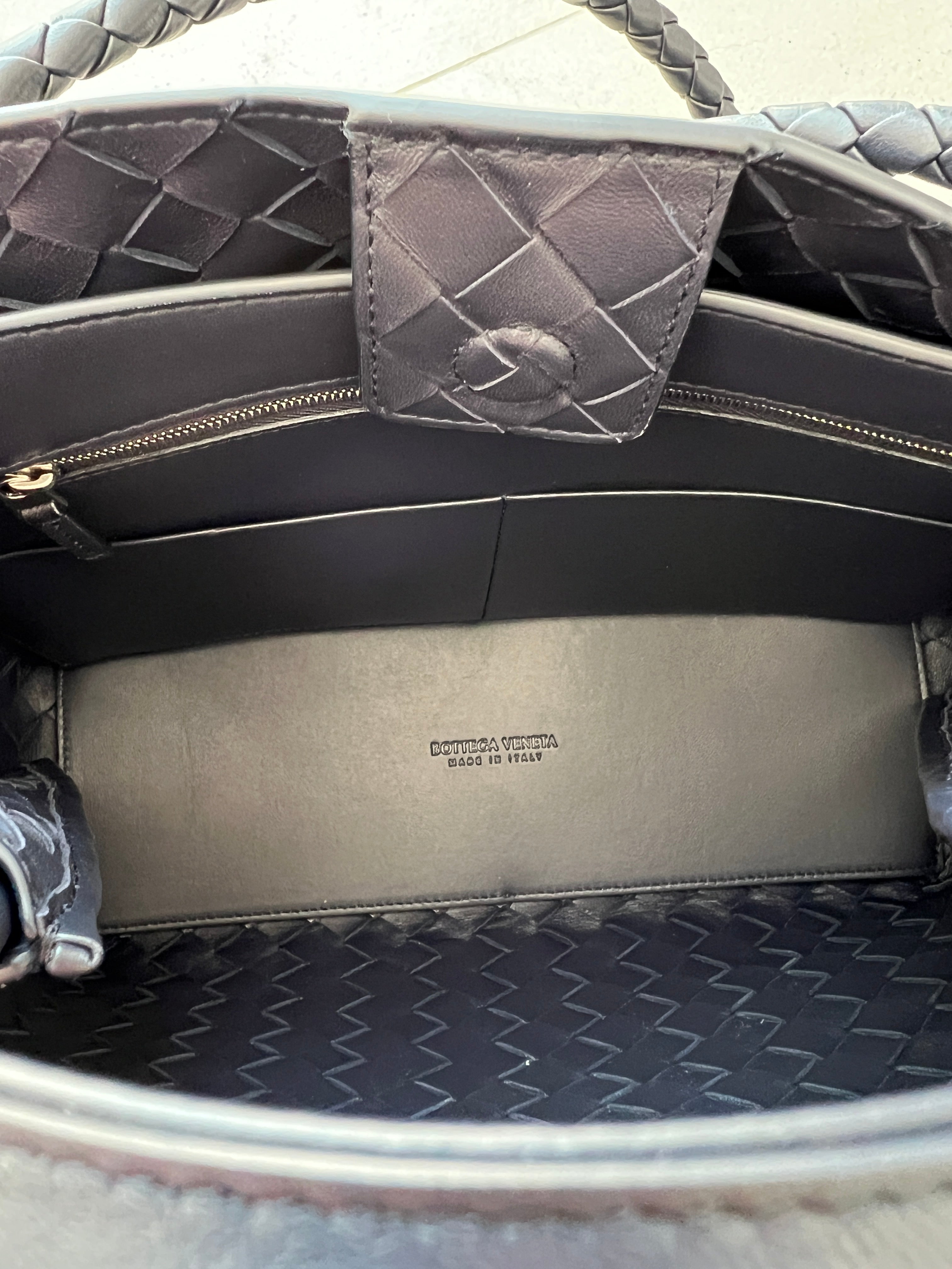 • Lining: Lambskin bonded Intrecciato