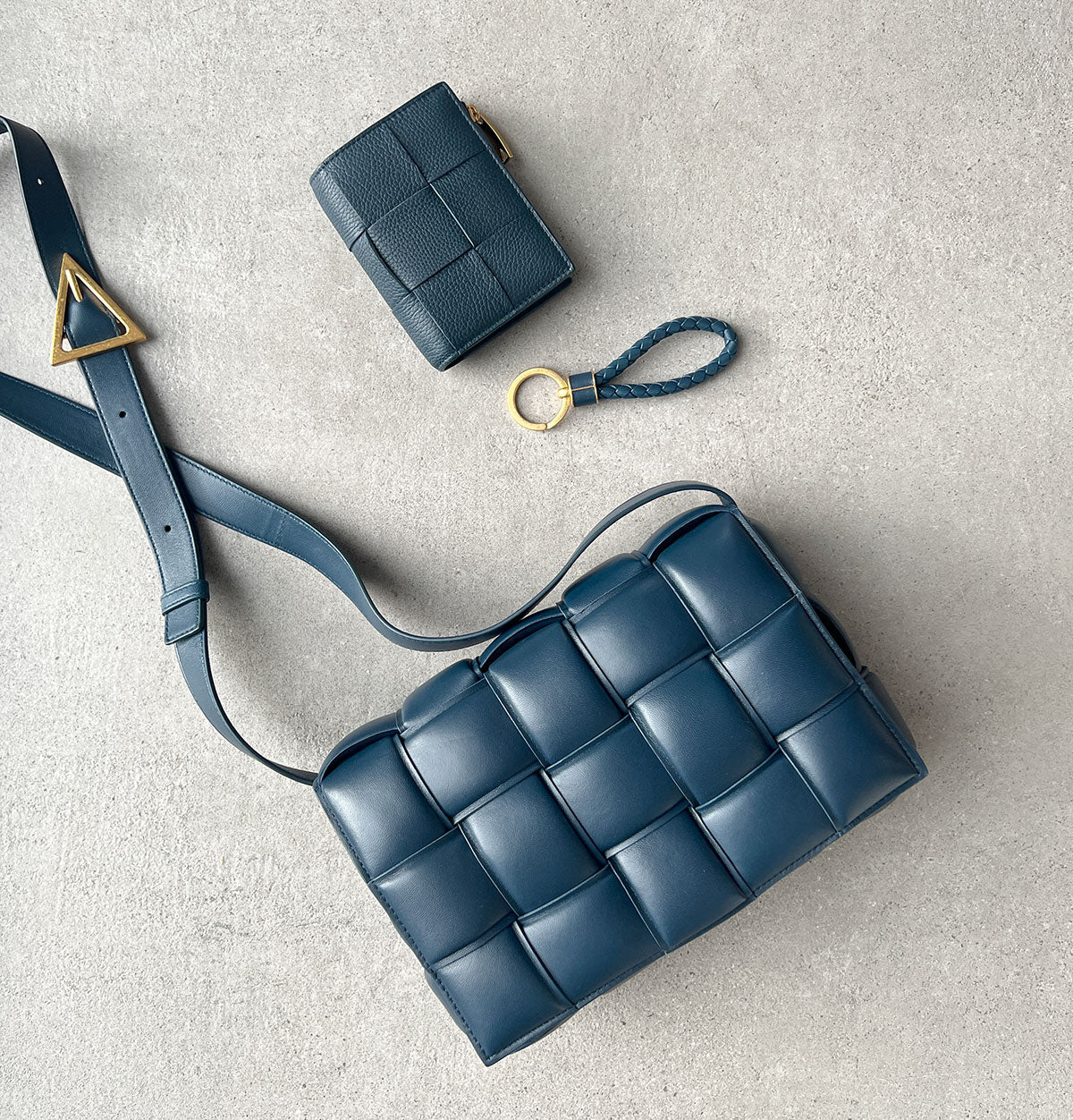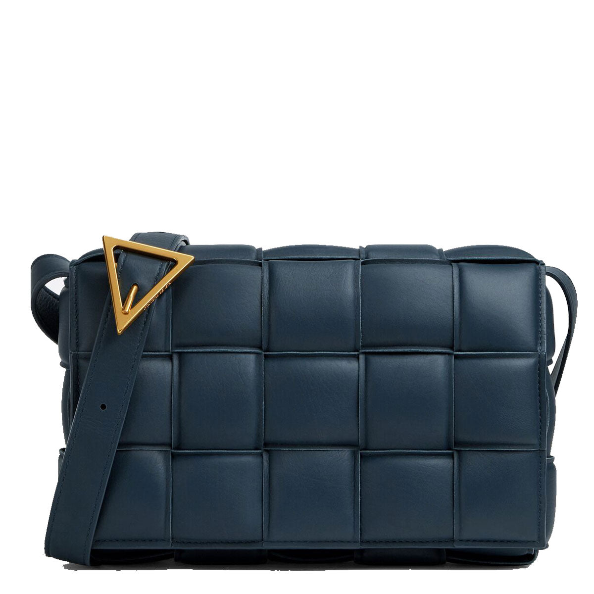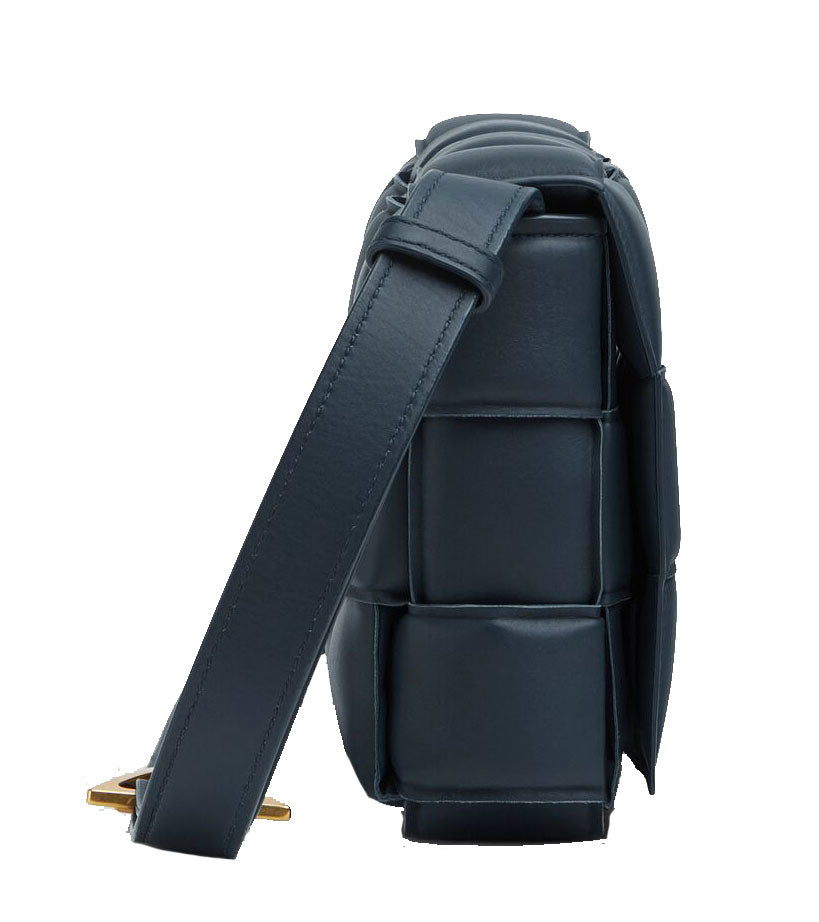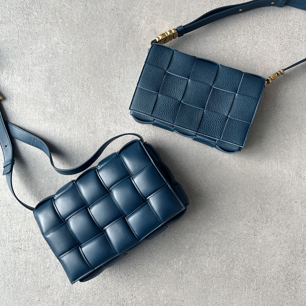 Crossbody bag in a double-face maxi weave. Made with wide double-face Nappa strips in an orthogonal weave. Interior is identical to exterior; fitted with a zipped pocket and magnetic closure. Adjustable shoulder strap folds inside the bag to carry as a clutch.