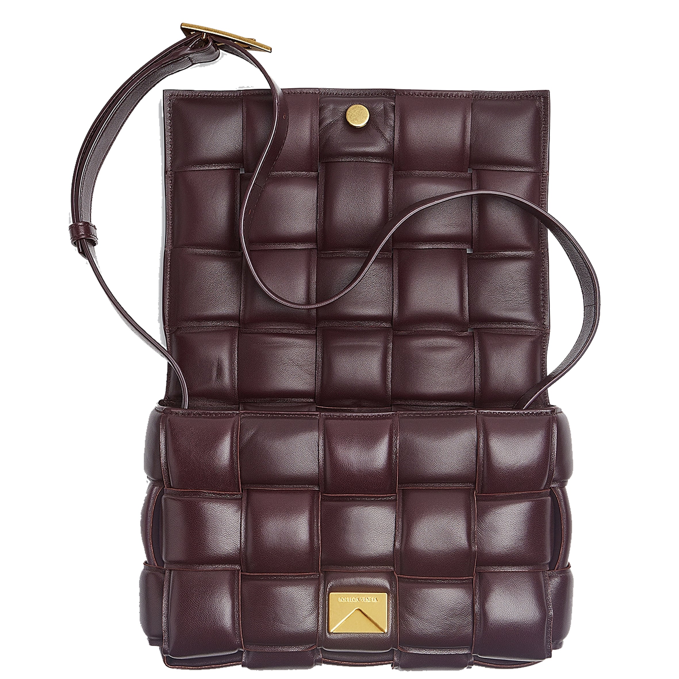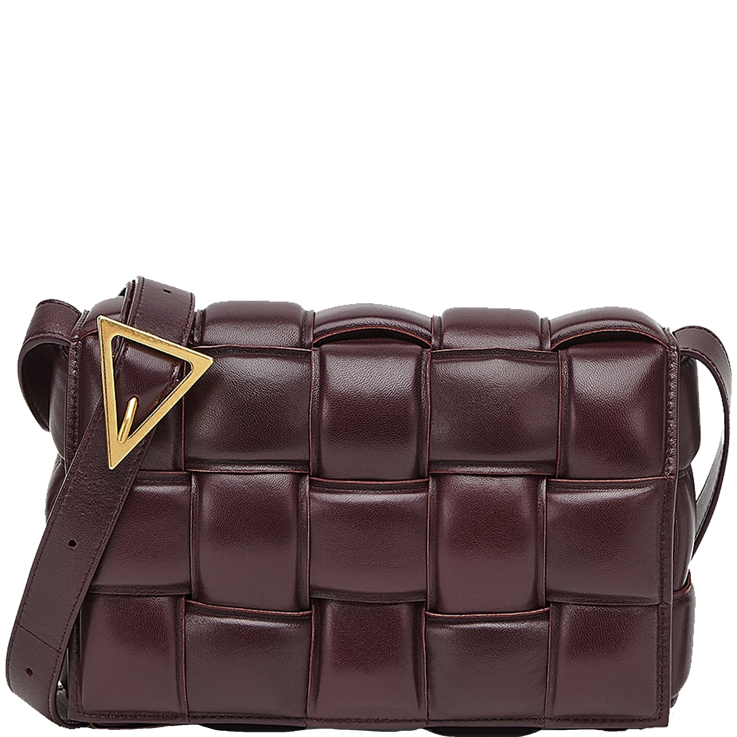 Crossbody bag in a double-face maxi weave. Made with wide double-face Nappa strips in an orthogonal weave. Interior is identical to exterior; fitted with a zipped pocket and magnetic closure. Adjustable shoulder strap folds inside the bag to carry as a clutch.