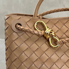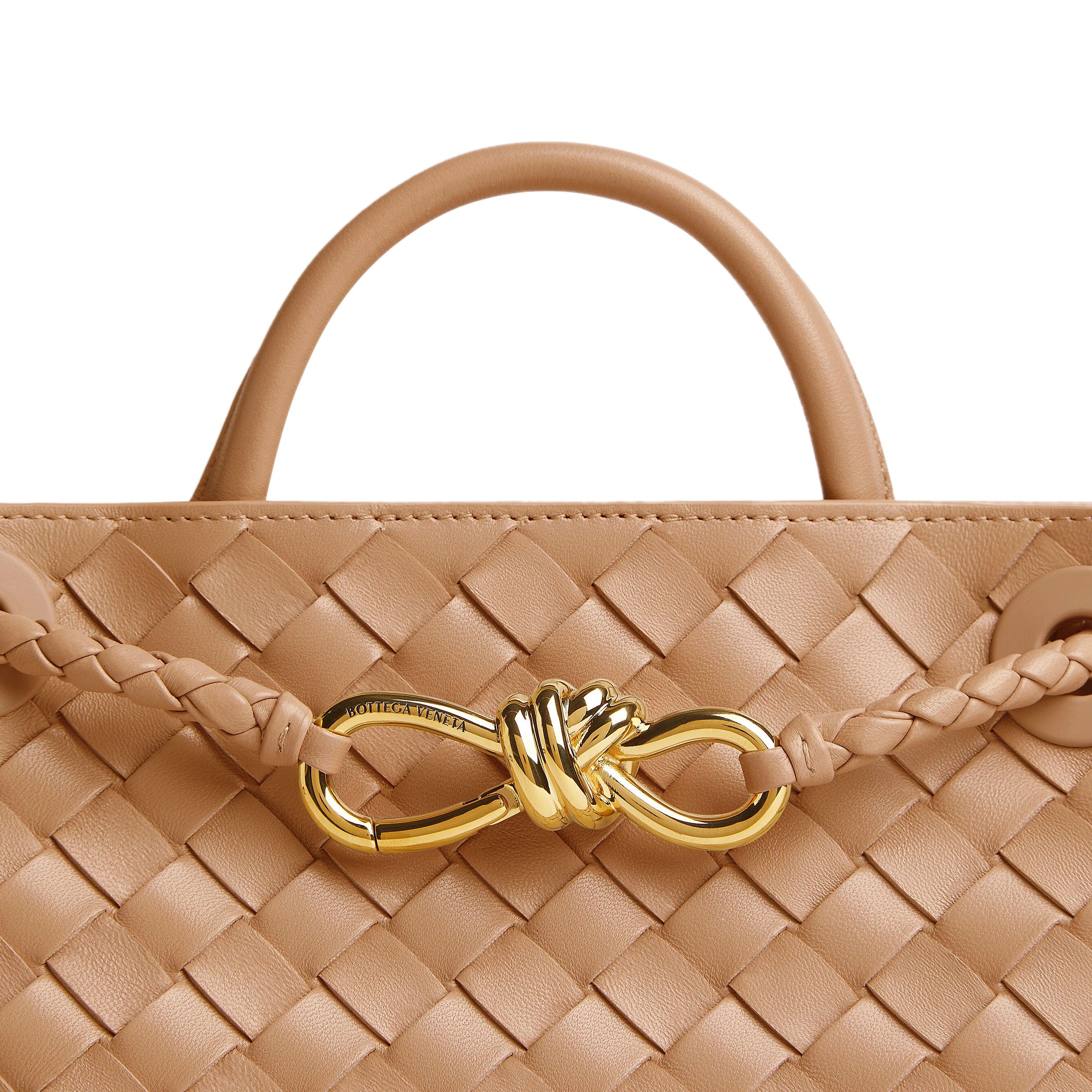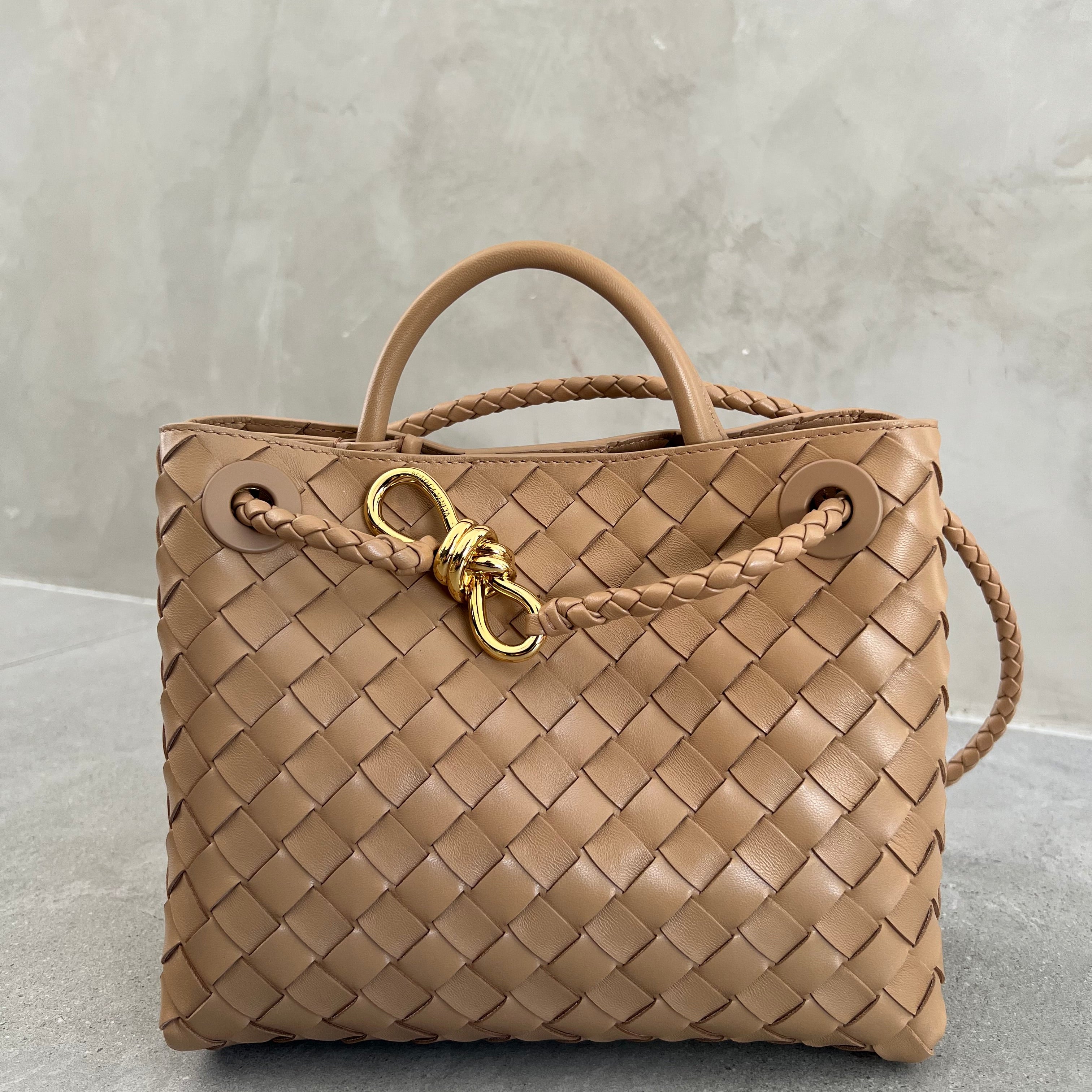 Andiamo is a new expression of the signature Intrecciato weave realised by the expert craftsmanship of artisans in the house’s atelier. Its name, Andiamo, “Let’s go” in Italian, embodies the spirit of the bag, a tribute to going places and the concept of craft in motion. The bag features a timeless Intrecciato silhouette woven by hand. A metal knot adorns and fastens its sliding braided straps, allowing it to be adjusted over the shoulder or across the body, giving the bag a soft tapered volume.