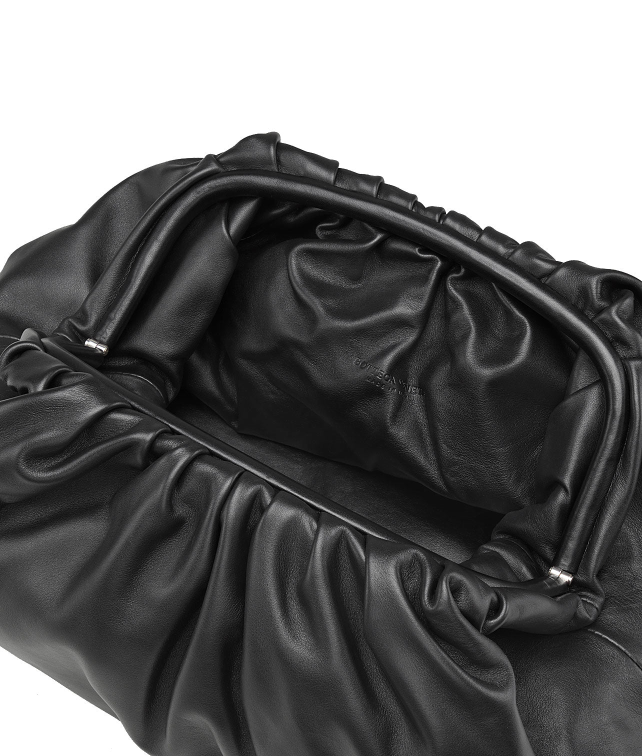 Soft oversize clutch in exceptionally supple calfskin. Magnetic frame enveloped in folds of Butter Calf leather to create a voluminous, rounded shape. Single compartment lined in natural suede. A new brand icon, The Pouch reflects Bottega Veneta’s heritage with a modern attitude