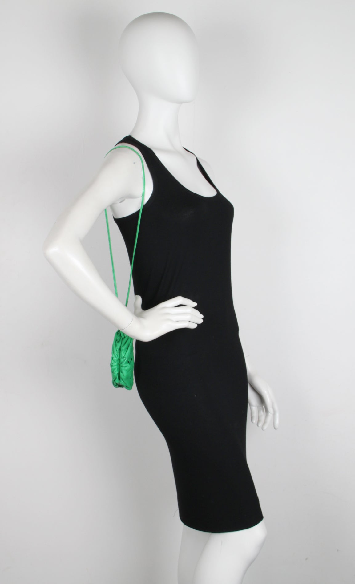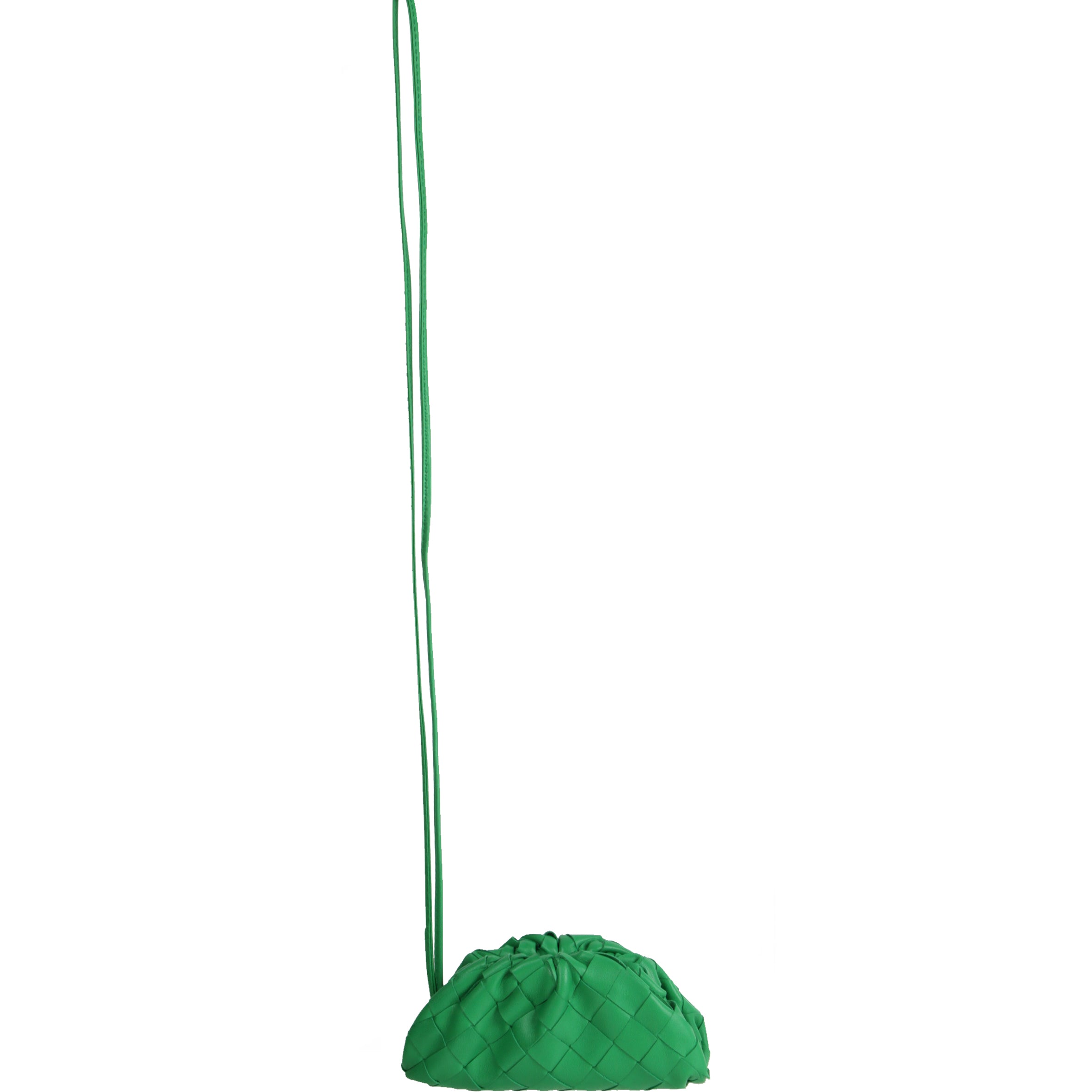 Mini clutch in supple Intrecciato Nappa (miniature version of The Pouch). Features a magnetic frame, single compartment lined in natural suede and a slim leather shoulder strap.