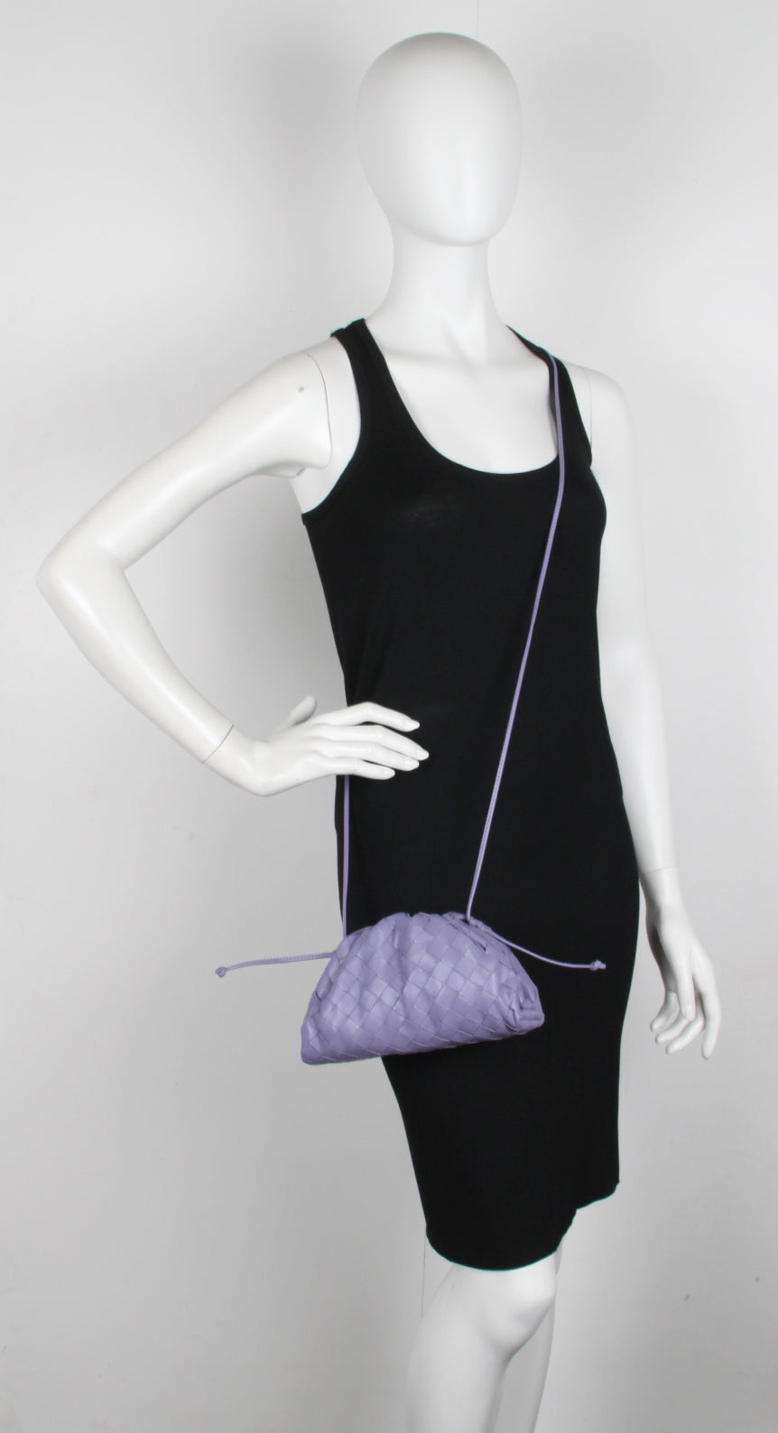 Soft voluminous clutch in woven leather. Magnetic frame covered in folds of handwoven leather. Iconic intrecciato weave in a subtly amplified new dimension. Single compartment lined in nappa. Slim leather shoulder strap. Smaller style of The Pouch, a brand icon that reflects Bottega Veneta’s heritage with a modern attitude.