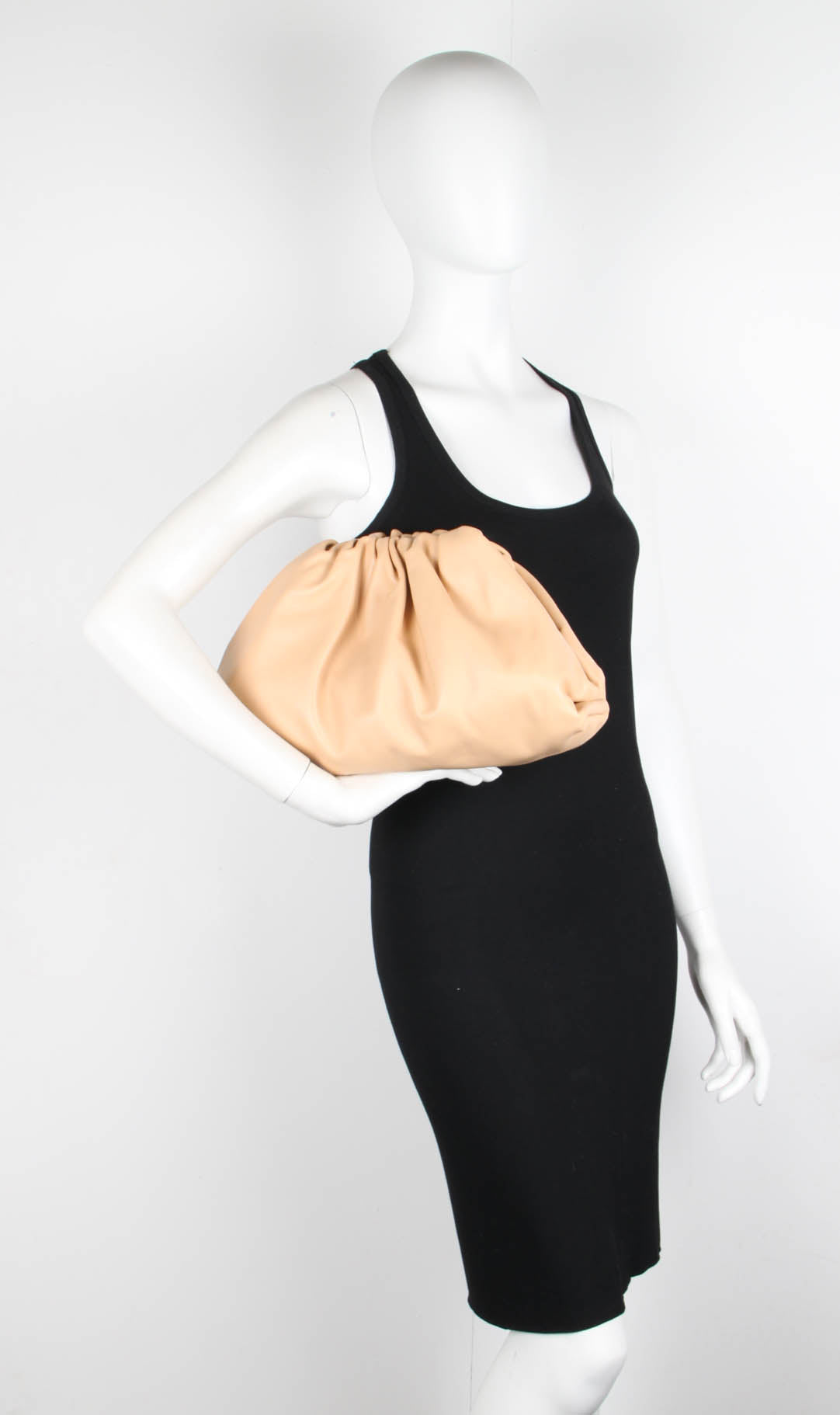 Soft oversize clutch in exceptionally supple calfskin. Magnetic frame enveloped in folds of Butter Calf leather to create a voluminous, rounded shape. Single compartment lined in natural suede. A new brand icon, The Pouch reflects Bottega Veneta’s heritage with a modern attitude.
