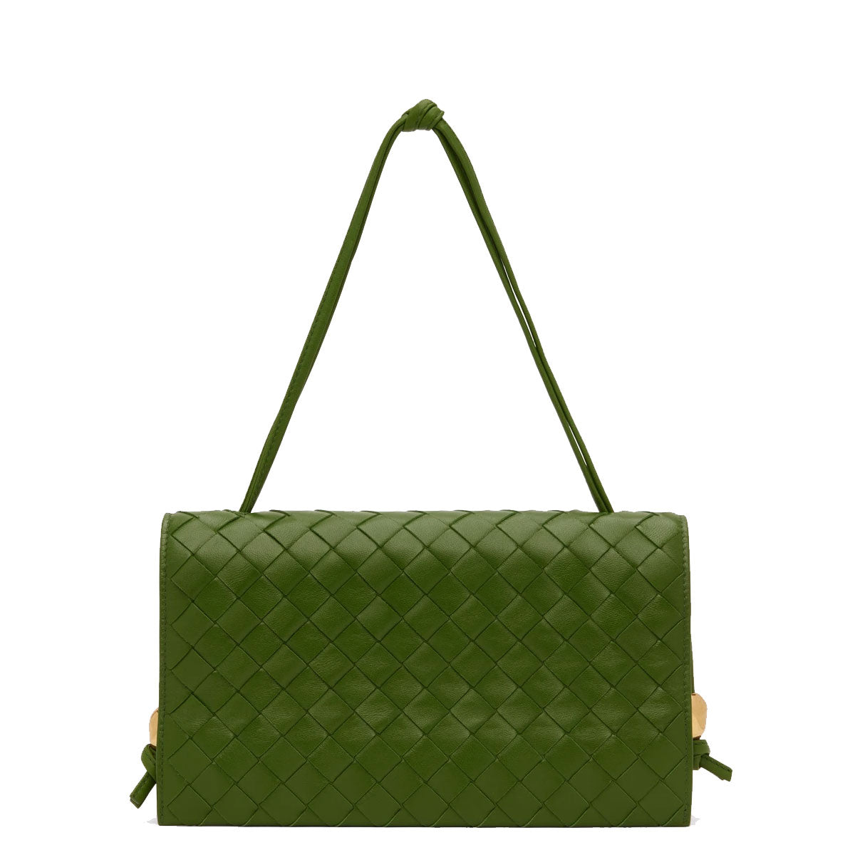 Bottega Veneta's iconic intrecciato leather weave trio poouch with strap allows for versatile everyday wear. Featuring three compartments, an additional pocket, and a magnetic closure.