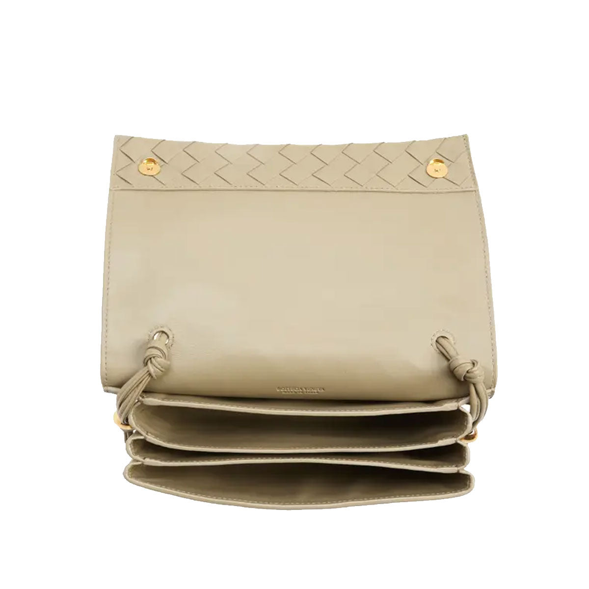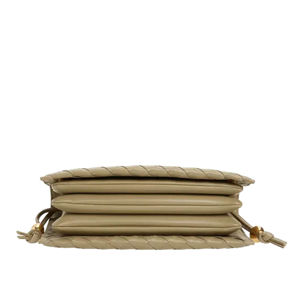 Bottega Veneta's iconic intrecciato leather weave trio poouch with strap allows for versatile everyday wear. Featuring three compartments, an additional pocket, and a magnetic closure.