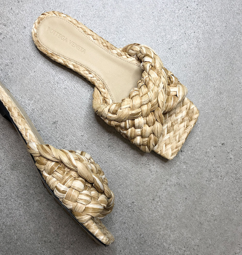 Twisted Rafia Flat Slide, Macadamia