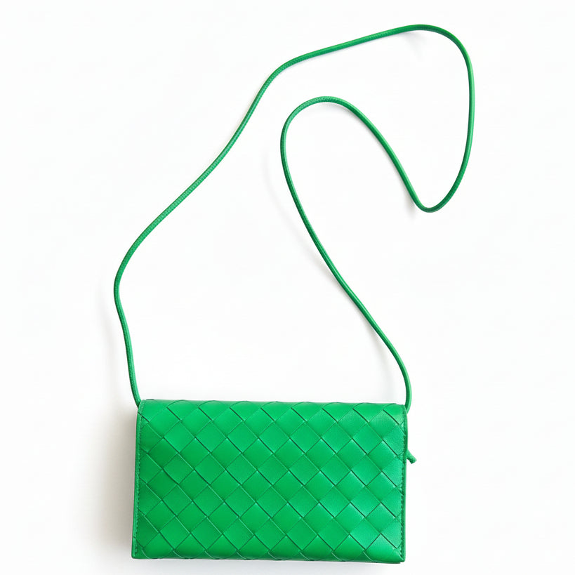 Bottega Veneta's iconic intrecciato leather weave wallet with strap allows for versatile everyday wear. Featuring two compartments, eight card slots, one zipped coin purse, an additional pocket, and a press stud closure.