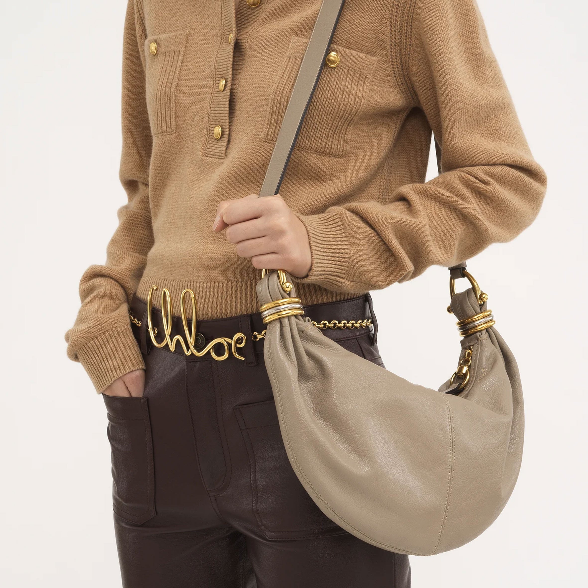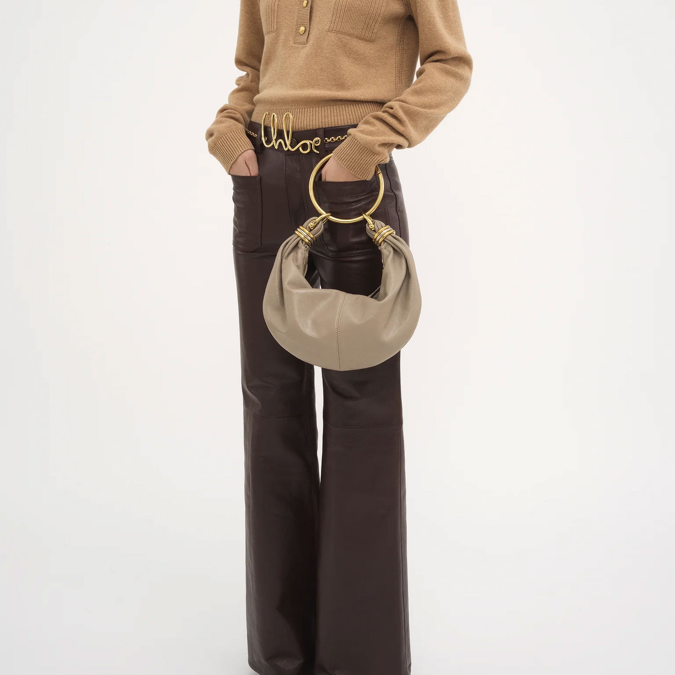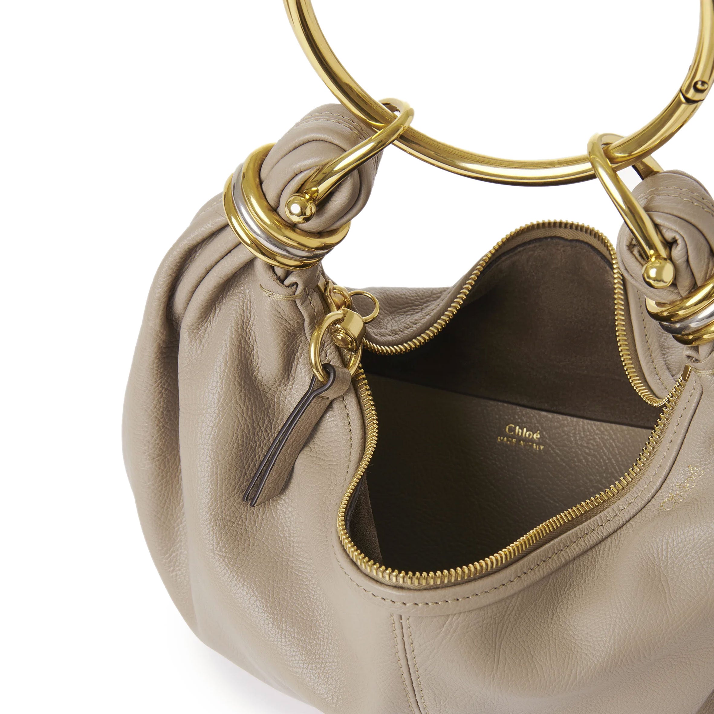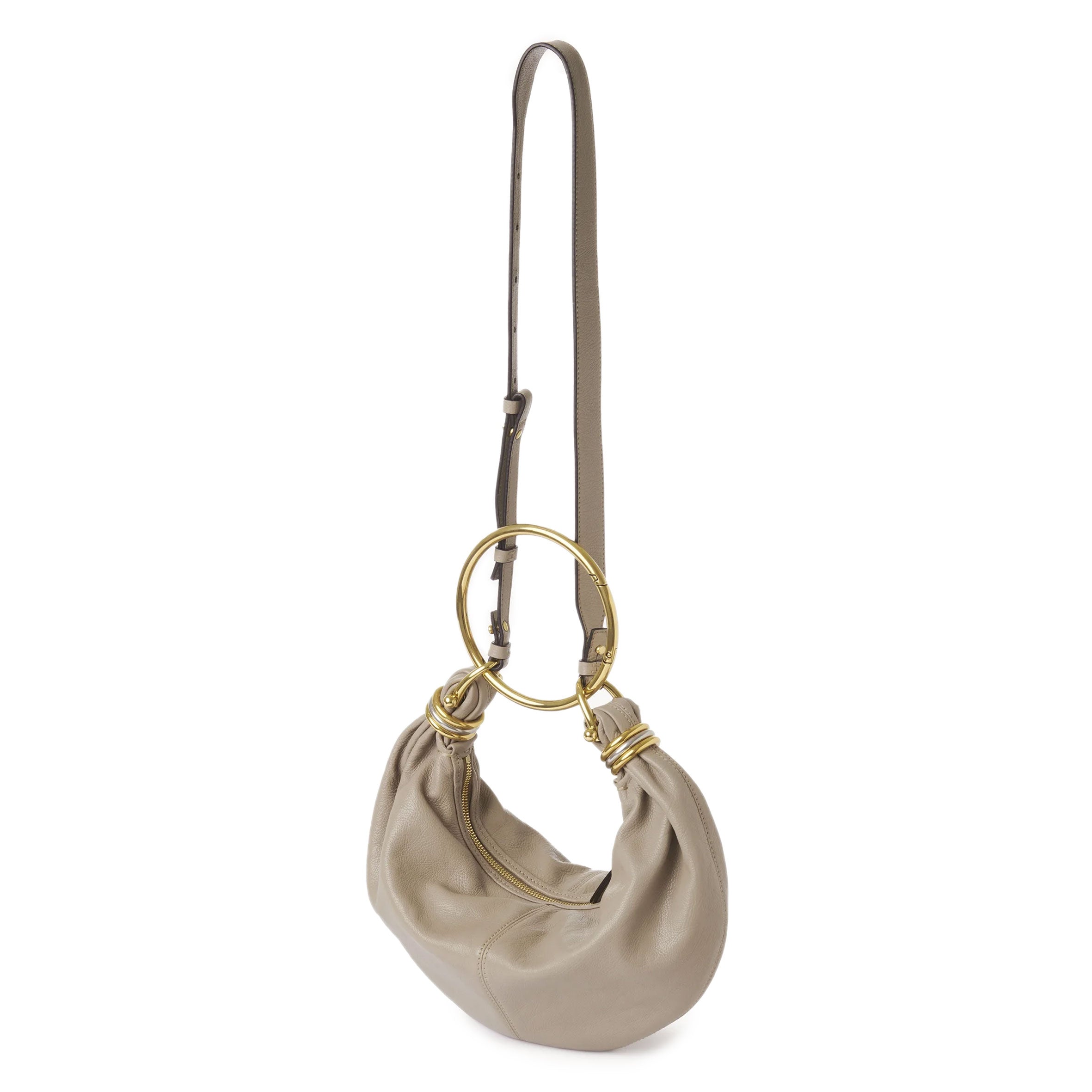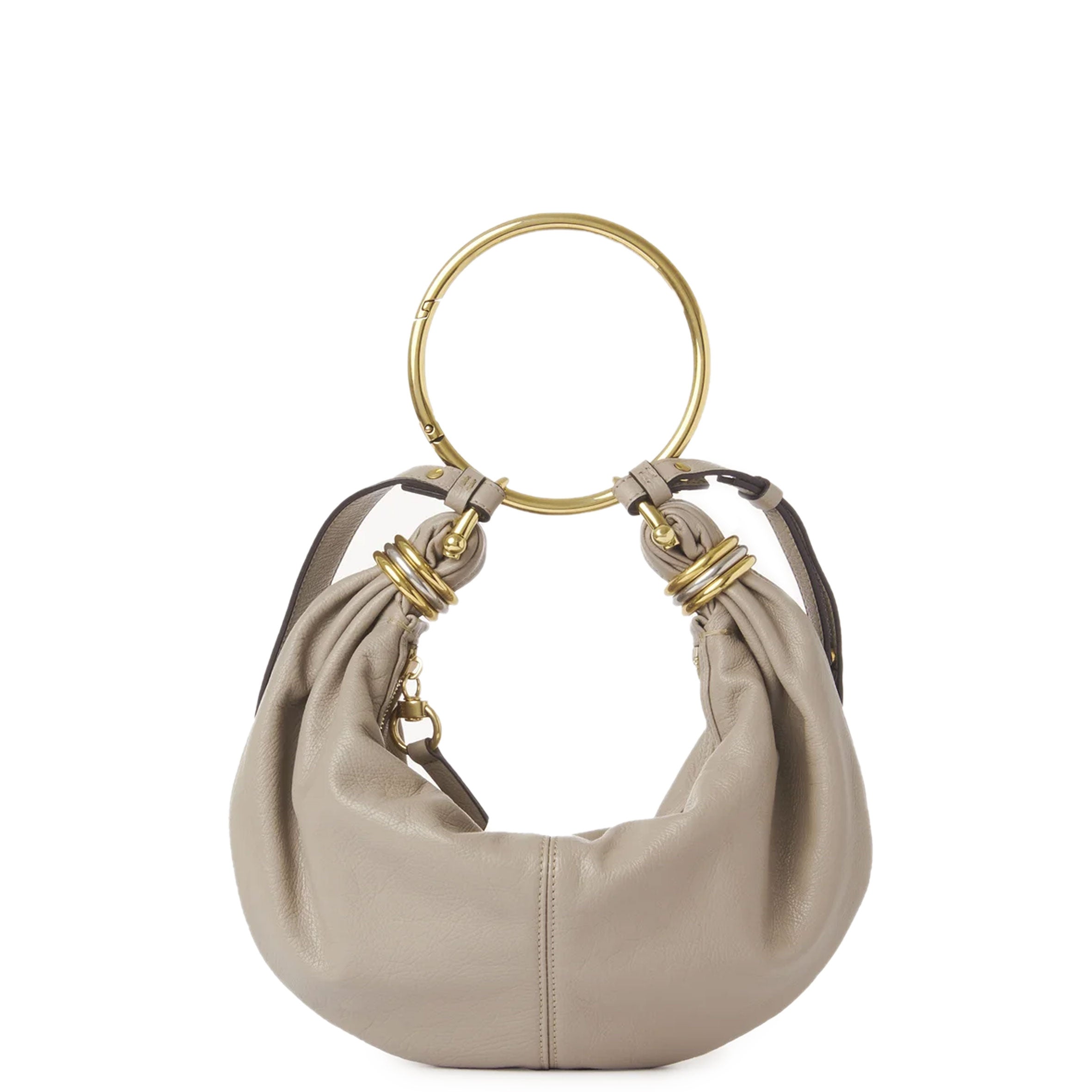 Inspired by the Maison's Archives, this small Bracelet Hobo bag is crafted from shiny grained calfskin. The supple, rounded shape is elevated by a bracelet handle and stacked two-toned rings at the ends.