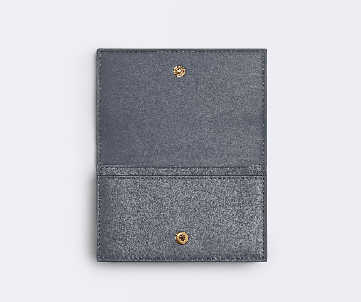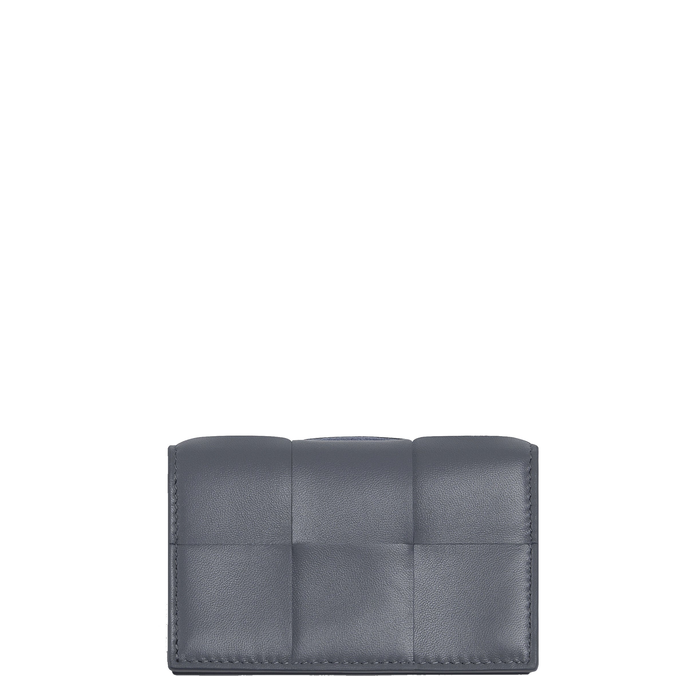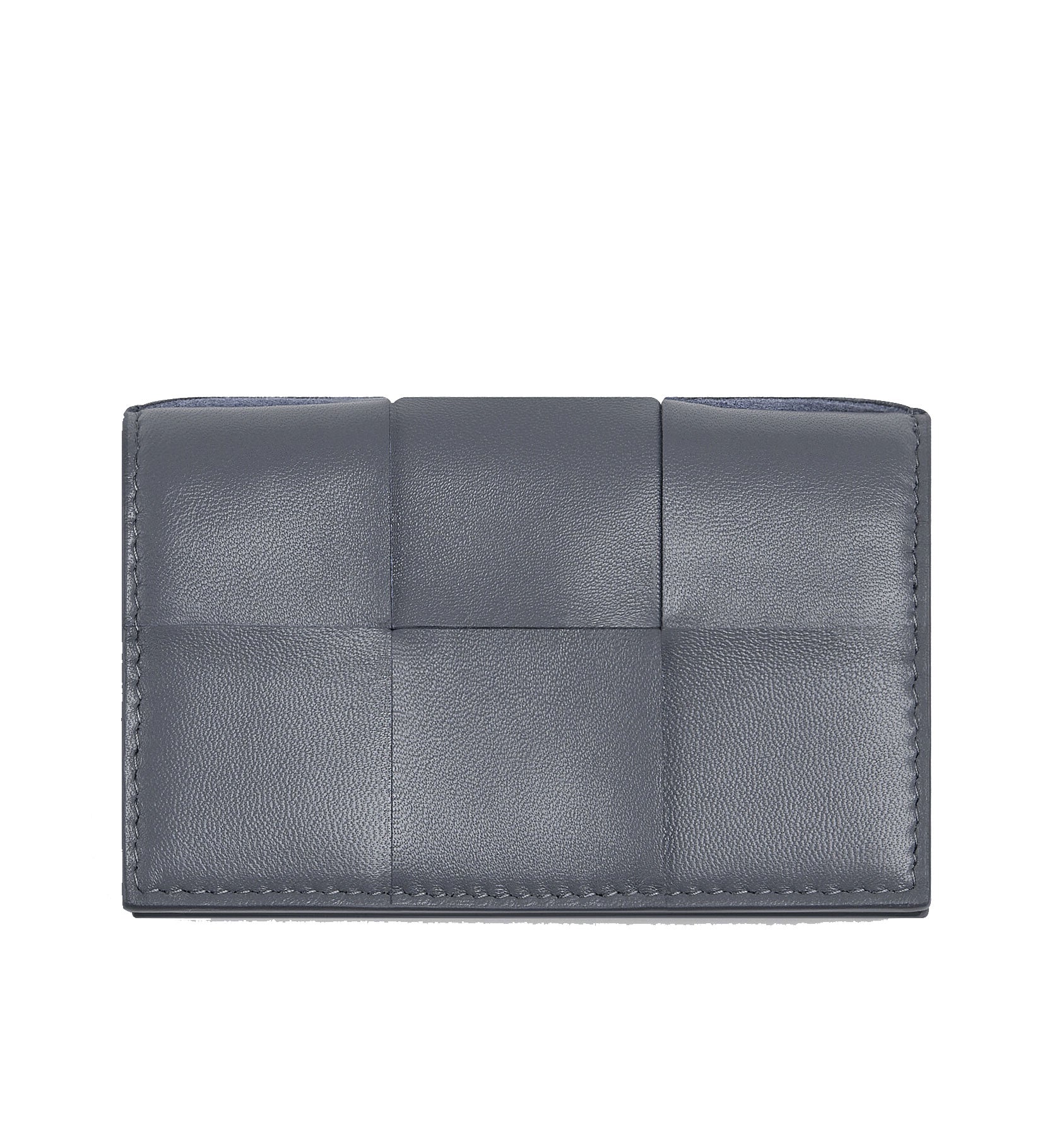 Bi-fold card case in maxi woven nappa. Features one main compartment for cards and one card slot and smooth calf interior