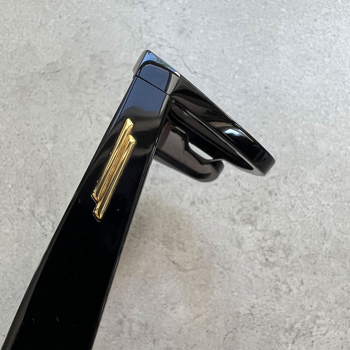 A chic, cat-eye frame style from Bottega Veneta. Crafted in the brand's signature black acetate, this frame is detailed with gold-tone hardware, an embossed logo on the arm.