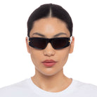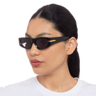 Oval sunglasses with an angular edge finish in an acetate frame with signature ribbon detail on temples