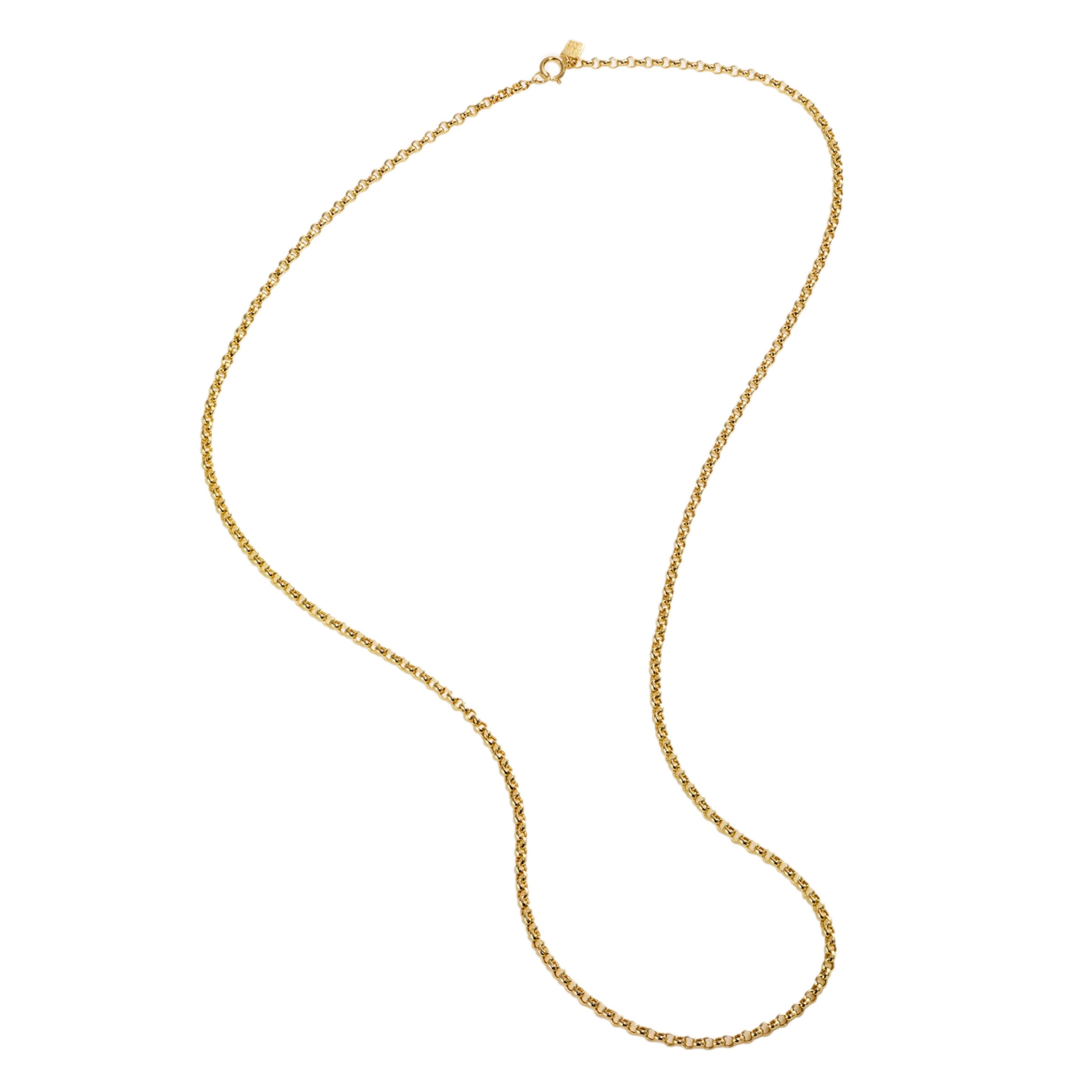 Long 14K Belcher Chain to collect By Pariah Pebble Pendants on. Best paired with Large Pebbles, or Large and Small if combined.