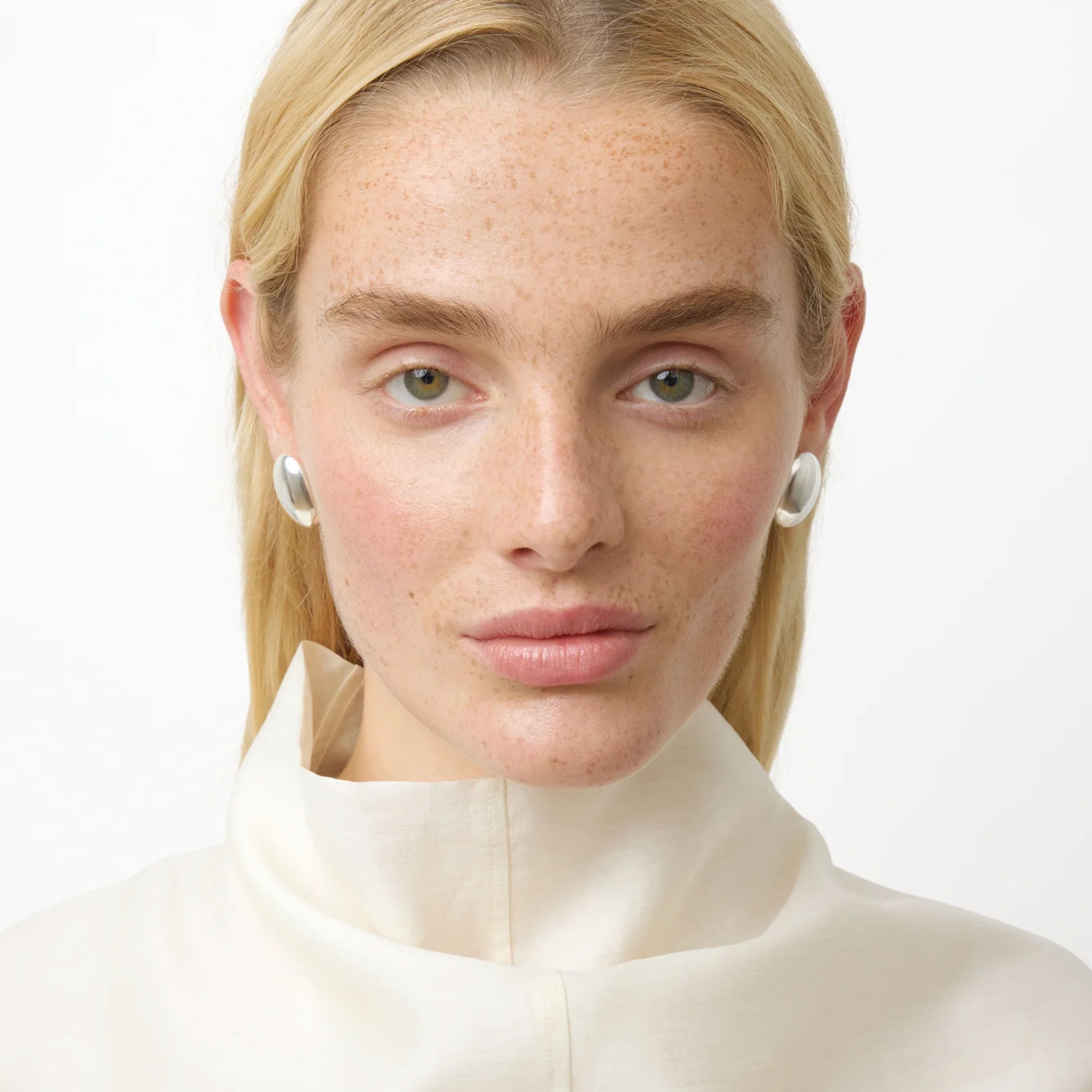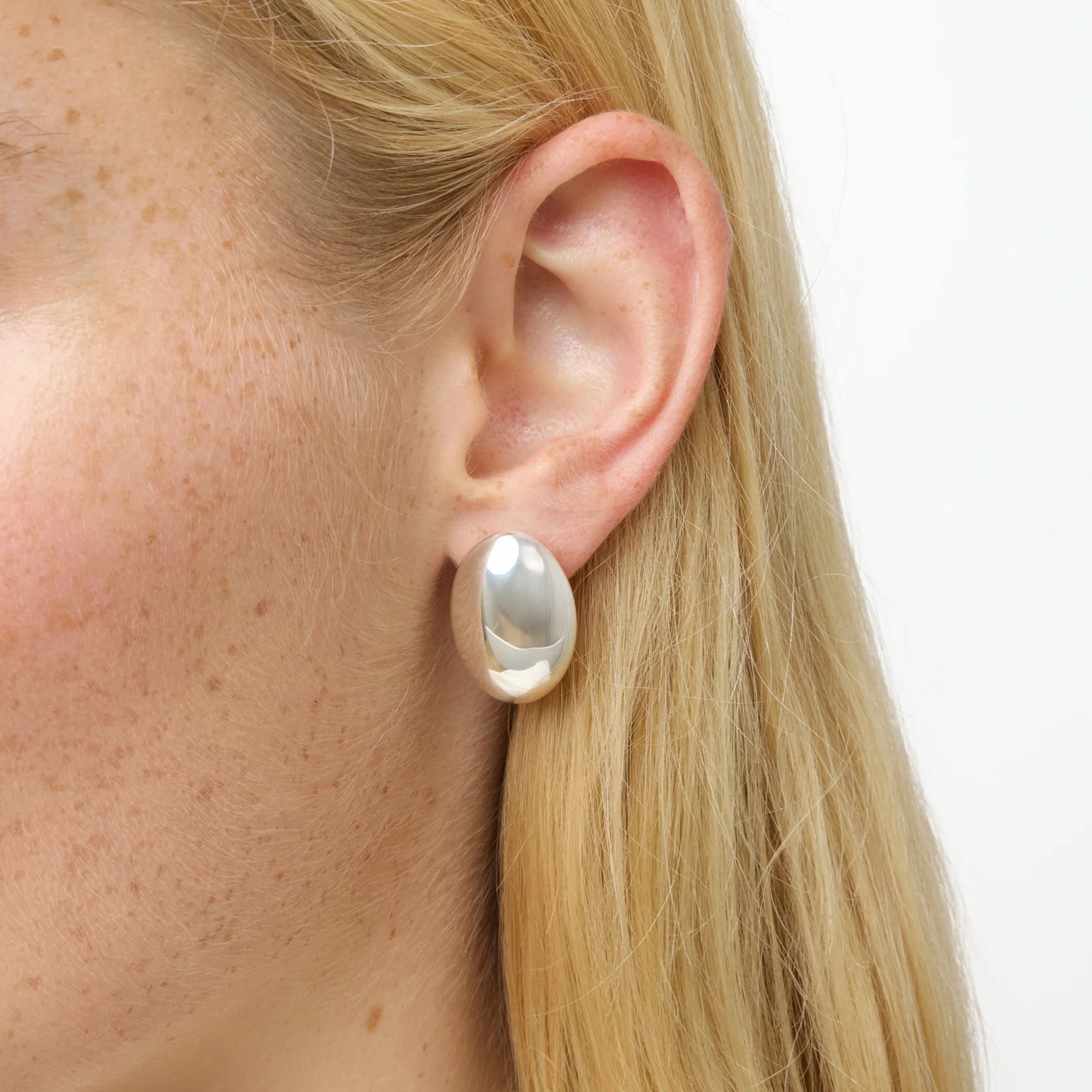 Fastened with a butterfly lock, this earring covers your earlobe in a natural oval silhouette. Designed with an inspiration from antique pieces, this earring is made of sterling silver, and a great addition to every outfit.