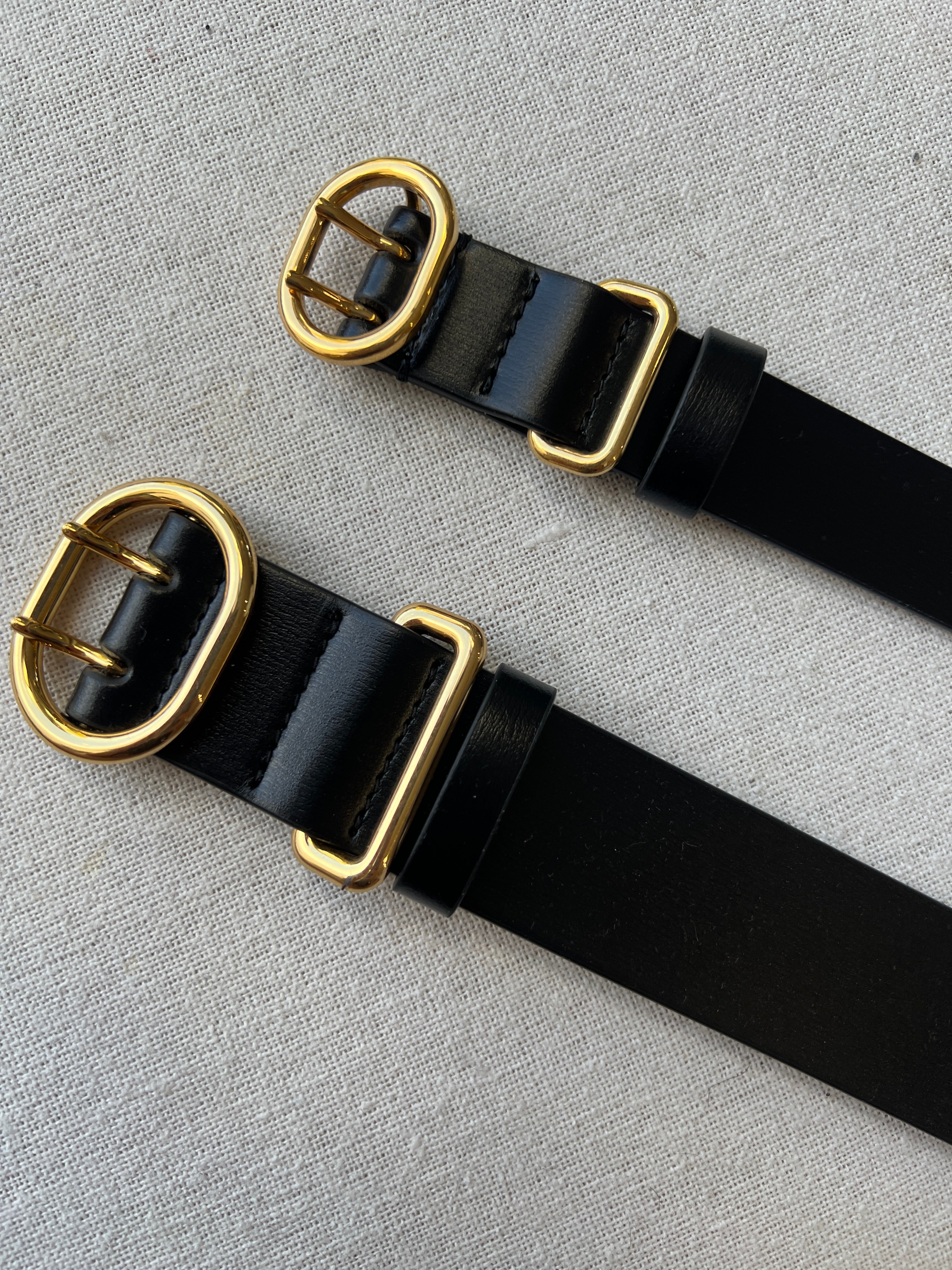 Leather belt with Cannolo buckle. The Cannolo belt is crafted from black leather and features a double-tongued buckle and numerous punched holes for a perfect fit.