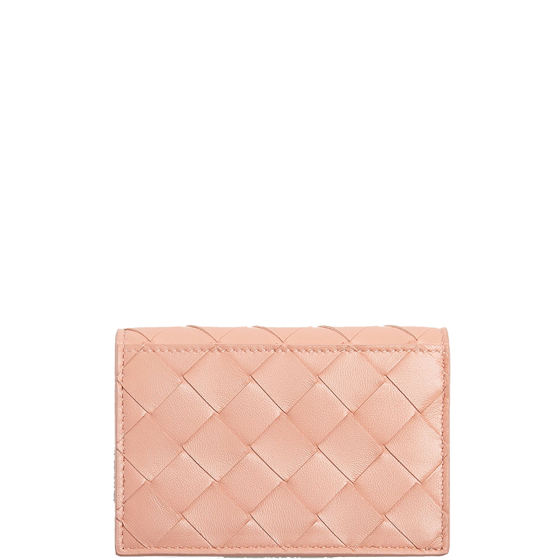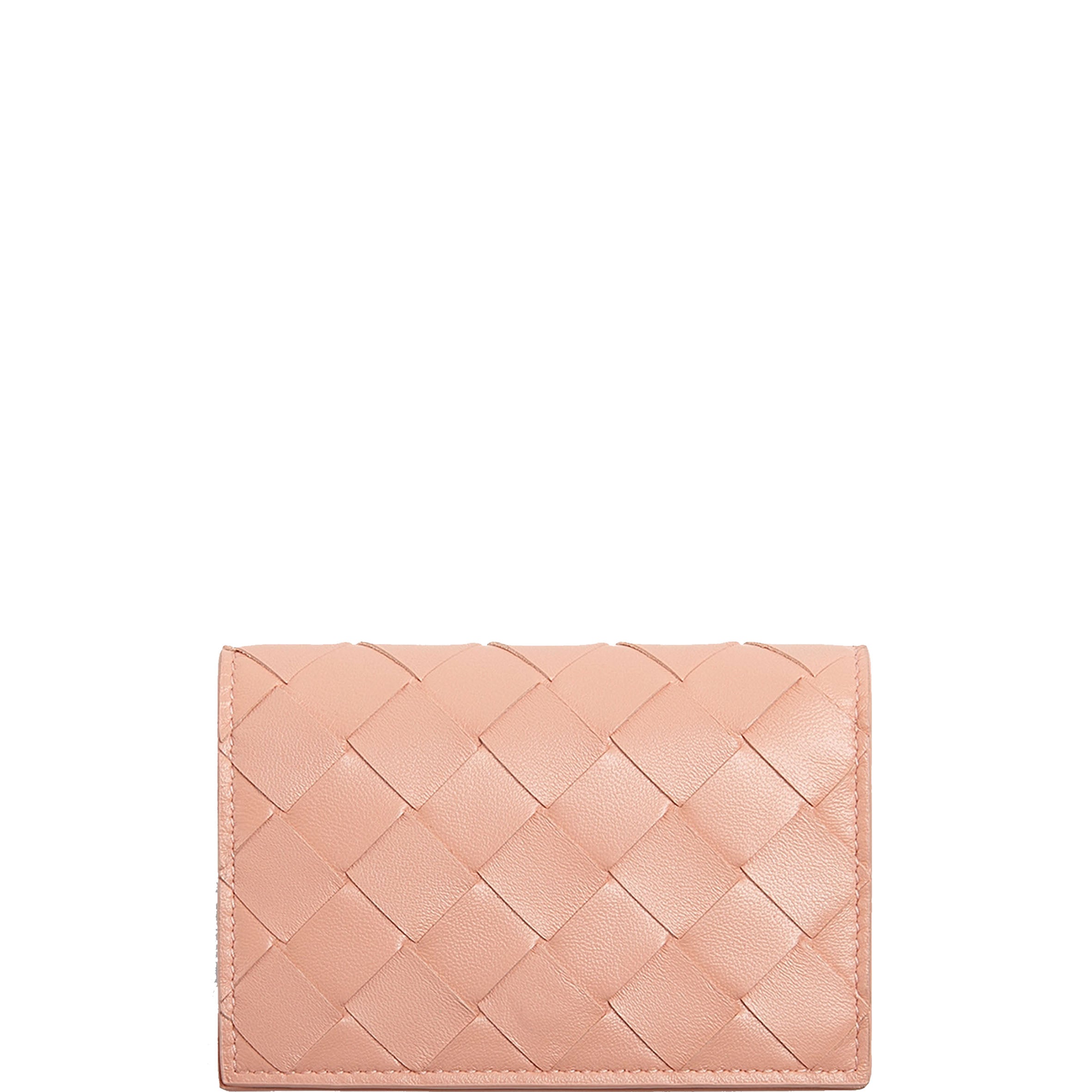 Bi-fold card case in woven nappa. Features one main compartment for cards and one card slot, one external pocket and smooth calf interior