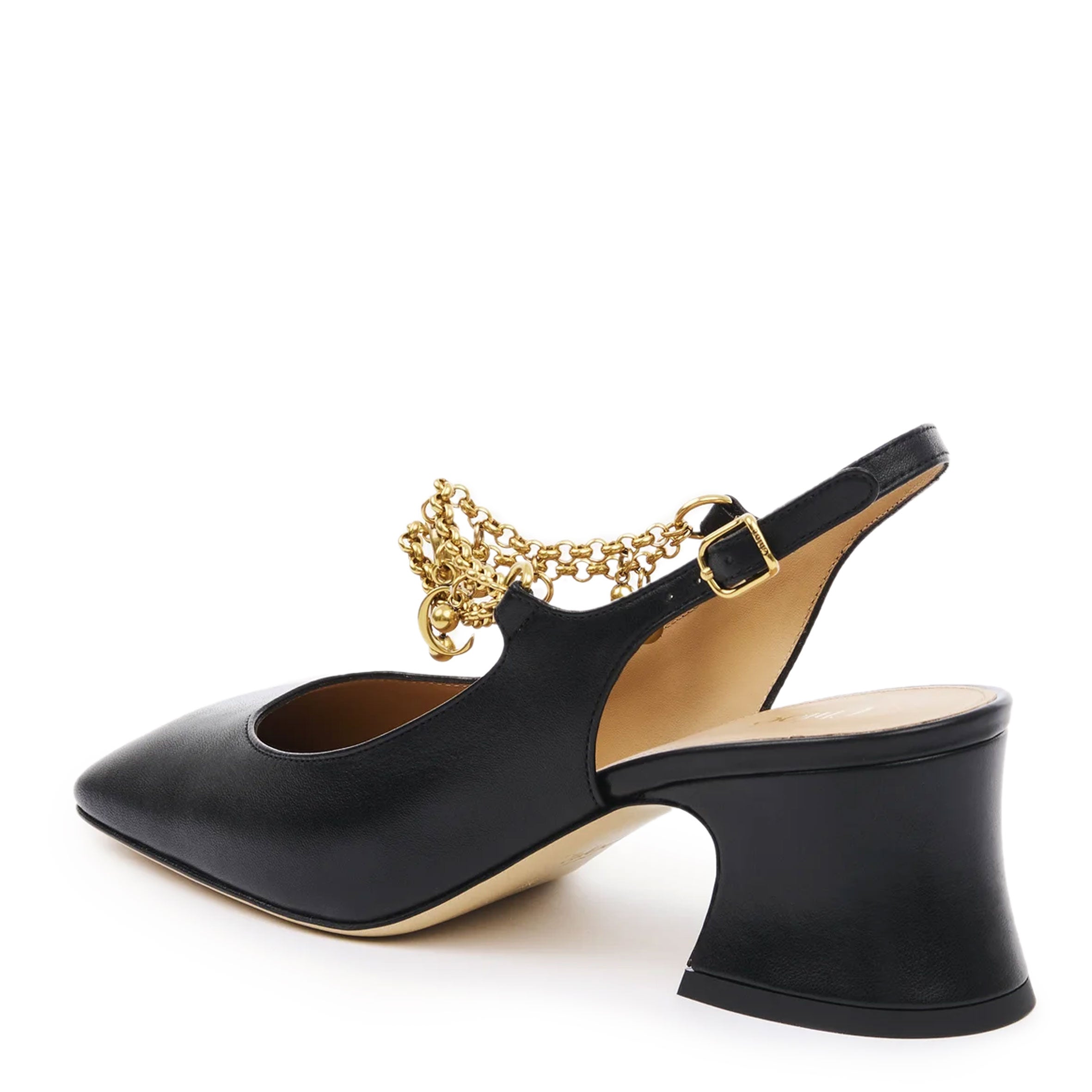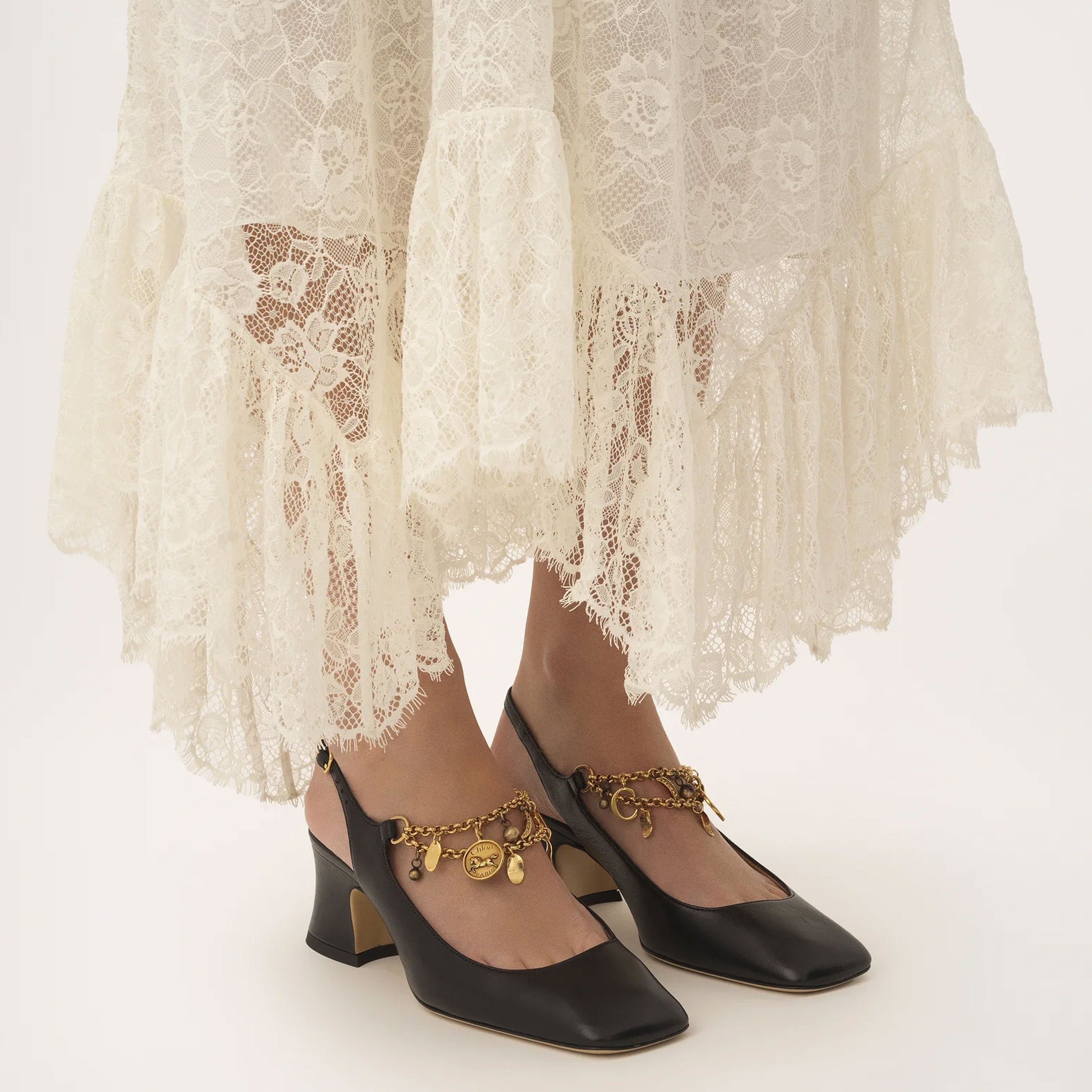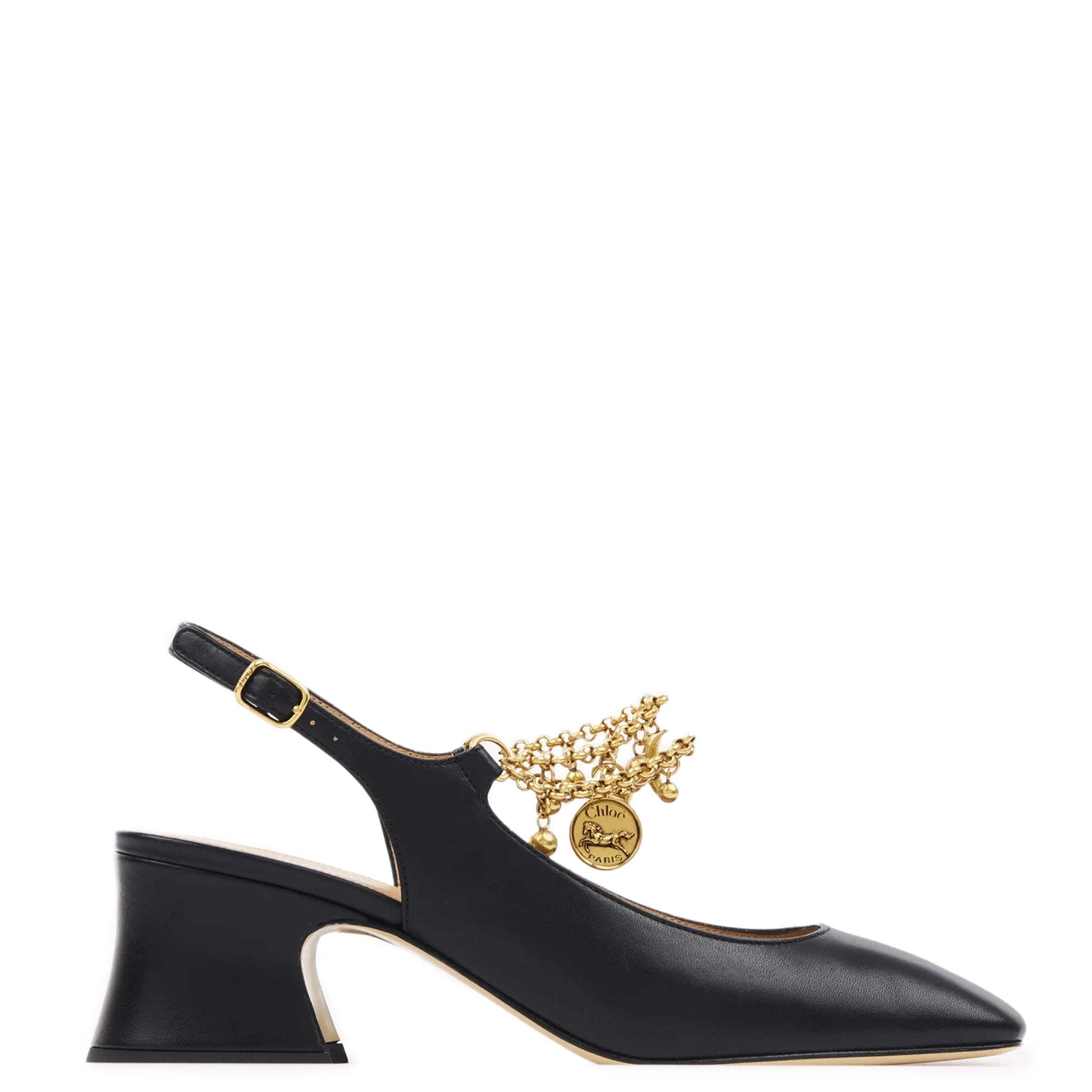 Crafted from nappa lambskin, the Chloé Charms slingback pumps combine a flared block heel with an adjustable buckled ankle strap. A gold-tone chain embellishes the foot with Chloé Charms inspired by the Maison's heritage.