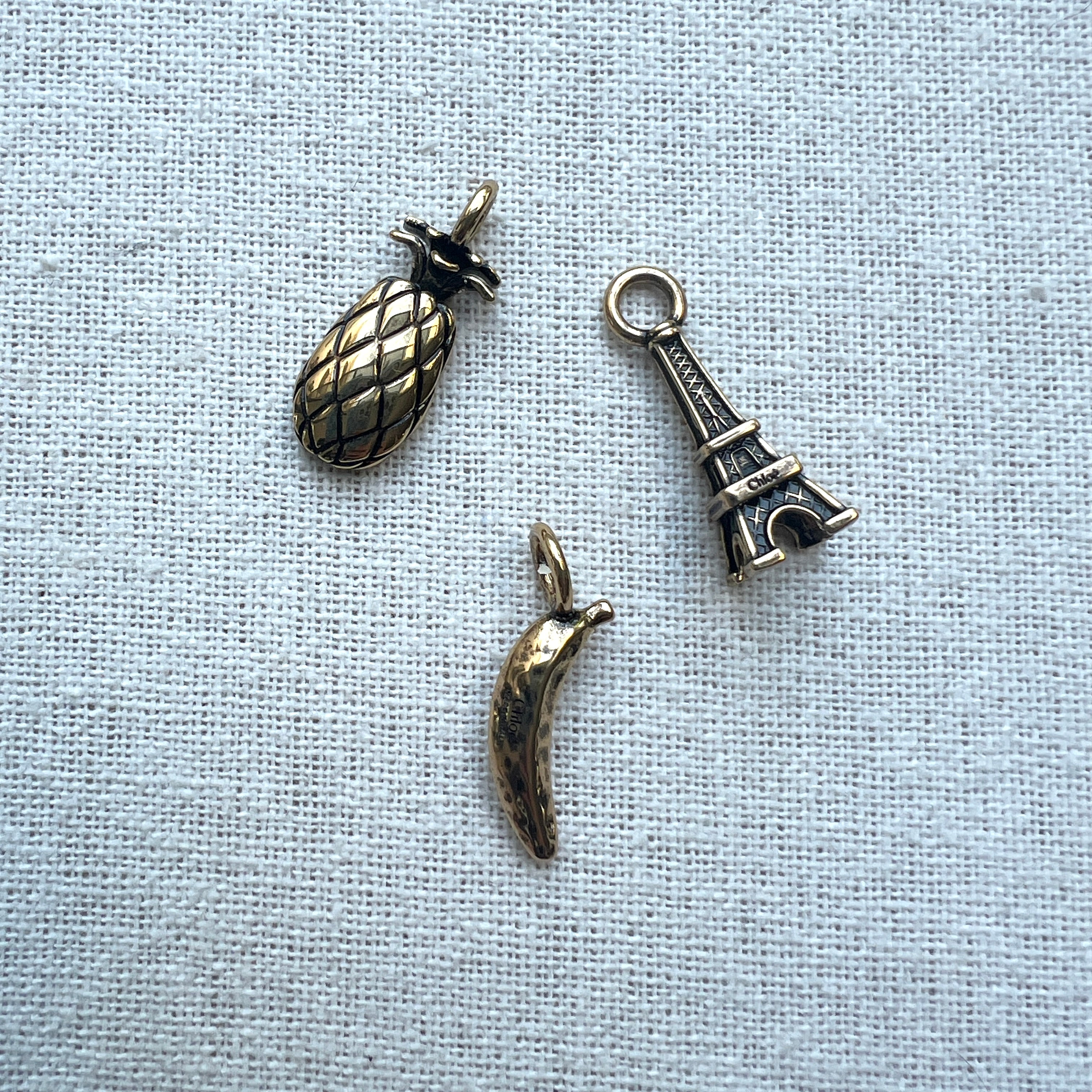 The Maison's iconic Alphabet line includes this Banana charm, inspired by the Maison's Spring 2001 collection. Crafted from vintage gold brass in a distinctive banana shape, it is finished with a Chloé logo engraving.