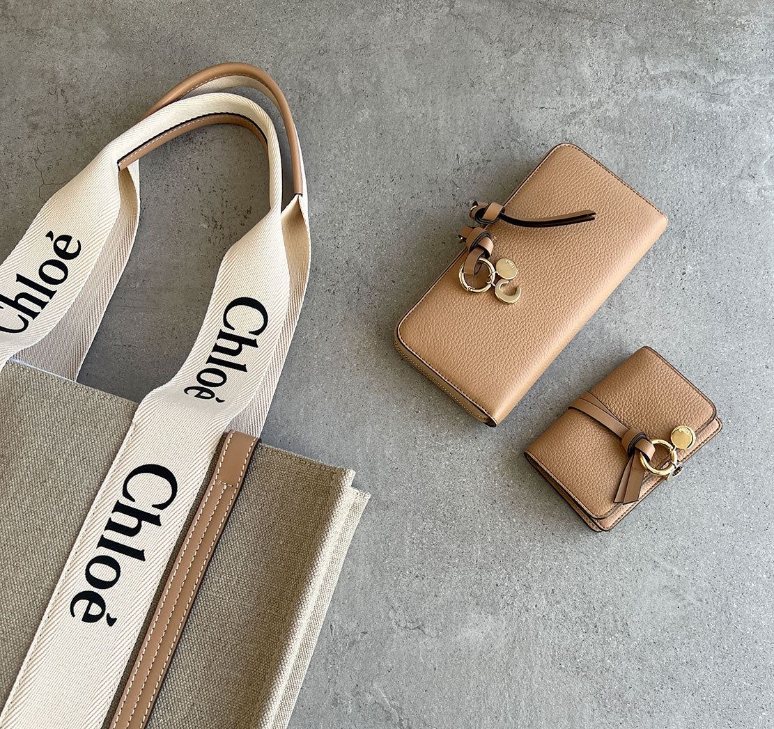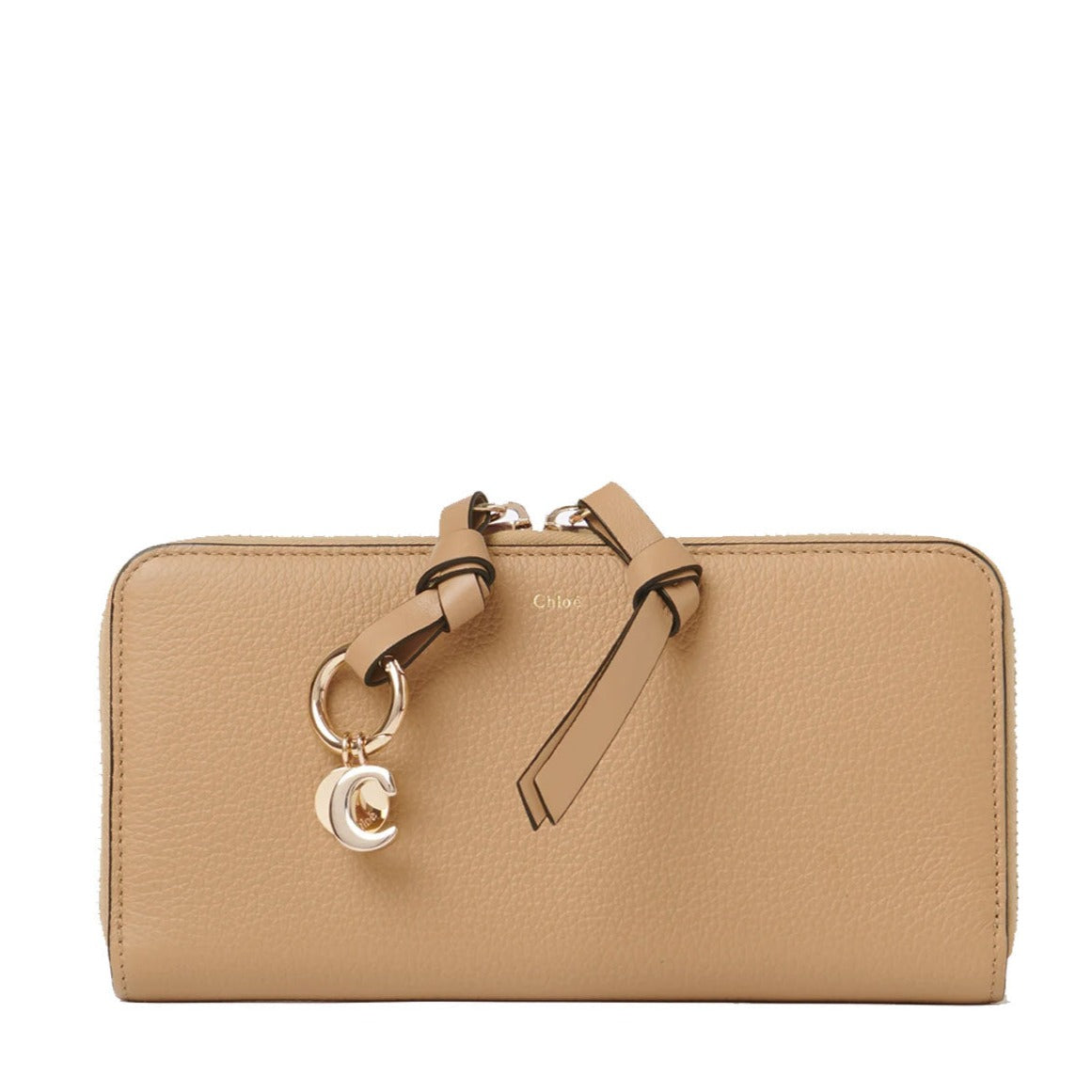 Chloé's Alphabet long zip wallet in grained calfskin & smooth calfskin. 2 main compartments, 2 Flat pockets and 12 Card slots. 1 Central zipped compartment. "Beige rosé" nappa lining with a touch of contrasting colour.