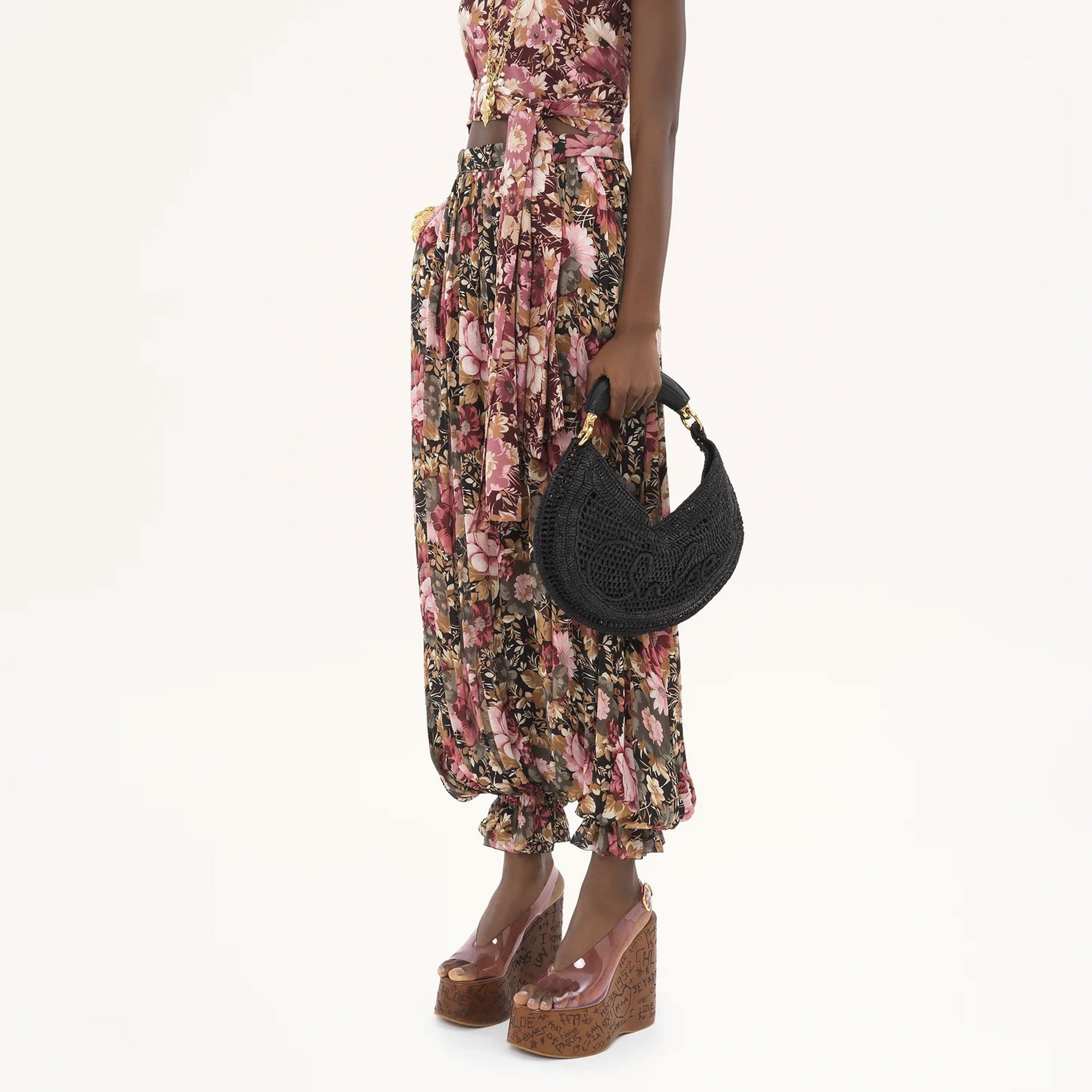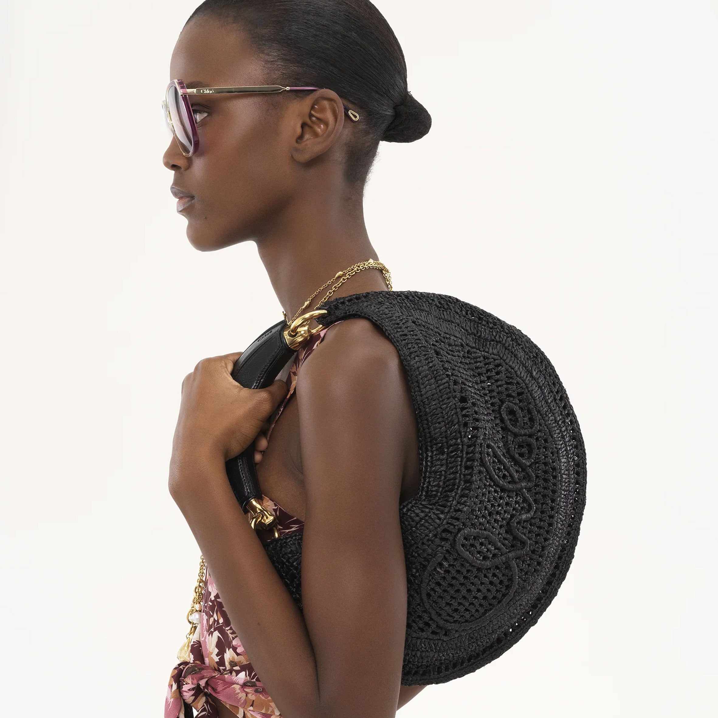 The Summer Banana hobo bag was crafted from raffia and calfskin by a single artisan over 4 days in collaboration with Made For A Woman. The curved silhouette features a banana-shaped handle and a handwritten signature inspired by the Chloé heritage.