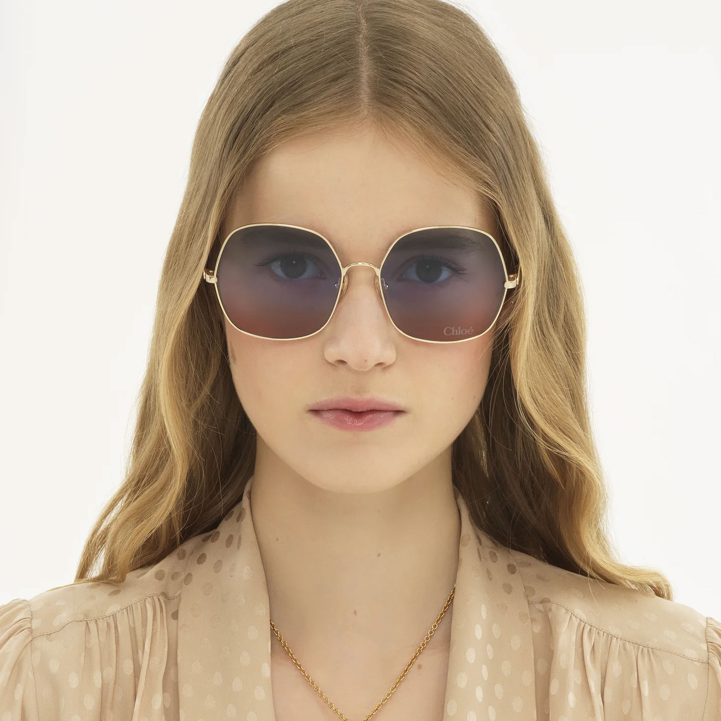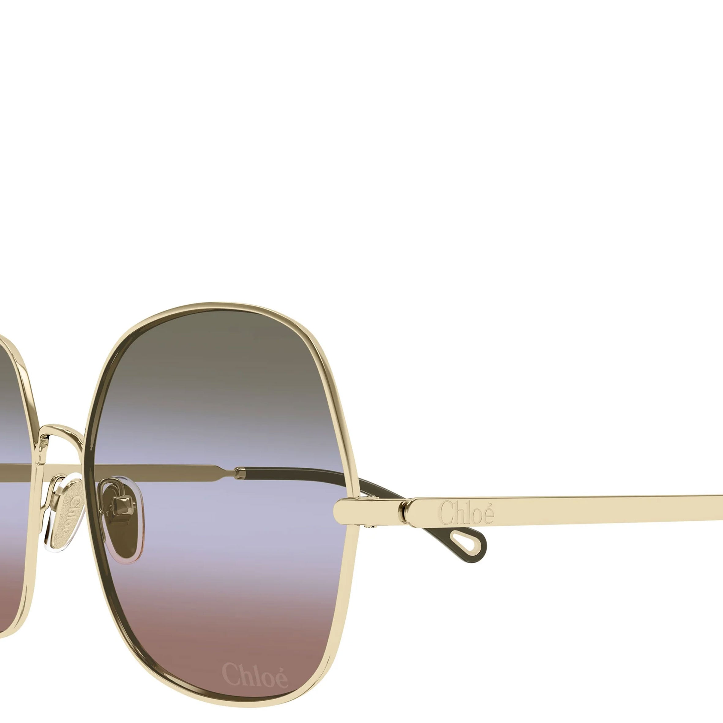 These Aly square sunglasses pair a lightweight graphic frame in shiny gold-tone metal with triple gradient lenses in a palette of green, blue and rust. The Chloé logo finishes the left lens.